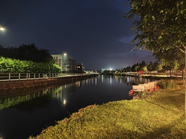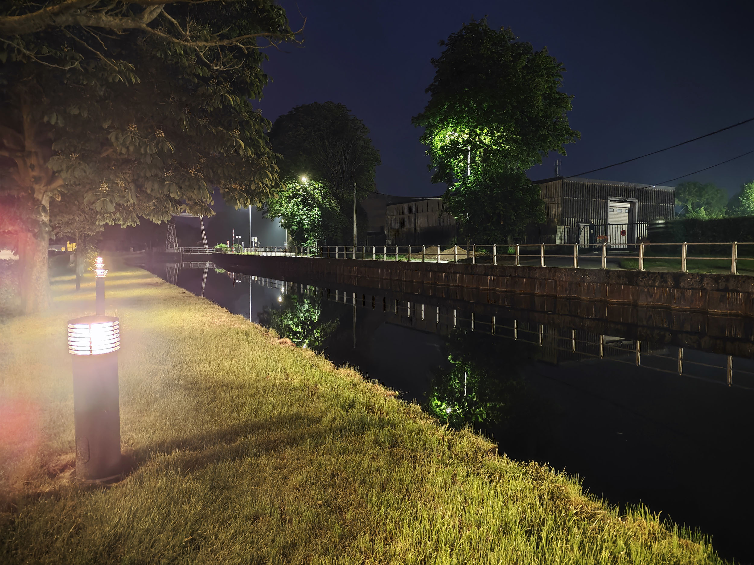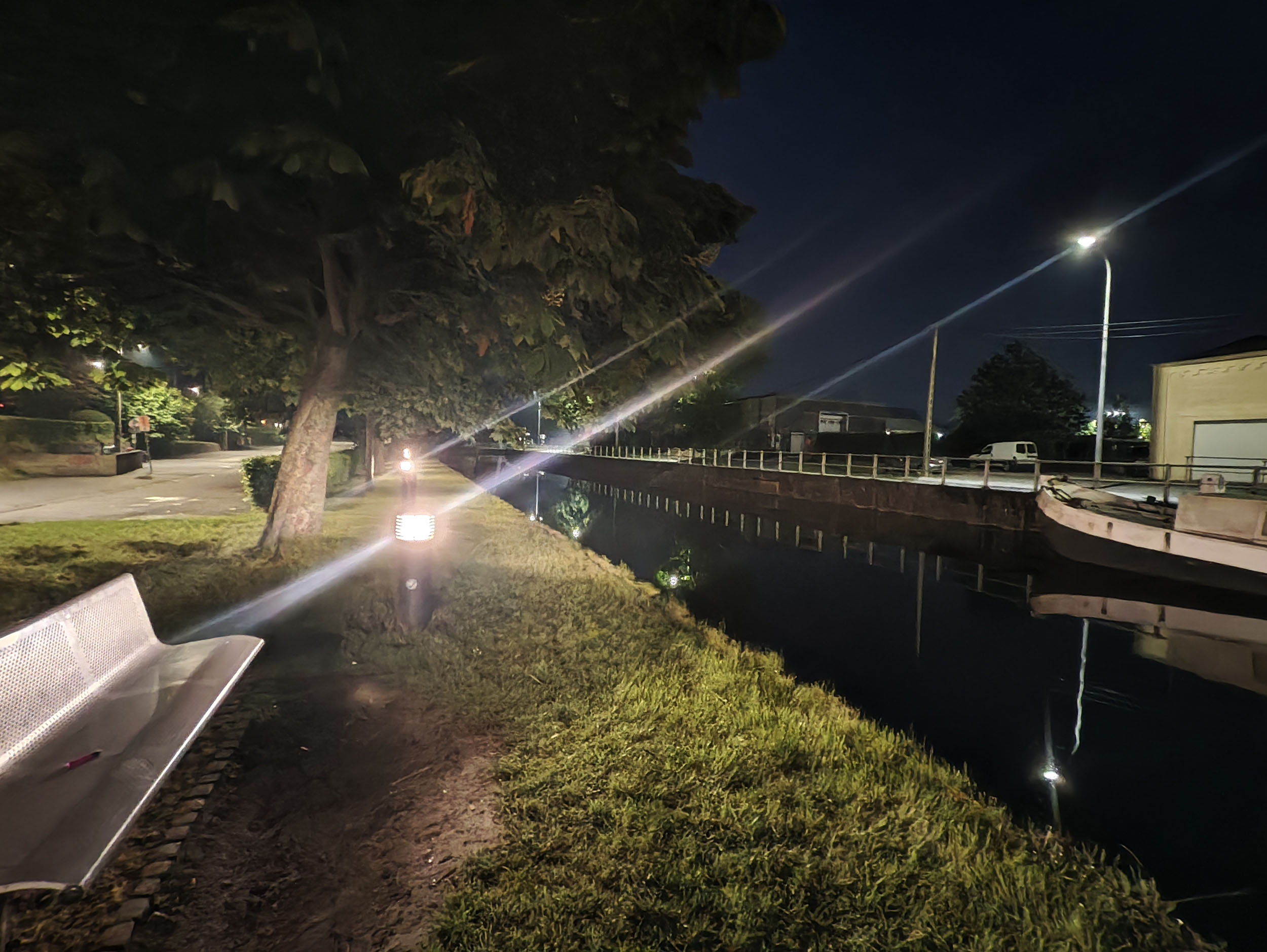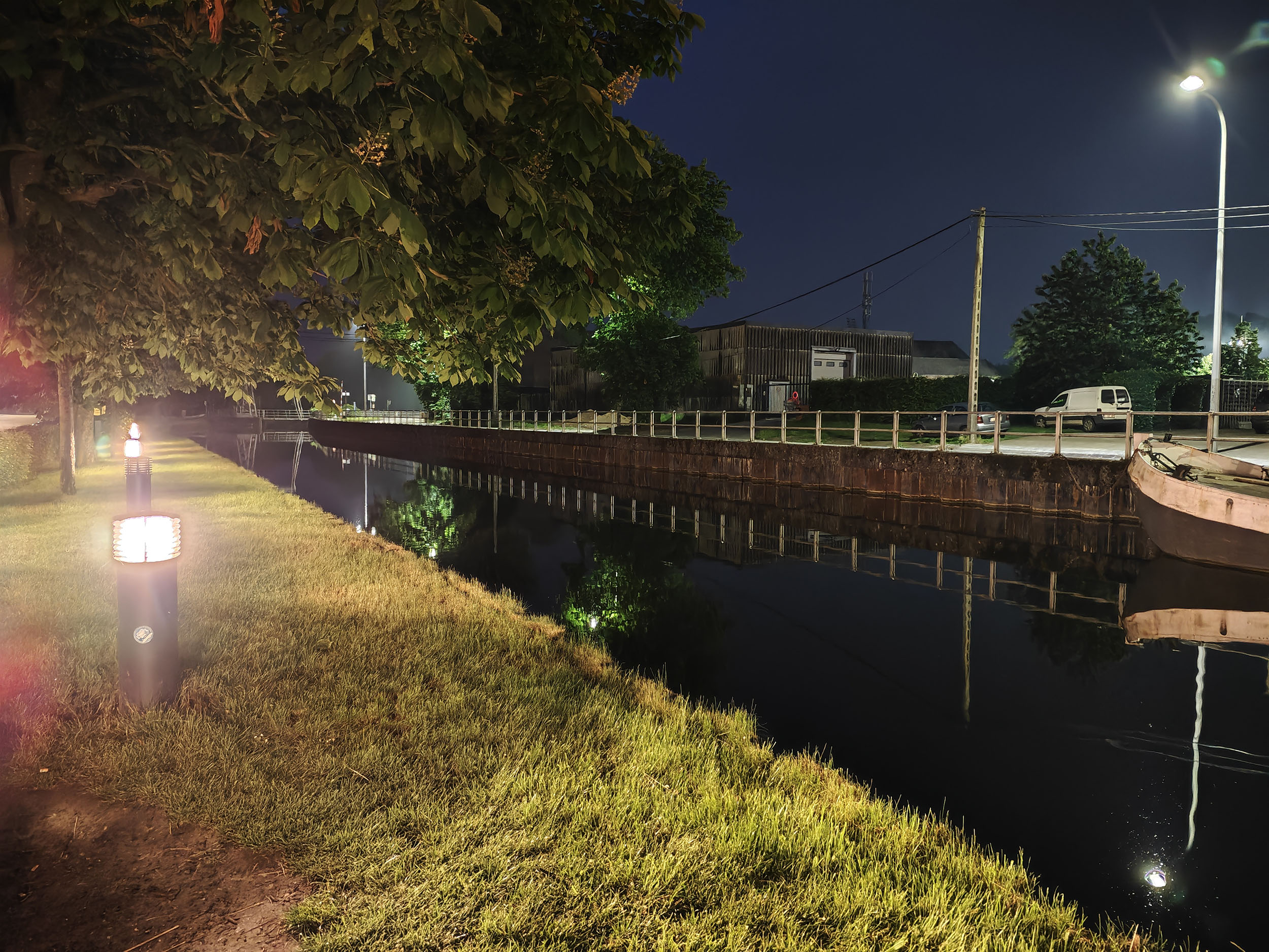 Le POCO F6 Pro dispose d'un mode nuit permettant de combiner plusieurs photos en une seule. Pour prendre une photo de nuit comme celle-ci, il faut 2 à 3 secondes de temps de pose suivi d'une seconde pour la combinaison de l'image. Le traitement est assez rapide et le résultat est assez bon. Le niveau de détail est bon, le traitement de la netteté n'est pas trop agressif. Le temps d'exposition est bon également, la photo n'est pas anormalement illuminée et la teinte globale n'est pas trop chaude comme c'est souvent le cas. Les sources de lumière forte génèrent un halo mais ce n'est pas dérangeant.