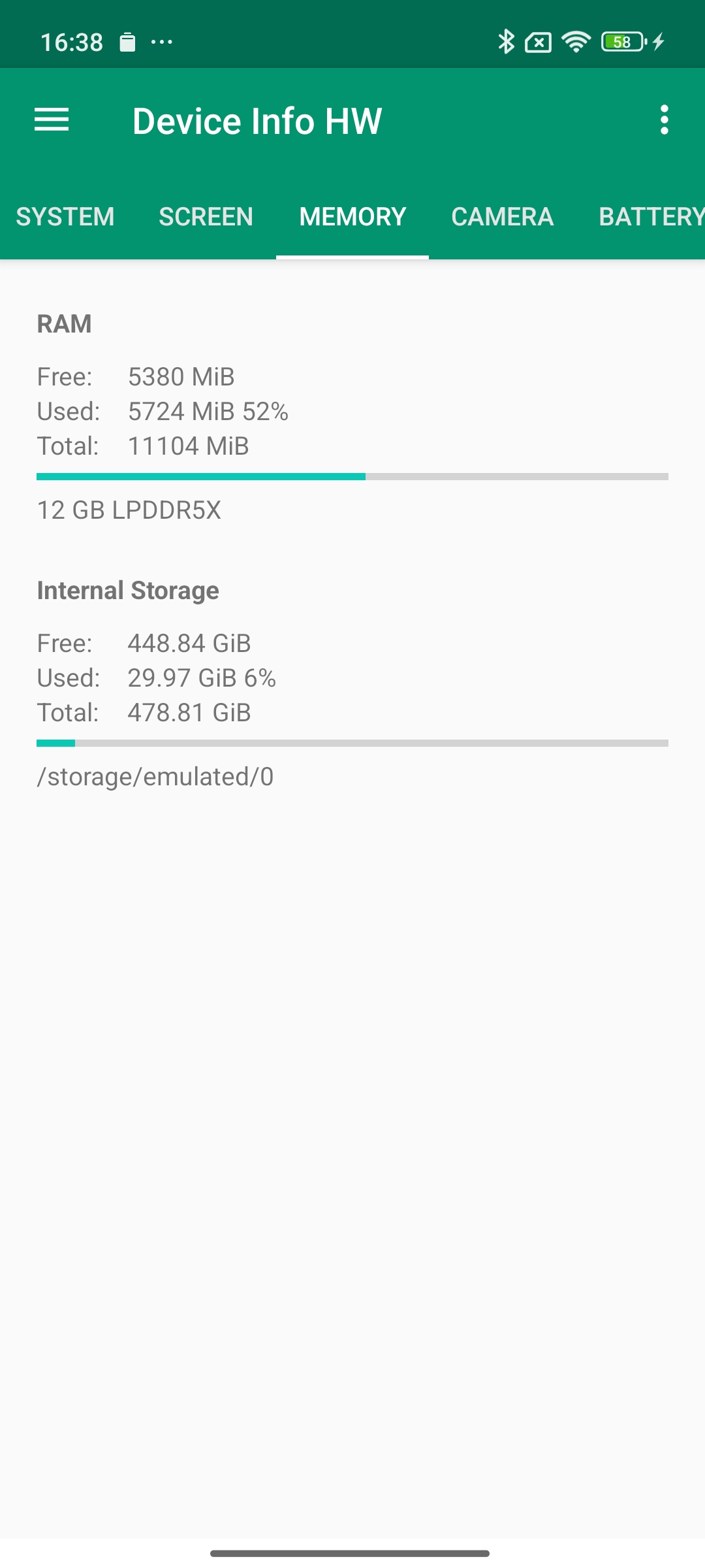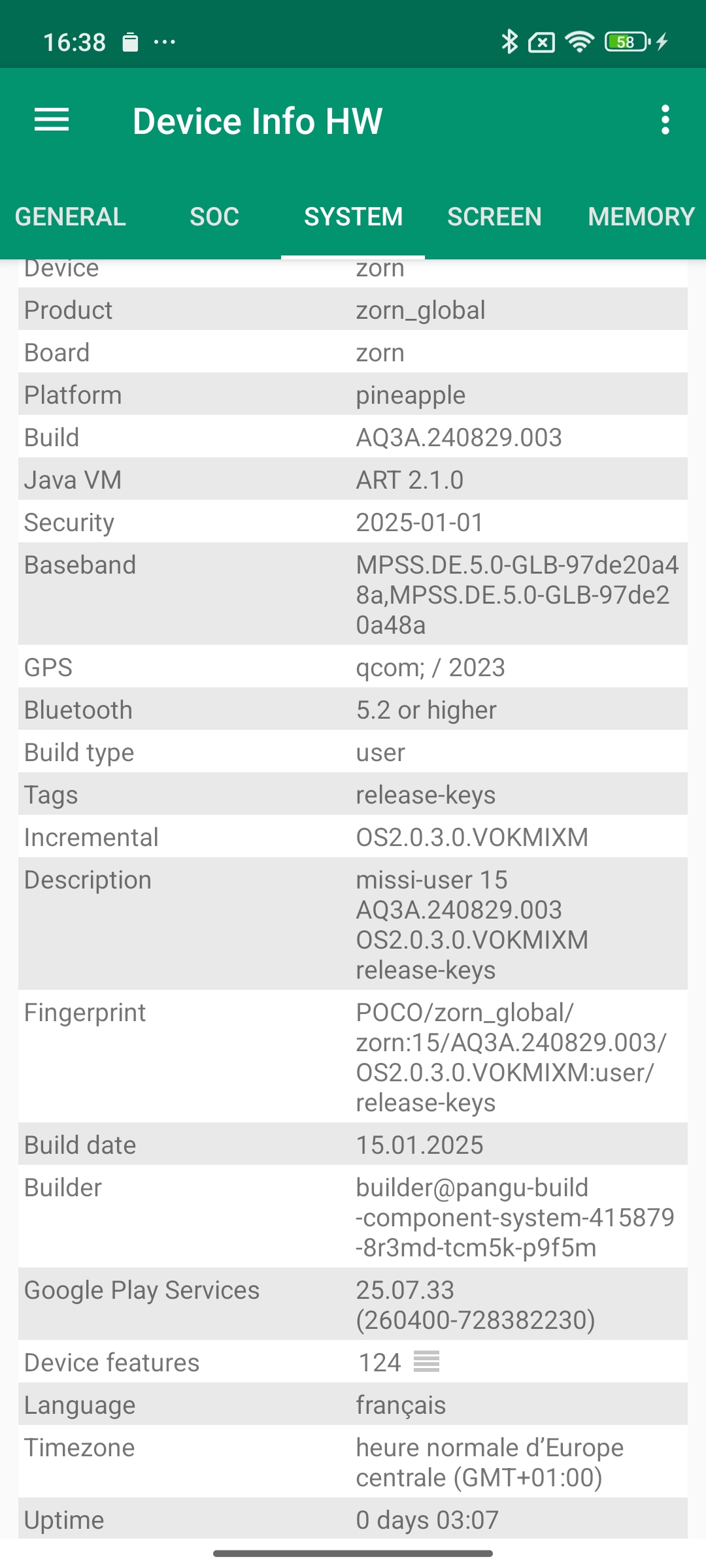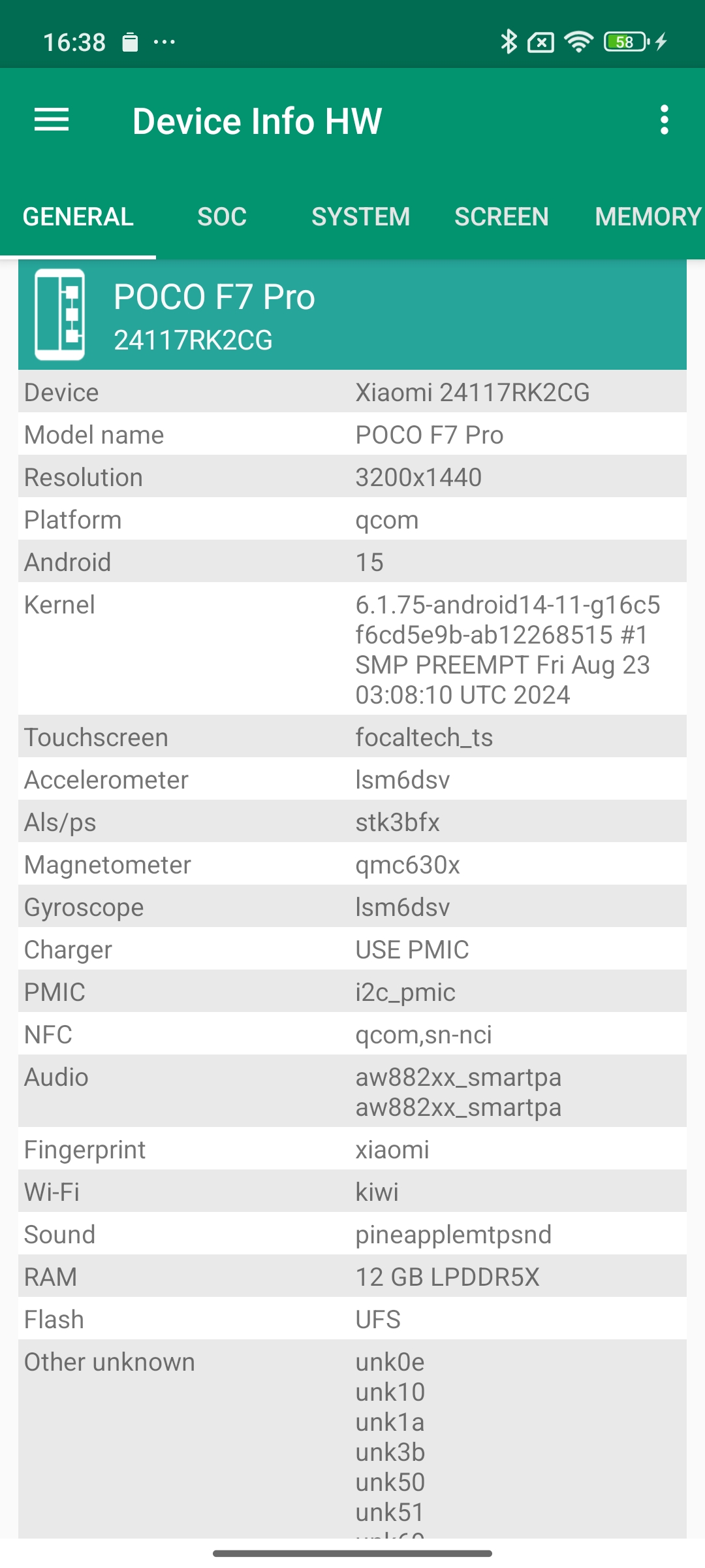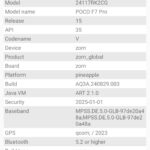 Les informations ci-dessous proviennent de l'application Device Info HW. L'application fournit des informations techniques détaillées sur le téléphone testé.J'ai testé la version 5G avec 12 Gb de mémoire RAM et 512 Gb de stockage.