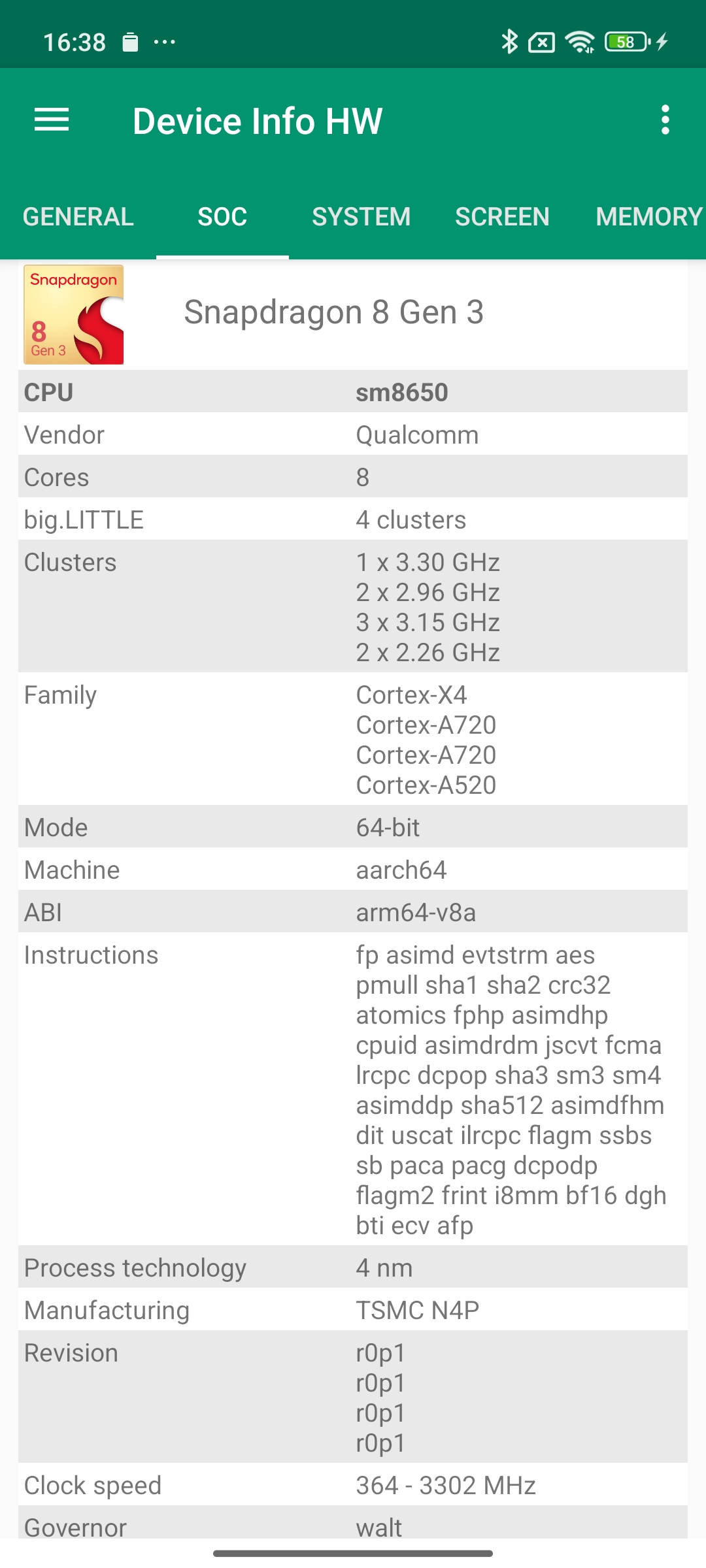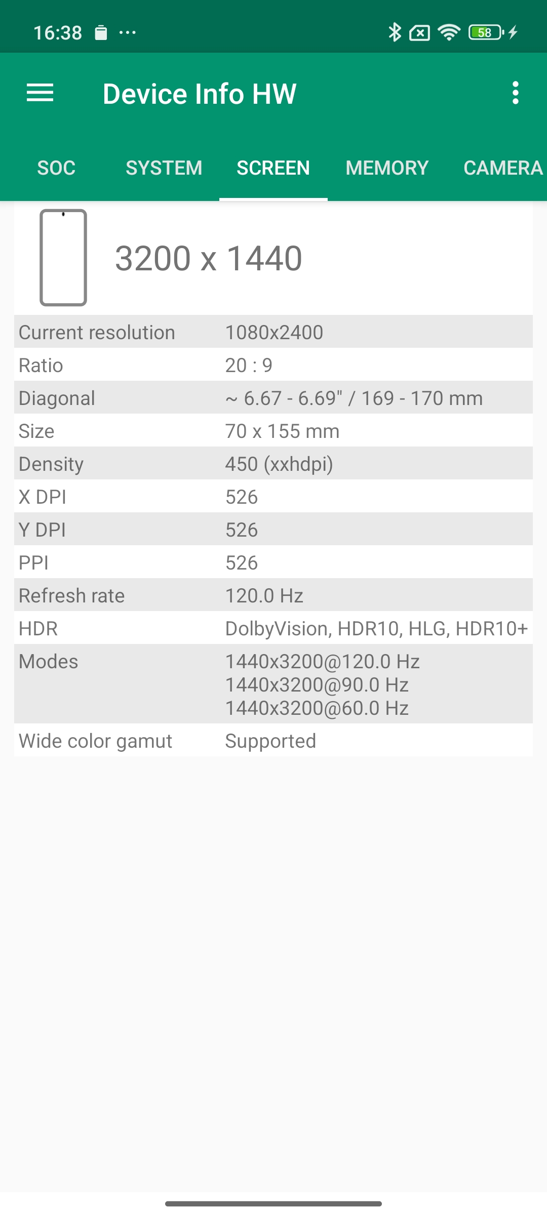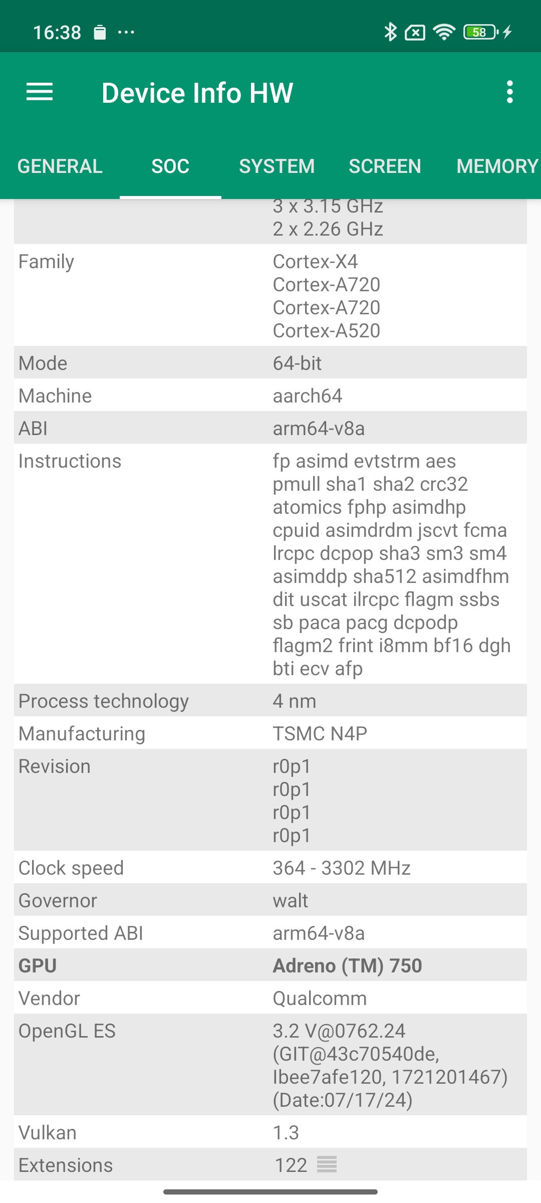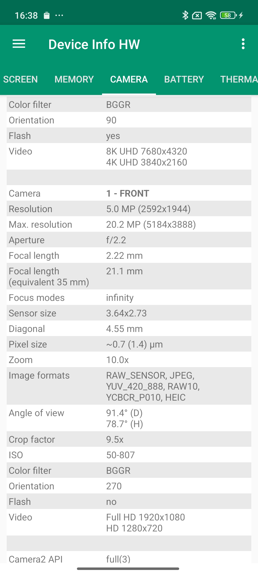 Les informations ci-dessous proviennent de l'application Device Info HW. L'application fournit des informations techniques détaillées sur le téléphone testé.J'ai testé la version 5G avec 12 Gb de mémoire RAM et 512 Gb de stockage.