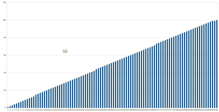 Avec ce graphique on voit que la vitesse de charge est constante, c’est très rare. J’ai d’habitude un gros ralentissement vers 80%. Ce n’est pas du tout le cas ici, la vitesse de charge de cette batterie est donc vraiment excellente.