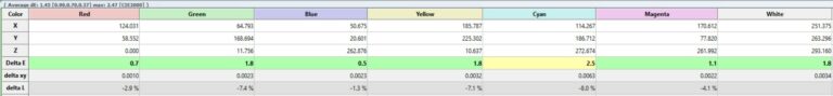Avec ce petit réglage, j’obtiens une delta E de 1.45 pour les couleurs avec un blanc qui passe de 7.9 à 1.8. Pour les gris c’est pareil, je passe de 6.38 à 1.45.