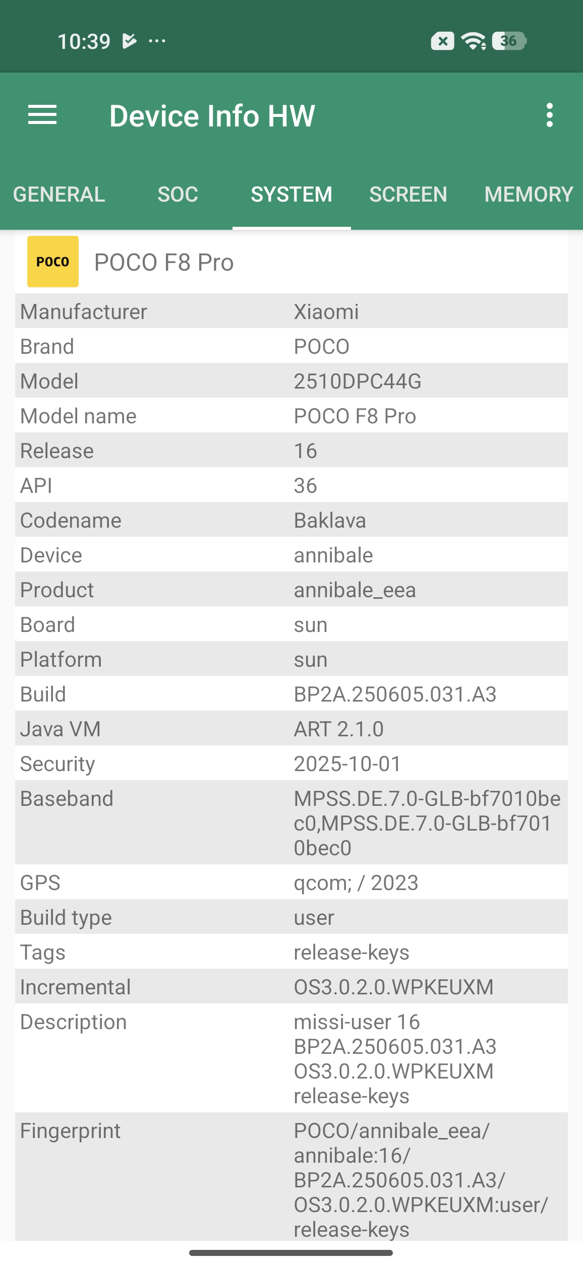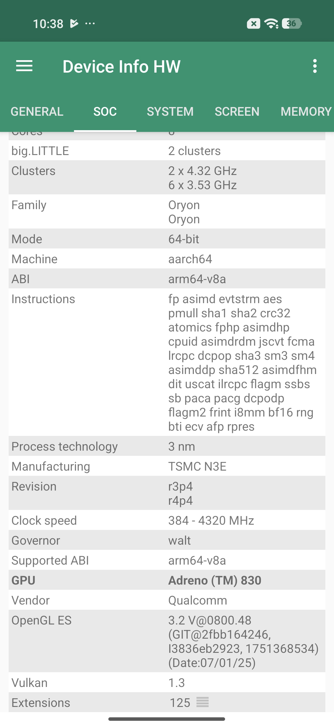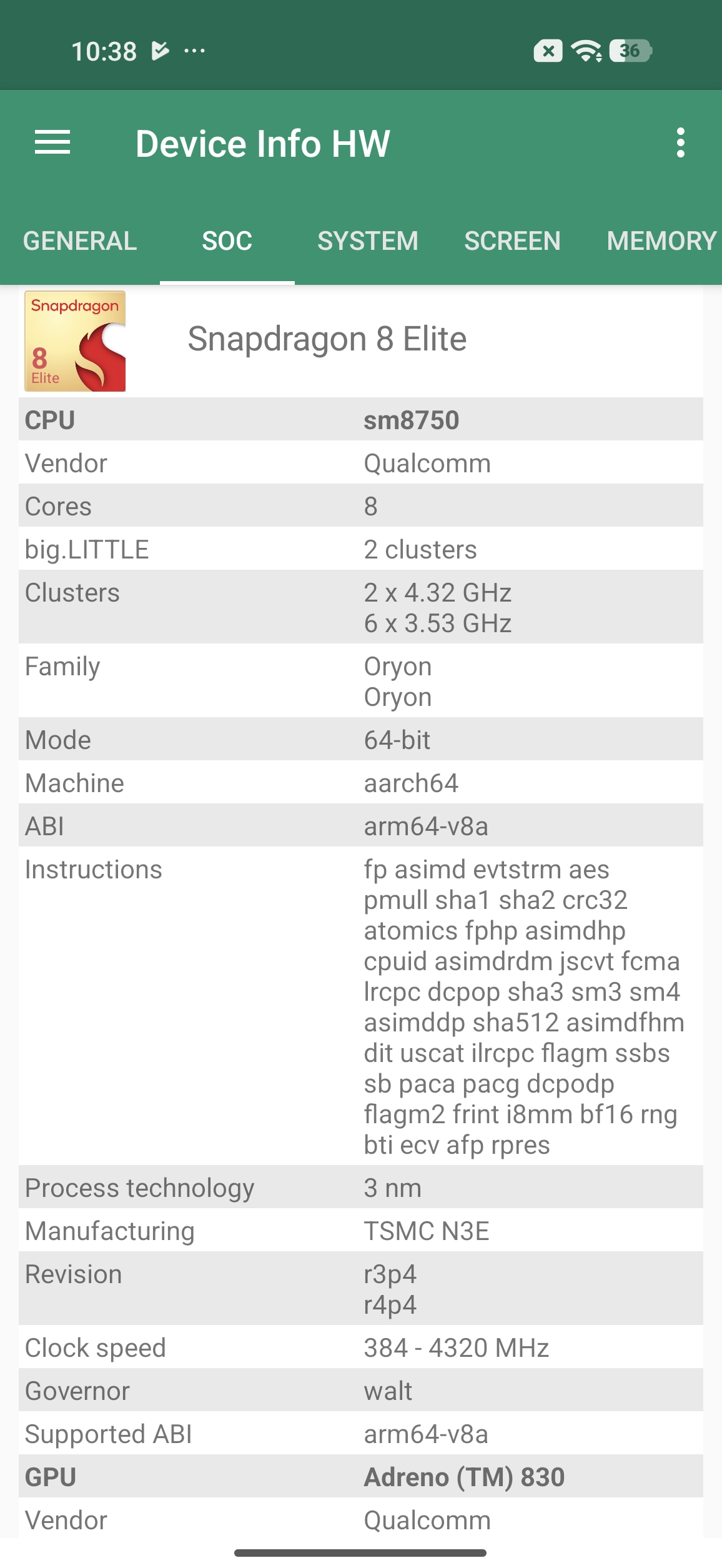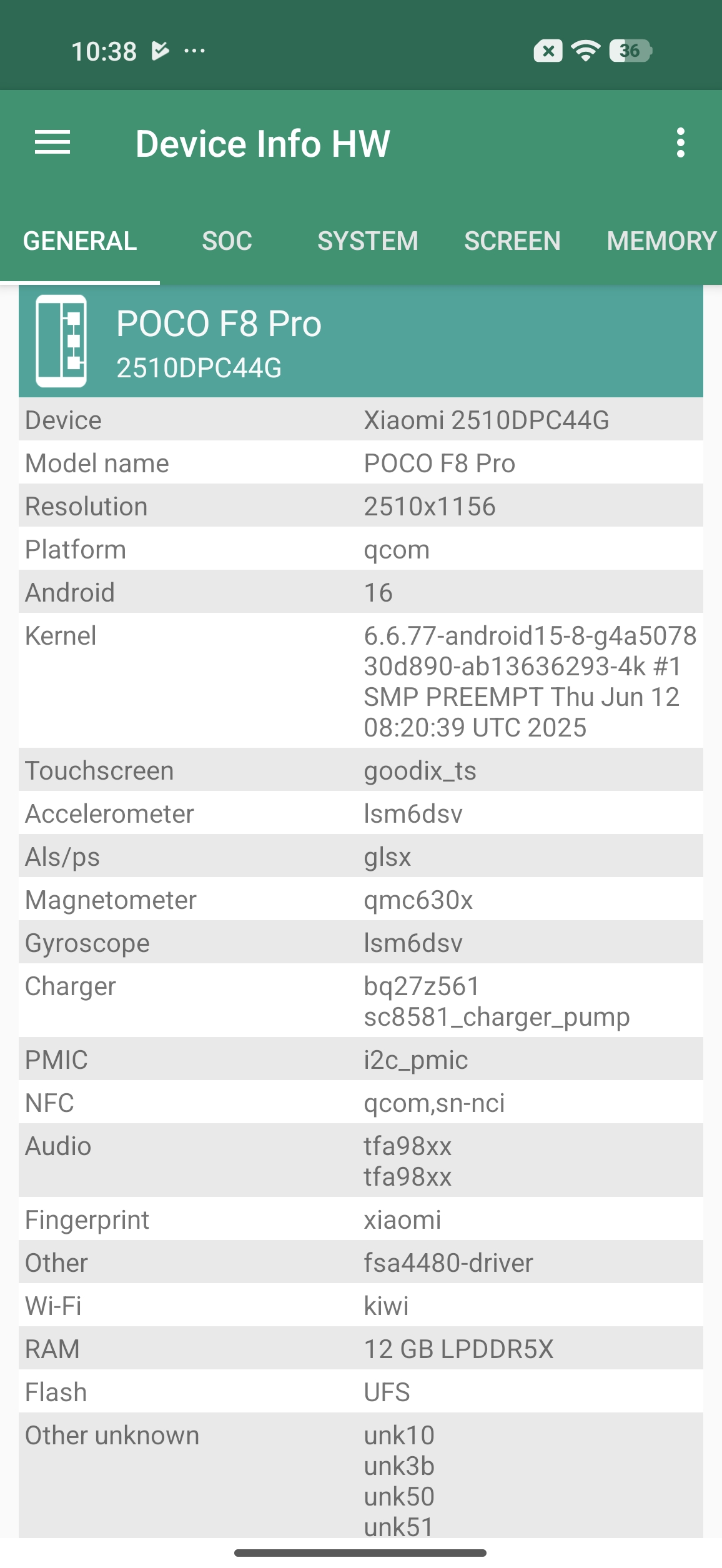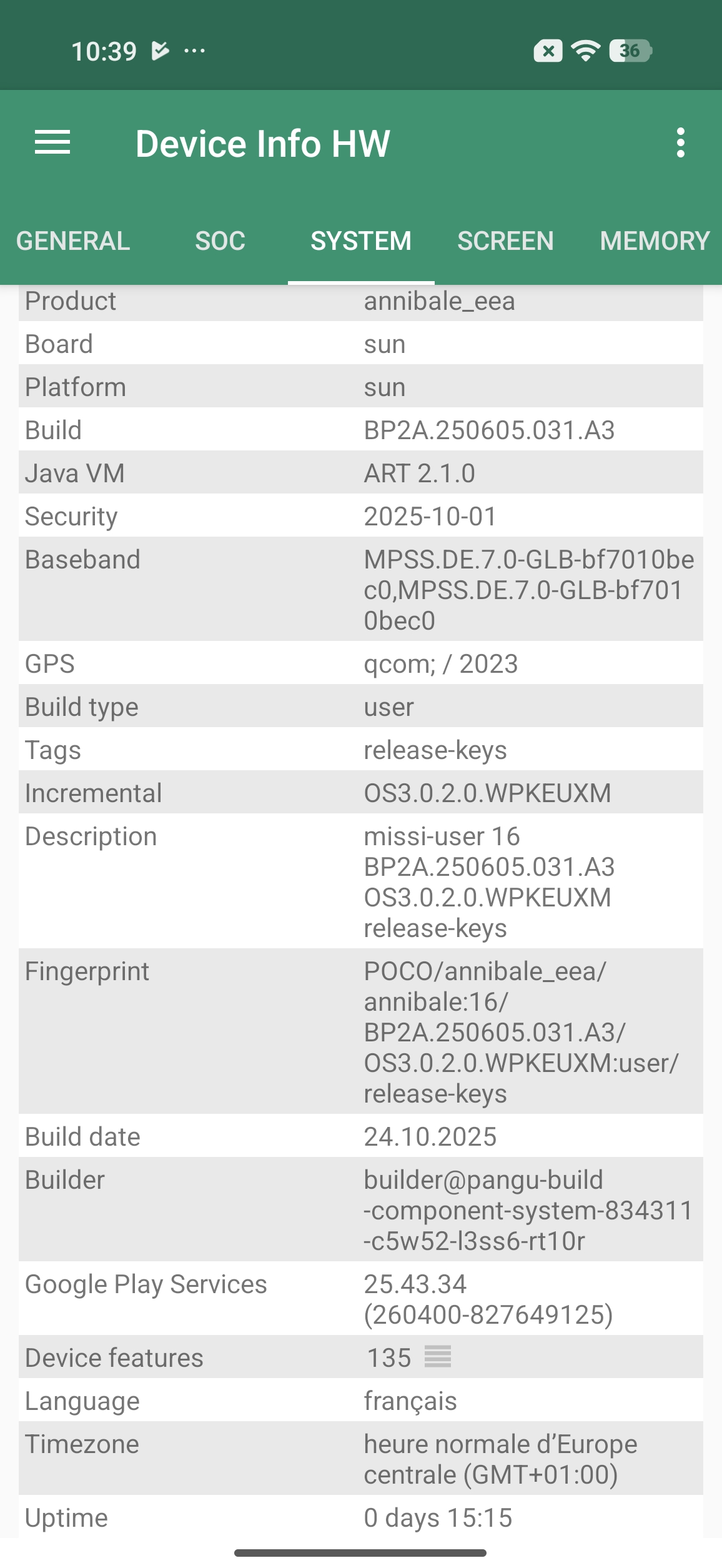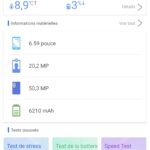 Les informations ci-dessous proviennent de l'application Device Info HW. L'application fournit des informations techniques détaillées sur le téléphone testé.Je vous partage les captures d'écran avec l'application HW Info pour lister toutes les caractéristiques techniques de ce téléphone, il faut cependant prendre certaines informations avec des pincettes. Par expérience, je sais que certaines informations avant la sortie ne sont pas encore correctement reconnues ou interprétées par l'application, ces informations peuvent donc évoluer.