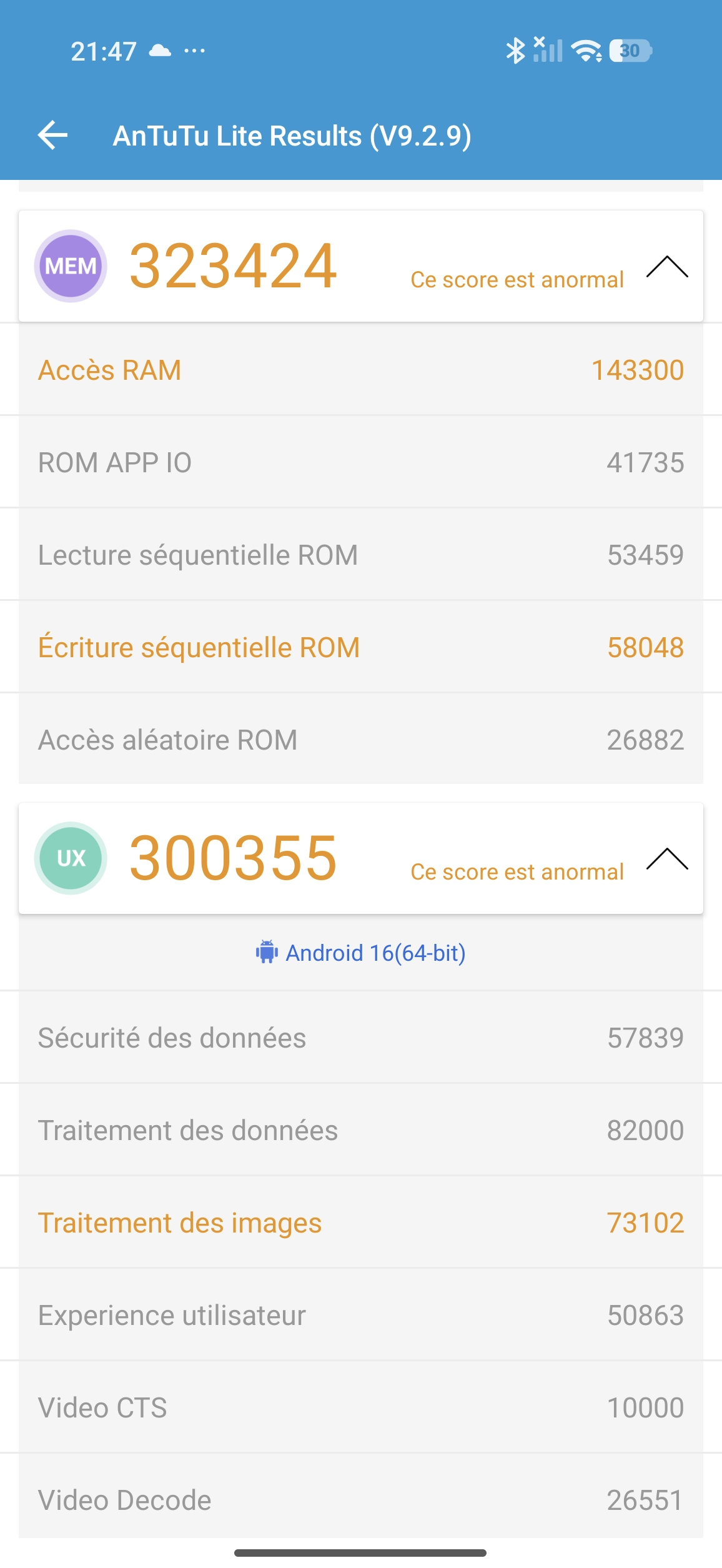 - la mémoire de stockage est très probablement de la mémoire UFS en 4.1 ce qui indique une performance (très) élevée de la mémoire