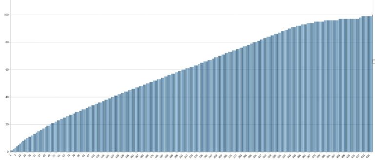 Pour tester l'autonomie des batteries j'ai développé une application qui mesure le niveau de batterie minute par minute jusqu'à ce que la batterie soit vide. Cette application consomme environ une dizaine de pourcent des ressources du téléphone et je fais un test avec une luminosité d'écran à 100% et un autre avec une luminosité à 50%. Ce test vise à reproduire une utilisation contemplative d'un téléphone (ex: surfer sur internet, lire des articles, passer du temps sur les réseaux sociaux). Ces résultats ne sont pas valables pour une utilisation intensive type gaming/streaming. [battery] Vitesse de chargeJ'ai testé la vitesse de charge avec mon chargeur UGREEN 100 watts et il m'a fallu 73 minutes pour charger la batterie de 0 à 100%. La trajectoire n'est évidemment pas linéaire comme vous pouvez le voir sur ce graphique: