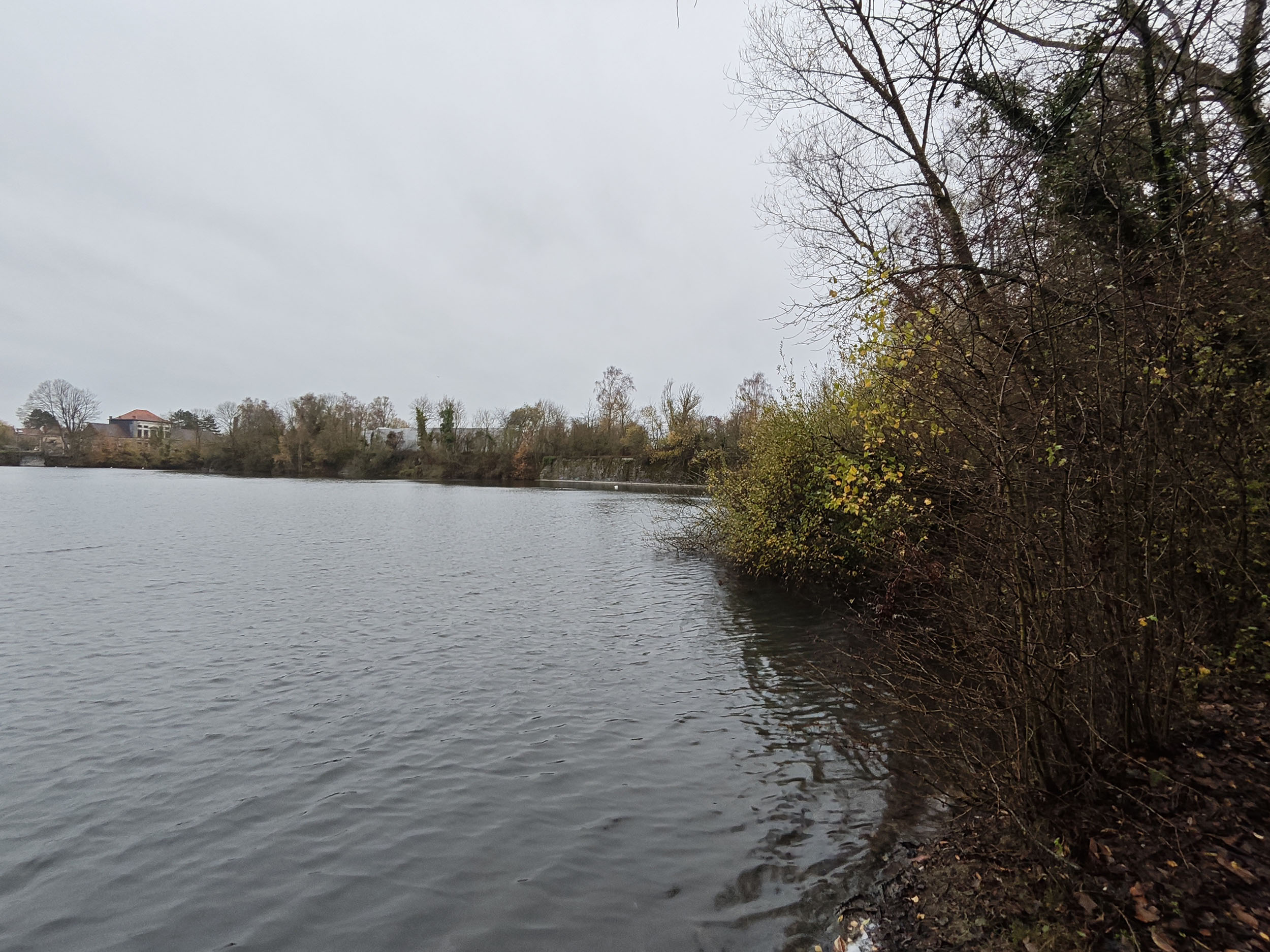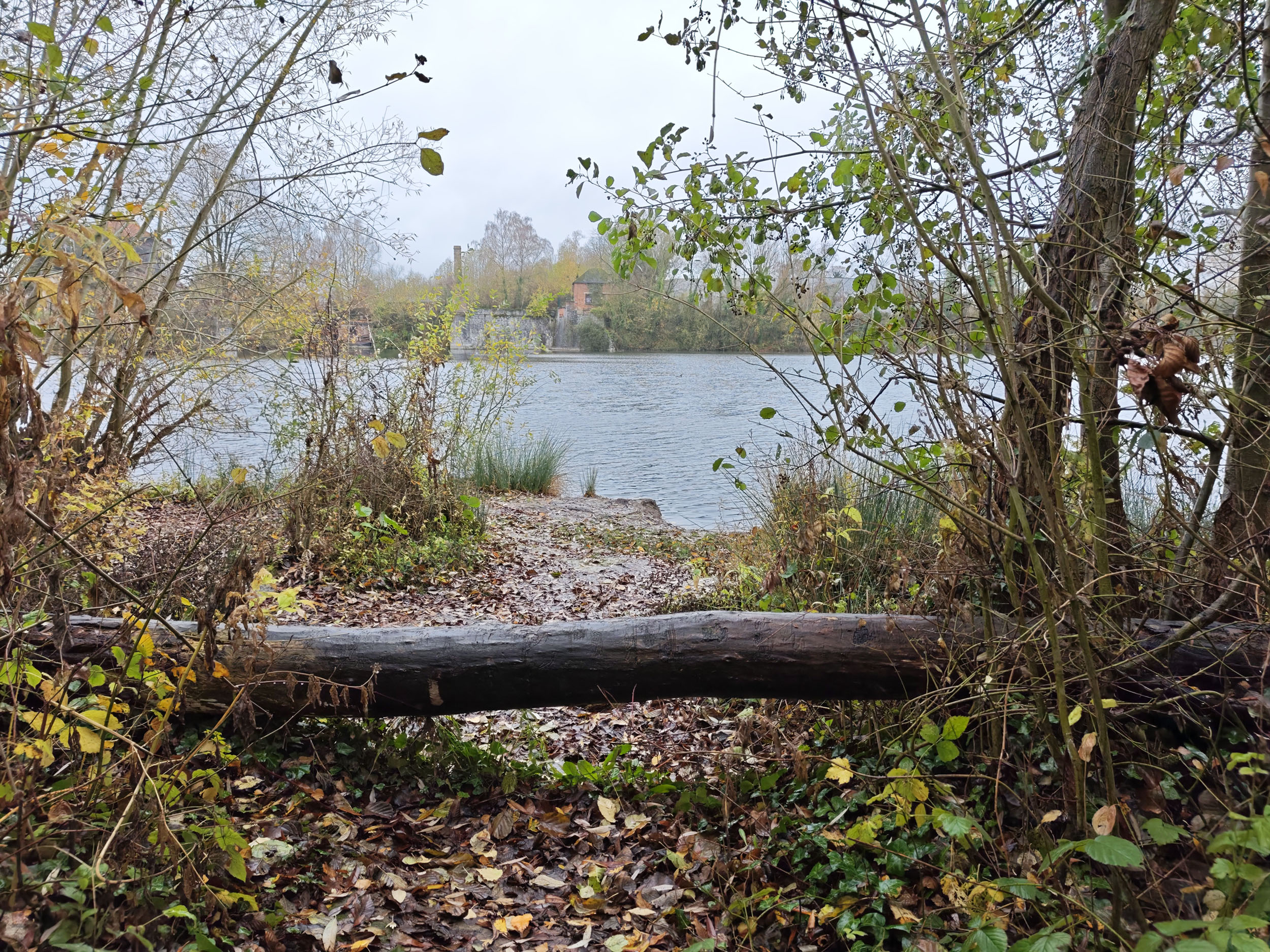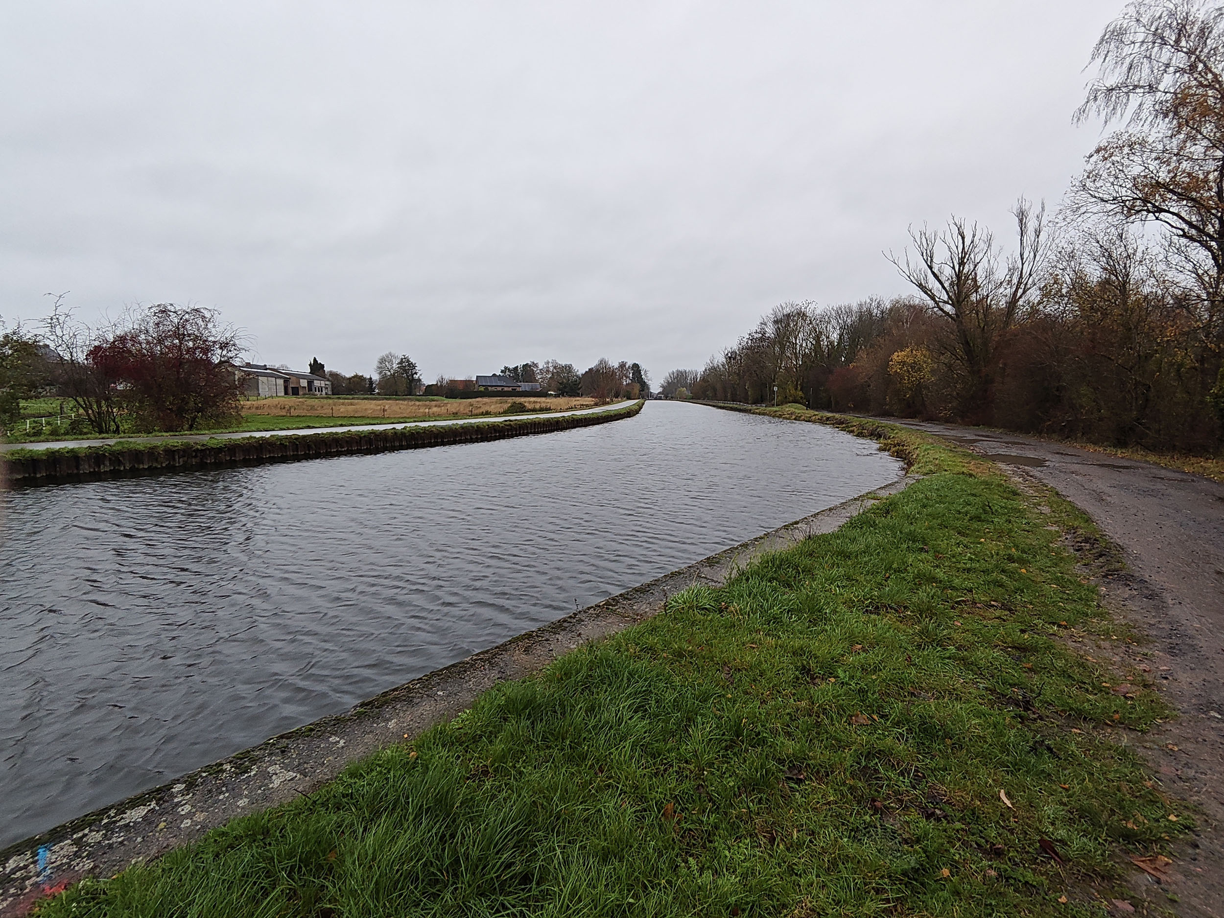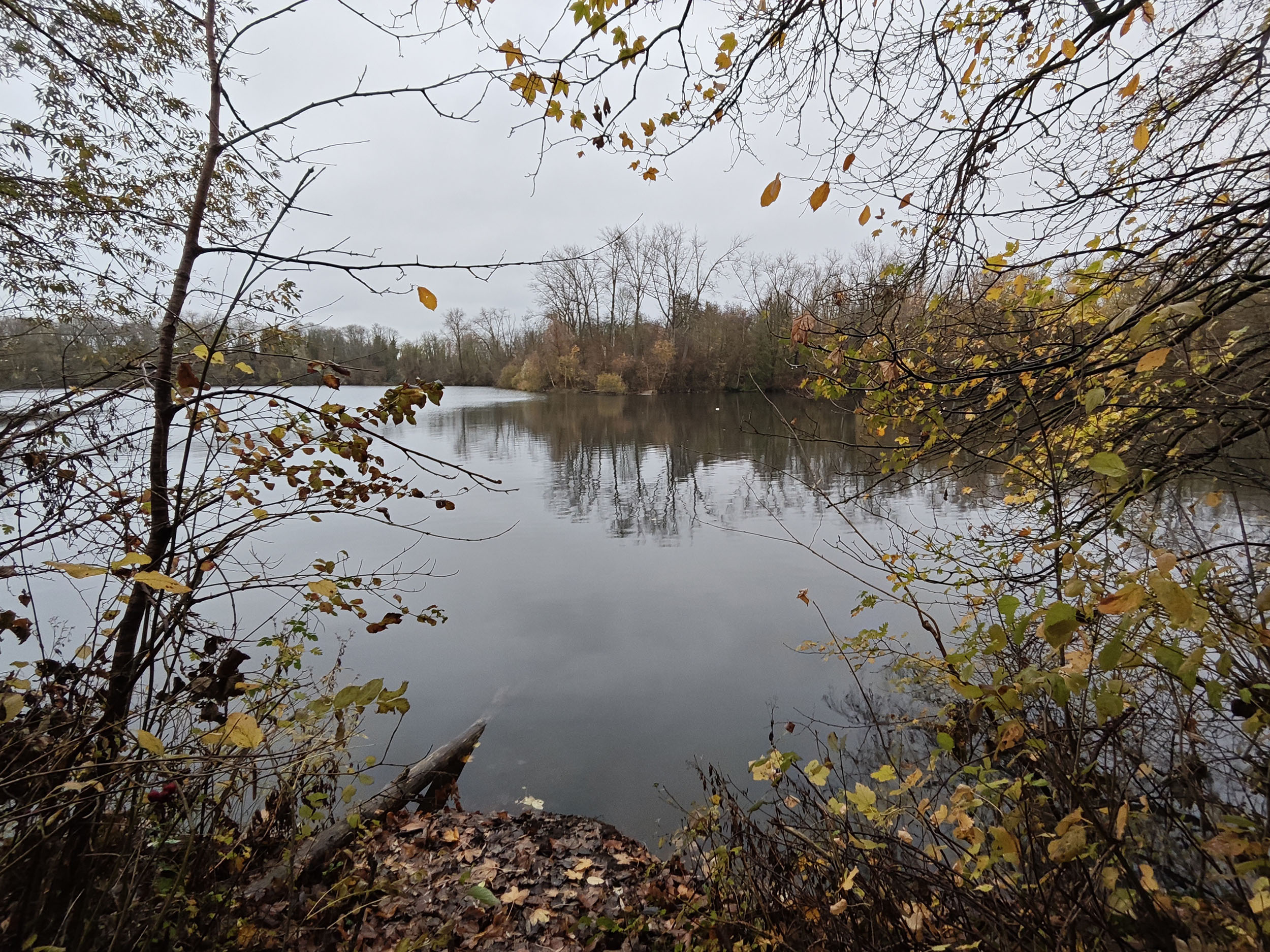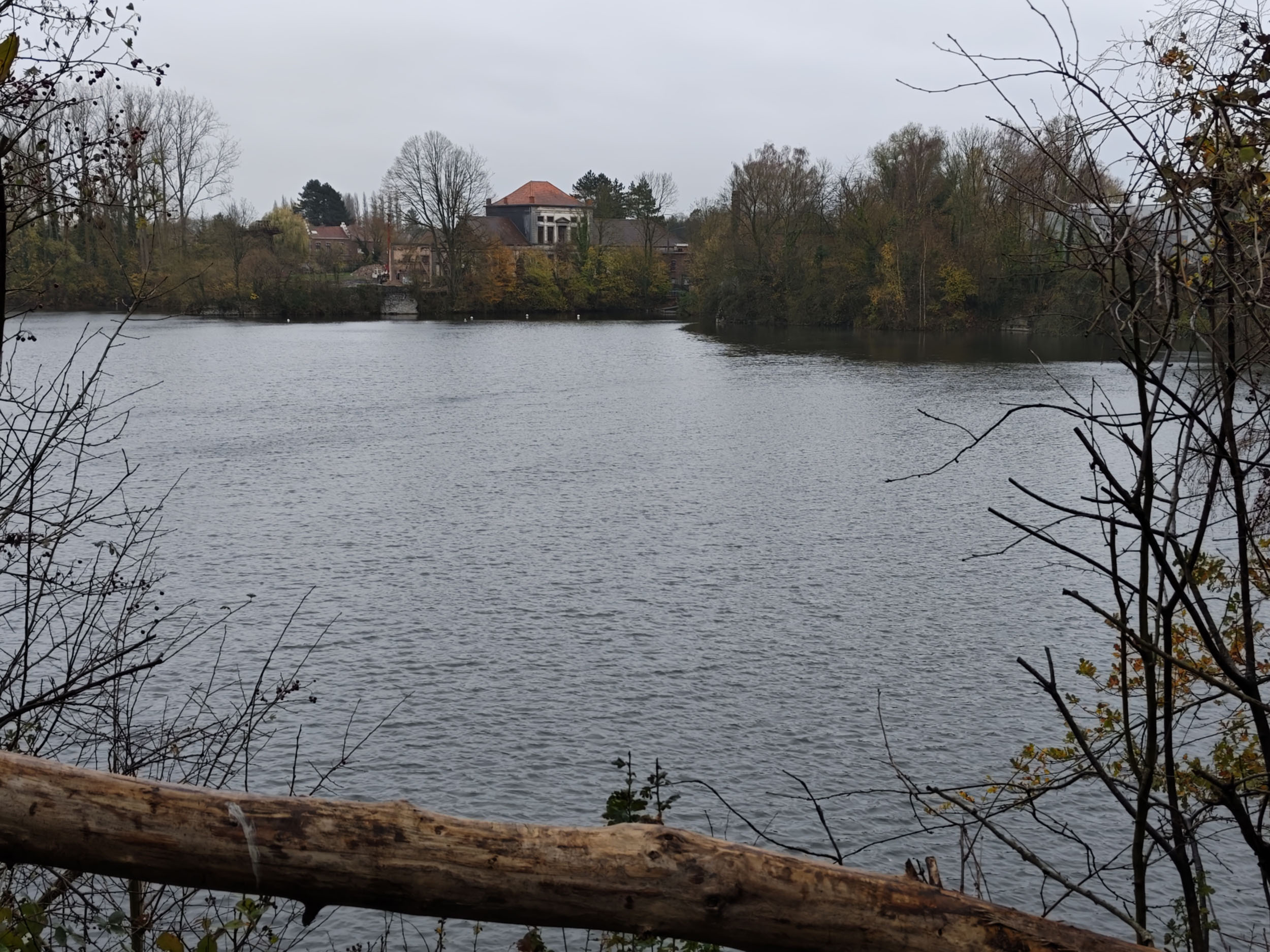 Le ciel était très nuageux quand j'ai pris cette photo, il pleuvait un peu et tous les chemins étaient imbibés d'eau. La photo est donc assez sombre mais elle reflète assez bien la réalité. Les capteurs de smartphone sont souvent mis en difficulté par ce genre de scène parce qu'ils doivent s'accrocher à quelque chose pour optimiser l'image. S'ils prennent le ciel comme référence, la photo sera trop sombre. S'ils prennent le sol comme référence, le ciel sera complètement brulé. Ici il y a une sorte d'équilibre, j'aperçois encore des détails dans le ciel et le feuillage n'est pas trop sombre. Les couleurs d'automne sont bien restituées même si l'exposition aurait pu être un peu plus marquée. La température des couleurs est correcte là où les smartphones produisent souvent des images soit trop chaudes soit trop froides.