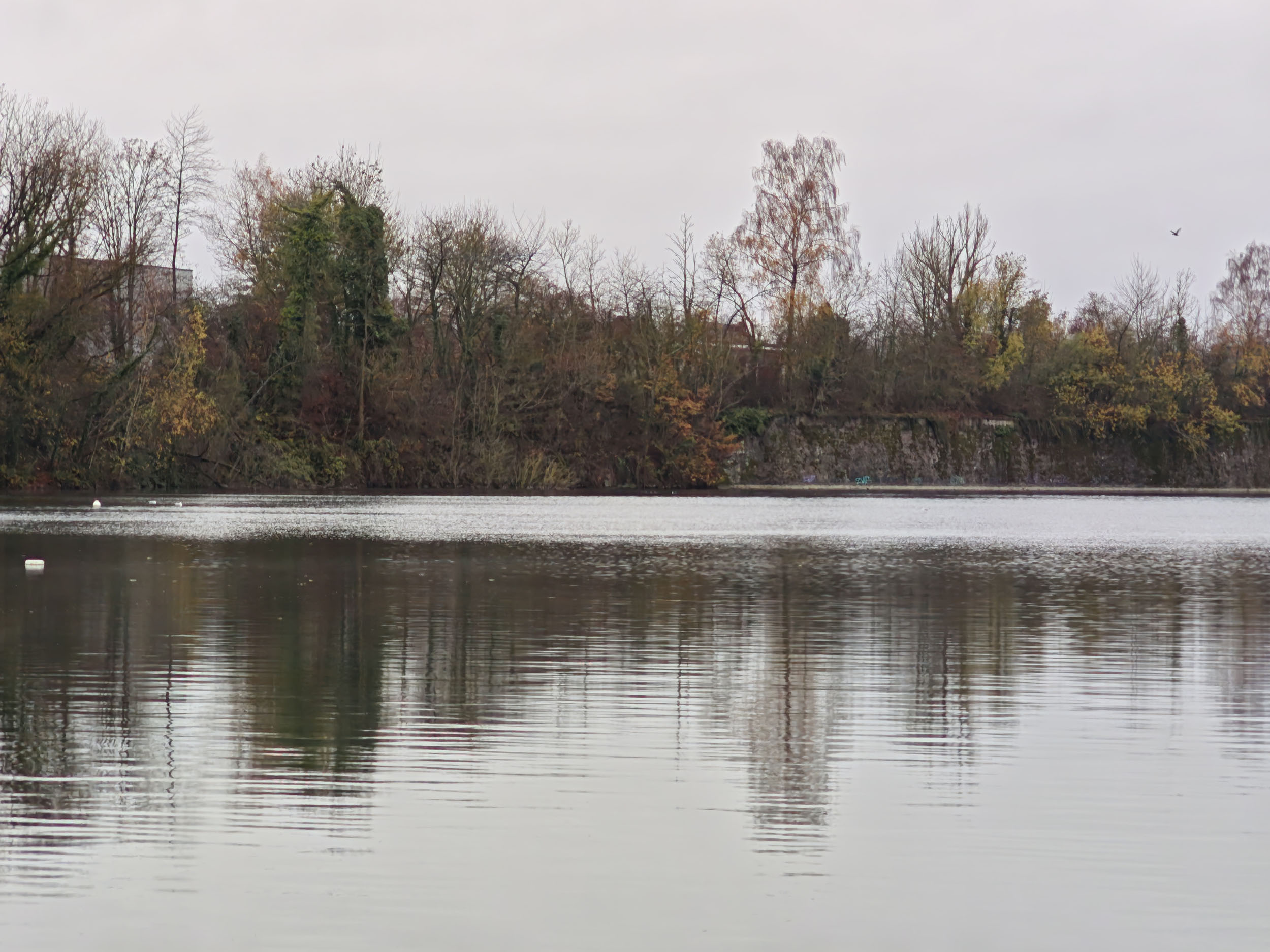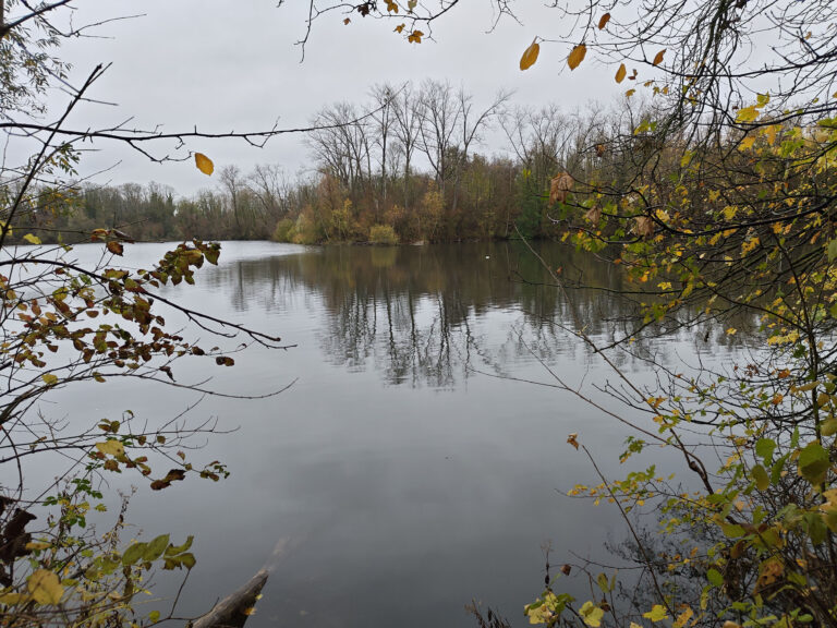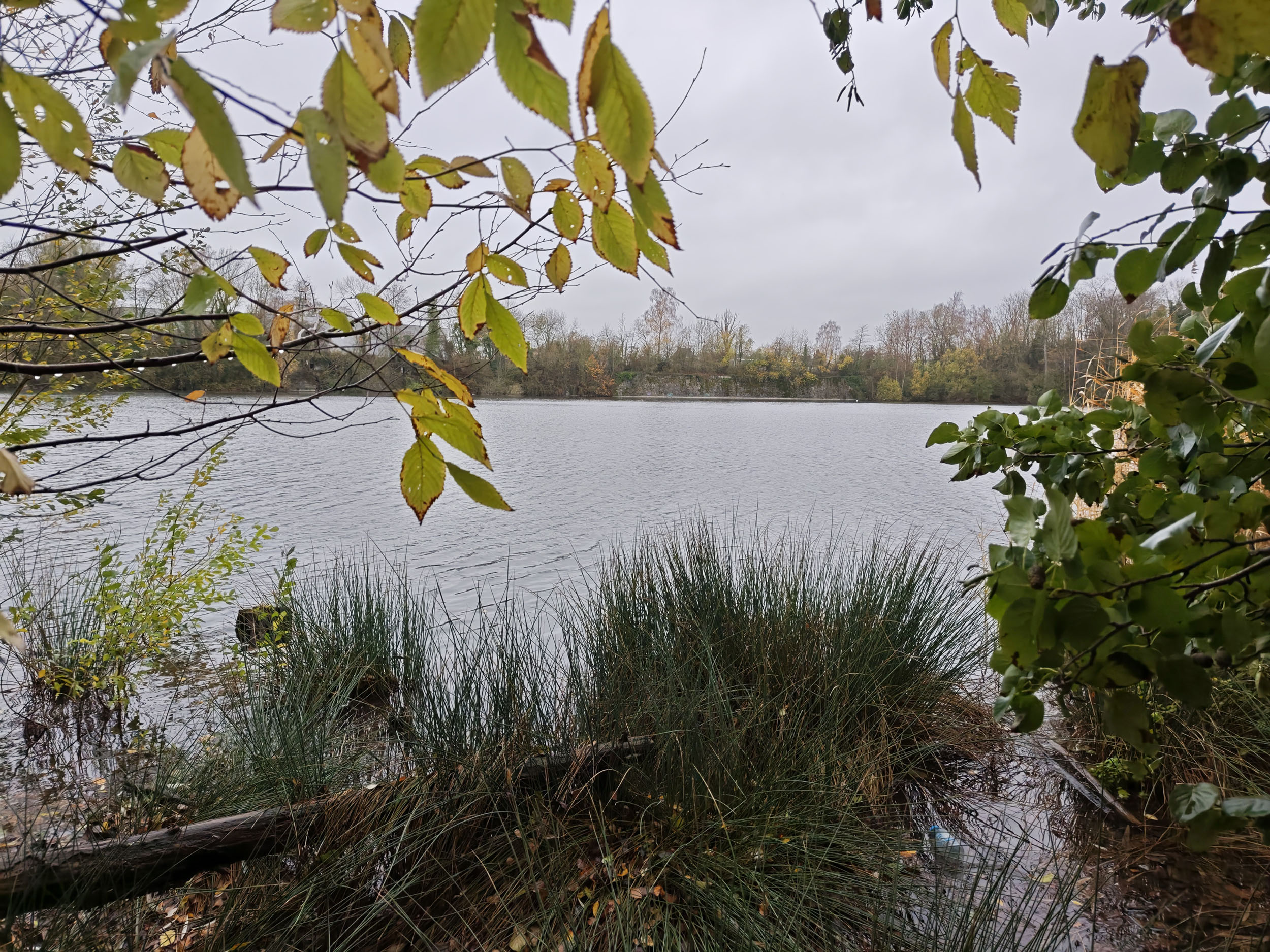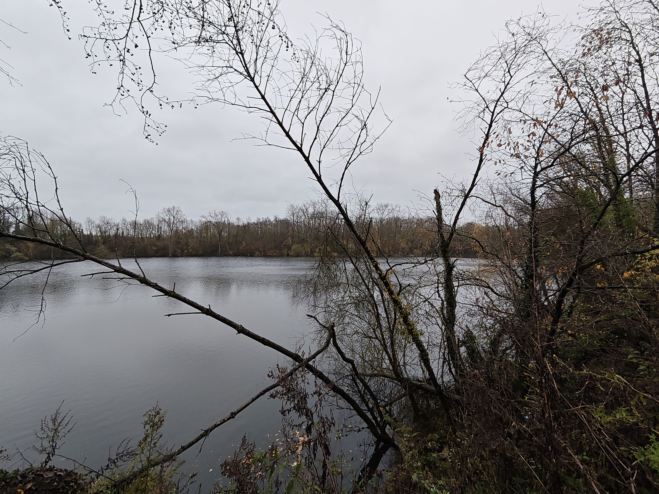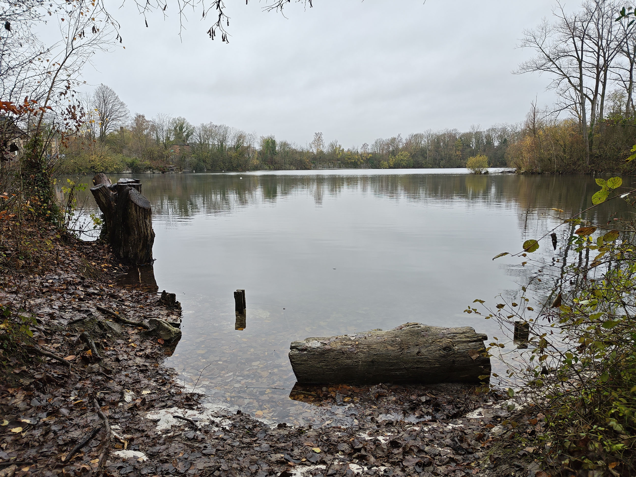 Le ciel était très nuageux quand j'ai pris cette photo, il pleuvait un peu et tous les chemins étaient imbibés d'eau. La photo est donc assez sombre mais elle reflète assez bien la réalité. Les capteurs de smartphone sont souvent mis en difficulté par ce genre de scène parce qu'ils doivent s'accrocher à quelque chose pour optimiser l'image. S'ils prennent le ciel comme référence, la photo sera trop sombre. S'ils prennent le sol comme référence, le ciel sera complètement brulé. Ici il y a une sorte d'équilibre, j'aperçois encore des détails dans le ciel et le feuillage n'est pas trop sombre. Les couleurs d'automne sont bien restituées même si l'exposition aurait pu être un peu plus marquée. La température des couleurs est correcte là où les smartphones produisent souvent des images soit trop chaudes soit trop froides.