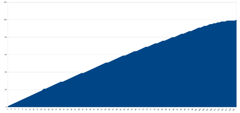 Pour tester l'autonomie des batteries j'ai développé une application qui mesure le niveau de batterie minute par minute jusqu'à ce que la batterie soit vide. Cette application consomme environ une dizaine de pourcent des ressources du téléphone et je fais un test avec une luminosité d'écran à 100% et un autre avec une luminosité à 50%. Ce test vise à reproduire une utilisation contemplative d'un téléphone (ex: surfer sur internet, lire des articles, passer du temps sur les réseaux sociaux). Ces résultats ne sont pas valables pour une utilisation intensive type gaming/streaming. [battery]