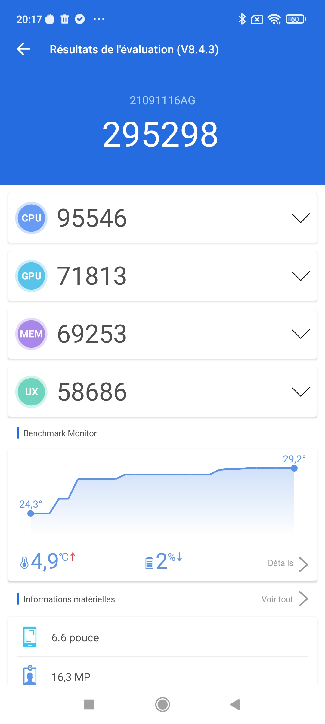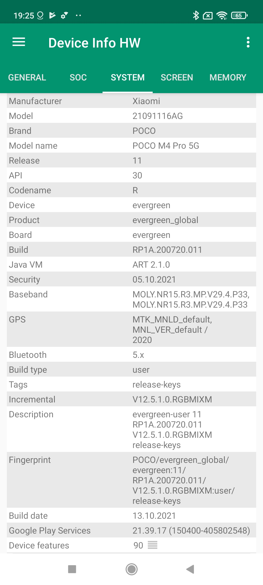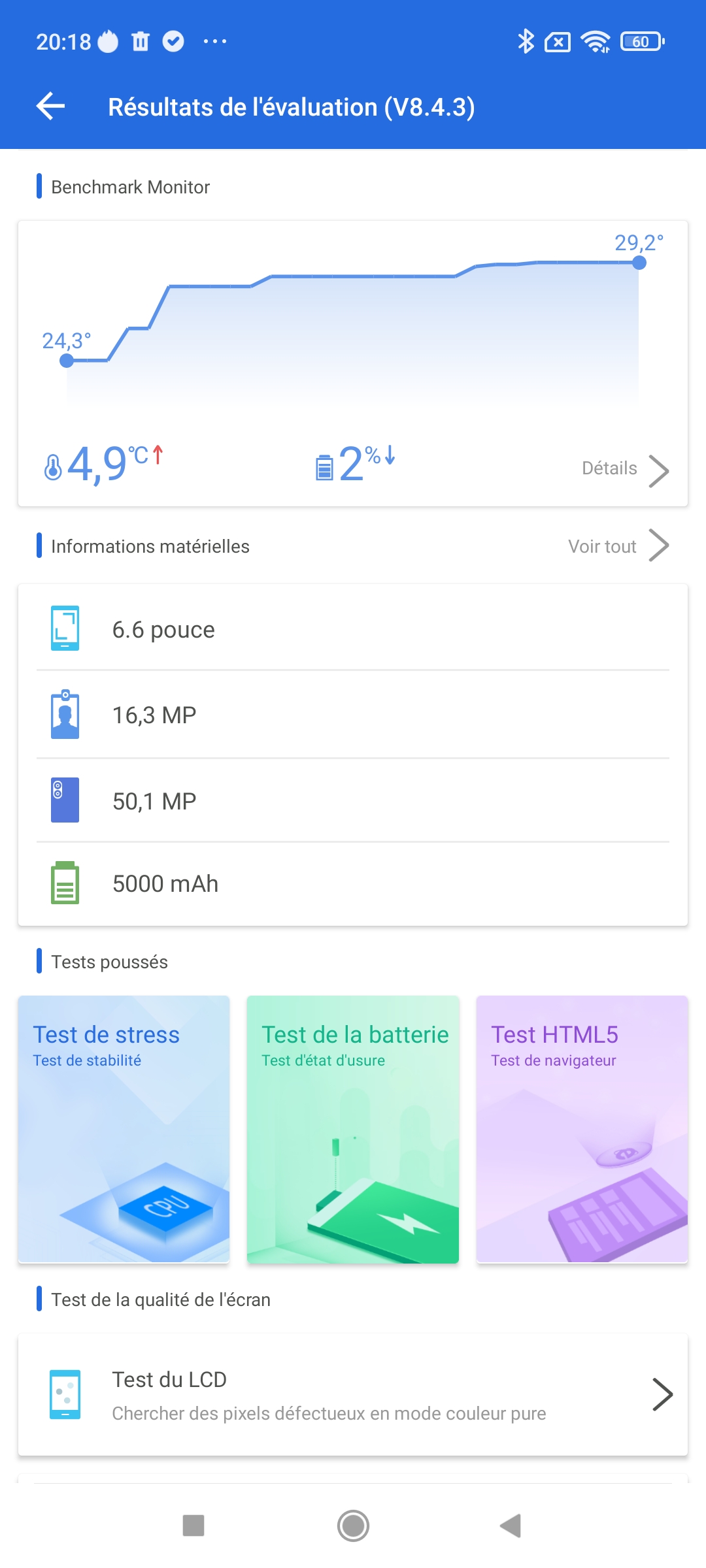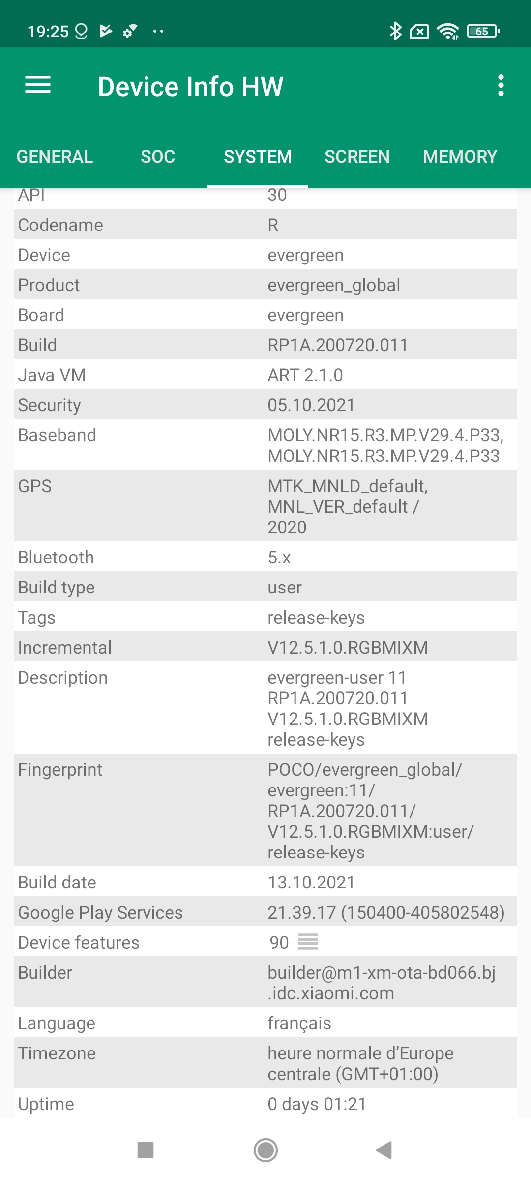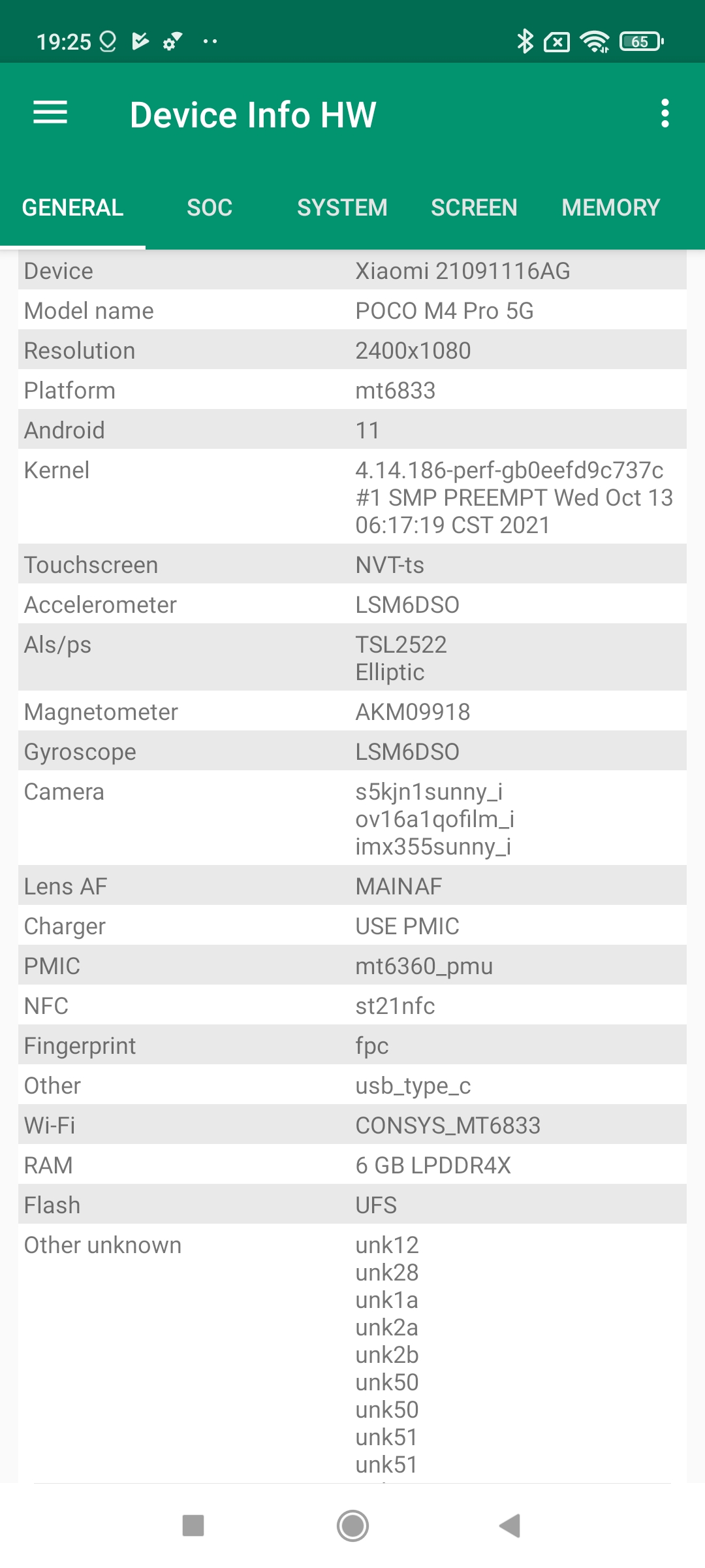 Les informations ci-dessous proviennent de l'application Device Info HW. L'application fournit des informations techniques détaillées sur le téléphone testé.J'ai testé le Poco M4 Pro dans sa version 6Gb / 128 Gb, vous retrouverez toutes les caractéristiques détaillées dans les écrans suivants.