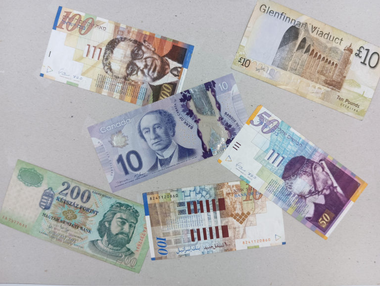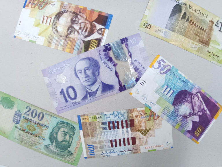 Sur cette photo les caractéristiques du capteur Samsung sont plus visibles. La netteté au centre permet de lire les petits textes sur le billet canadien mais cette netteté se dégrade en périphérie. Même si les textes sont encore lisibles, je distingue très nettement une ligne de flou dans le billet hongrois (bas à gauche) et le billet anglais (haut à droite). La photo est un peu sous-exposée, ce problème sera également visible sur les photos en extérieur. Les couleurs sont un peu trop chaude, cela se verra aussi sur les photos en extérieur.