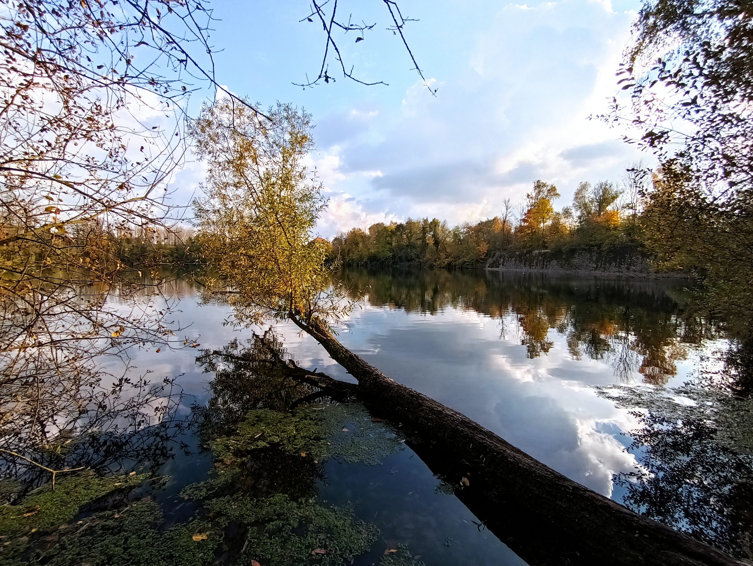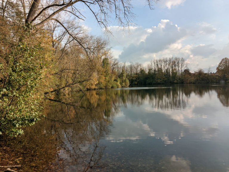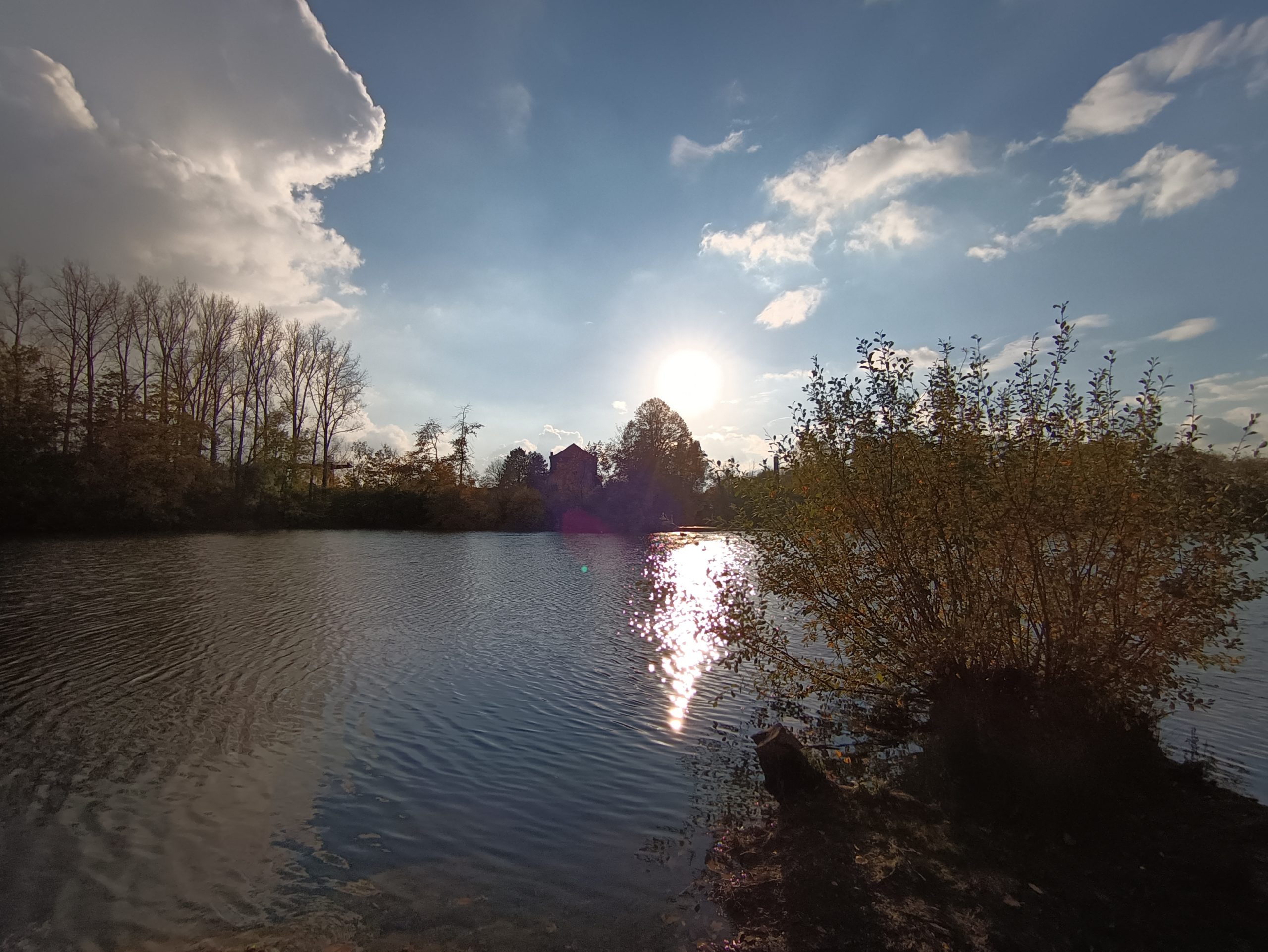J'ai pris cette photo au même endroit et au même moment avec Gcam. La photo semble plus sombre, les couleurs sont plus sombres et l'ensemble de la photo semble couverte par une fine pellicule de jaune. Par contre, le niveau de détail est plus important, il faut par exemple comparer le ciel ou la zone avec les feuilles sous l'eau en bas à gauche. La force de Gcam réside dans l'optimisation des photos et cela porte ses fruits ici pour le niveau de détail mais par contre l'exposition et les couleurs sont moins bonnes qu'avec l'application photo de Poco.
