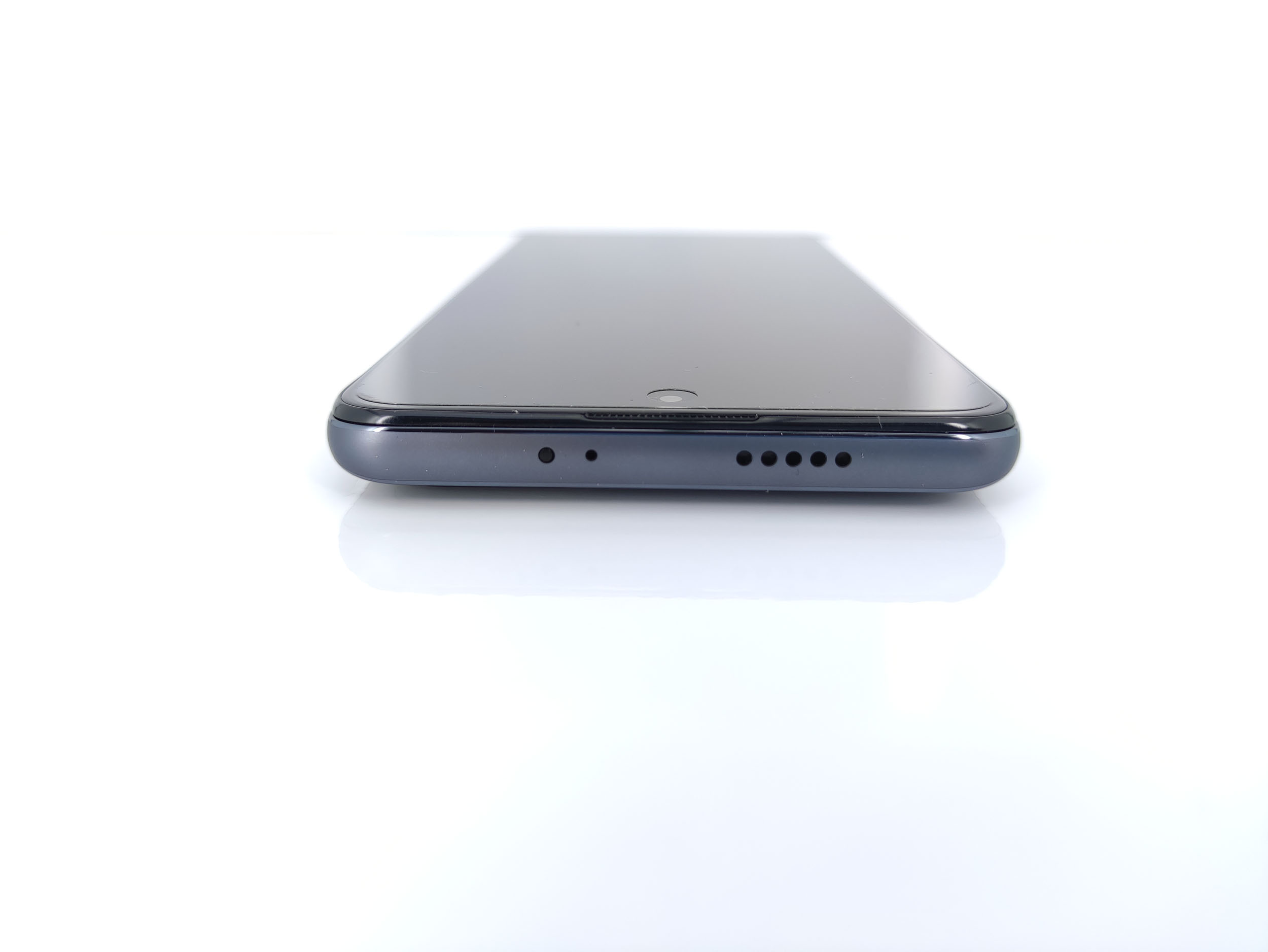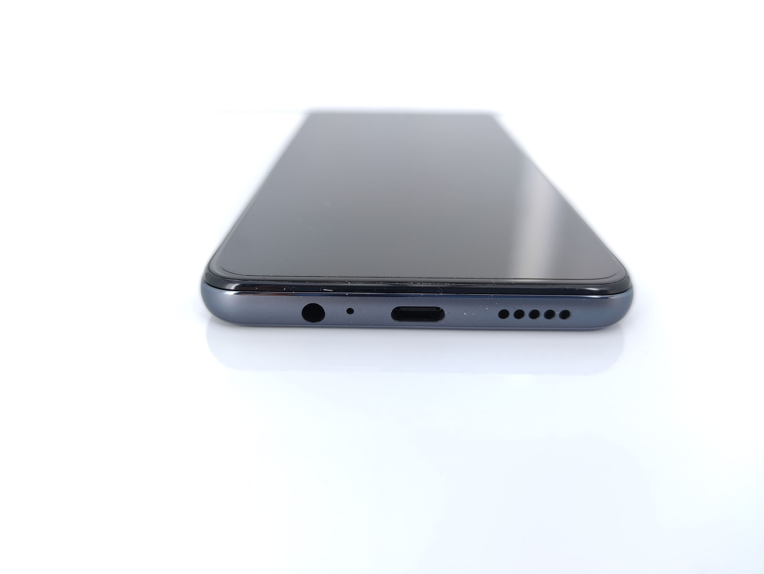 En bas on retrouve une sortie audio jack, un port usb type C et un des deux haut-parleurs du téléphone.