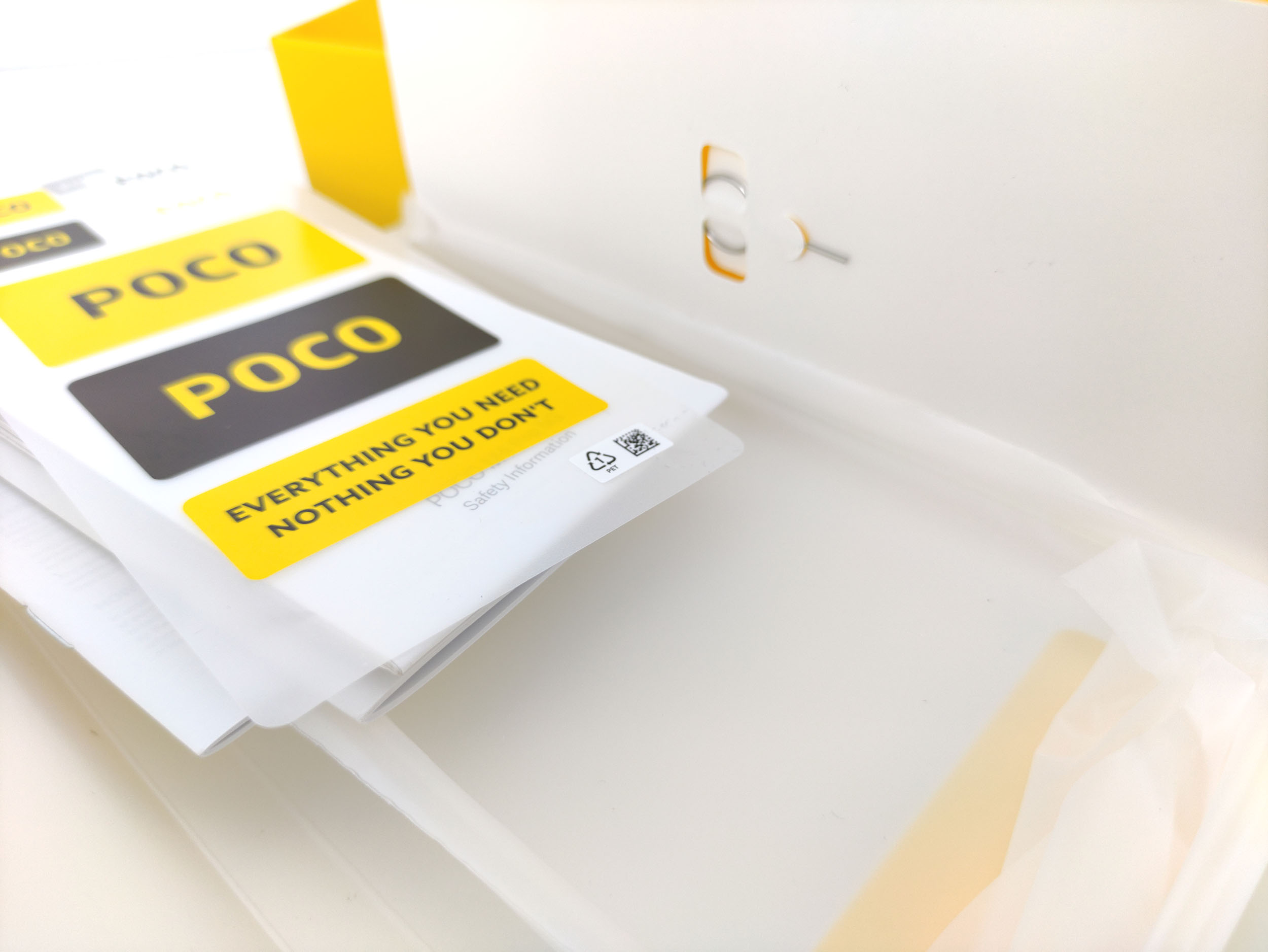 La boite du Poco contient le téléphone, une protection transparente, des autocollants Poco, des manuels, une aiguille pour tiroir sim, un cable USB et un chargeur. Le contenu de la boite chez Poco est très standardisé, il n'en faut pas plus de toute façon.