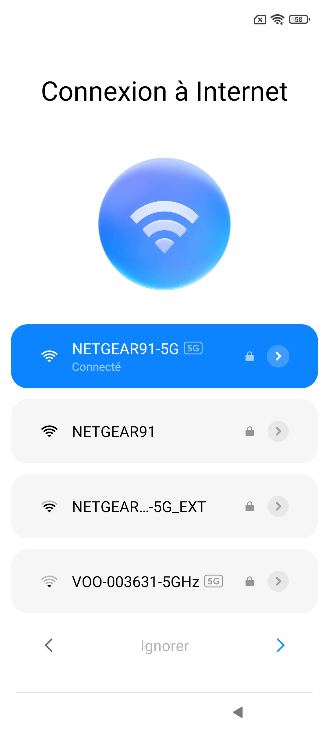 Pour tester la vitesse en Wifi, je me connecte à mon routeur en 2.4Ghz et 5Ghz (si disponible) et j'utilise l'application de Ookla pour mesurer la vitesse.