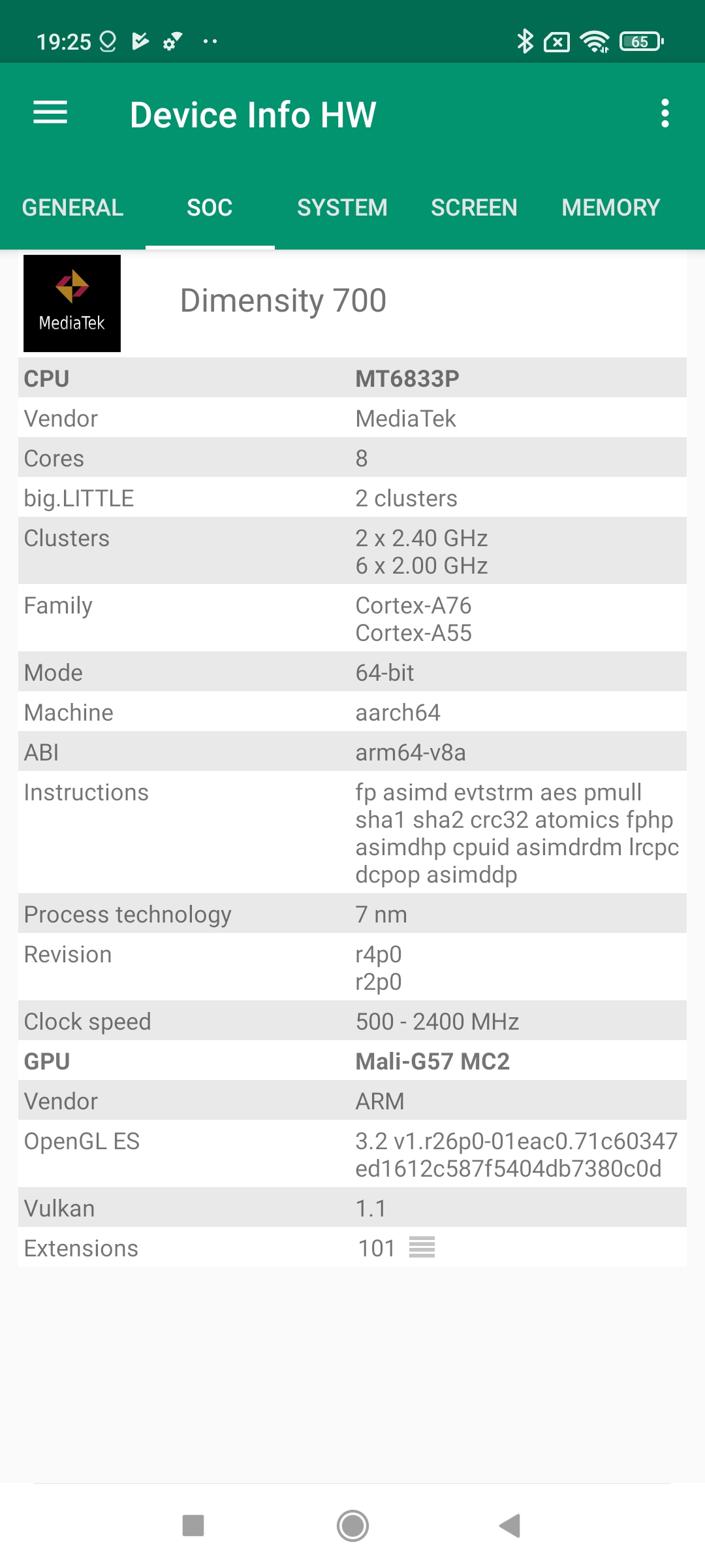 Ce Poco devrait en principe utiliser un CPU Mediatek Dimensity 810 et pas 700 mais pour une raison que j'ignore, le mien tournait sur un Dimensity 700 alors que le 810 devrait être encore plus puissant. Mon test portera donc sur le 700.