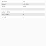 Pour tester la capacité d'un téléphone à bien capter le réseau j'effectue des mesures à proximité de mon routeur et ensuite à distance (et toujours dans les mêmes conditions). J'obtiens ainsi une moyenne en dBm où une valeur de -90 dBm indique une moins bonne performance qu'une valeur à -30 dBm.Signal Wifi: