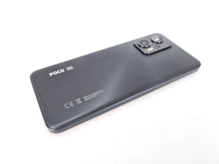 Le dos est uniforme et reprend un style de gris anthracite déjà vu sur le Redmi Note 10, je pense que l'arrière est principalement composé de plastique, c'est en tout cas la sensation que j'en retire au toucher. Les bords ont par contre un effet métallique et sont froids au toucher. Poco a abandonné son gros bloc photo horizontal pour reprendre un design plus classique. Cela n'affecte pas la qualité du téléphone mais l'utilisation d'un pavé horizontal permettait de mieux équilibrer le téléphone lorsqu'il était posé sur le dos.