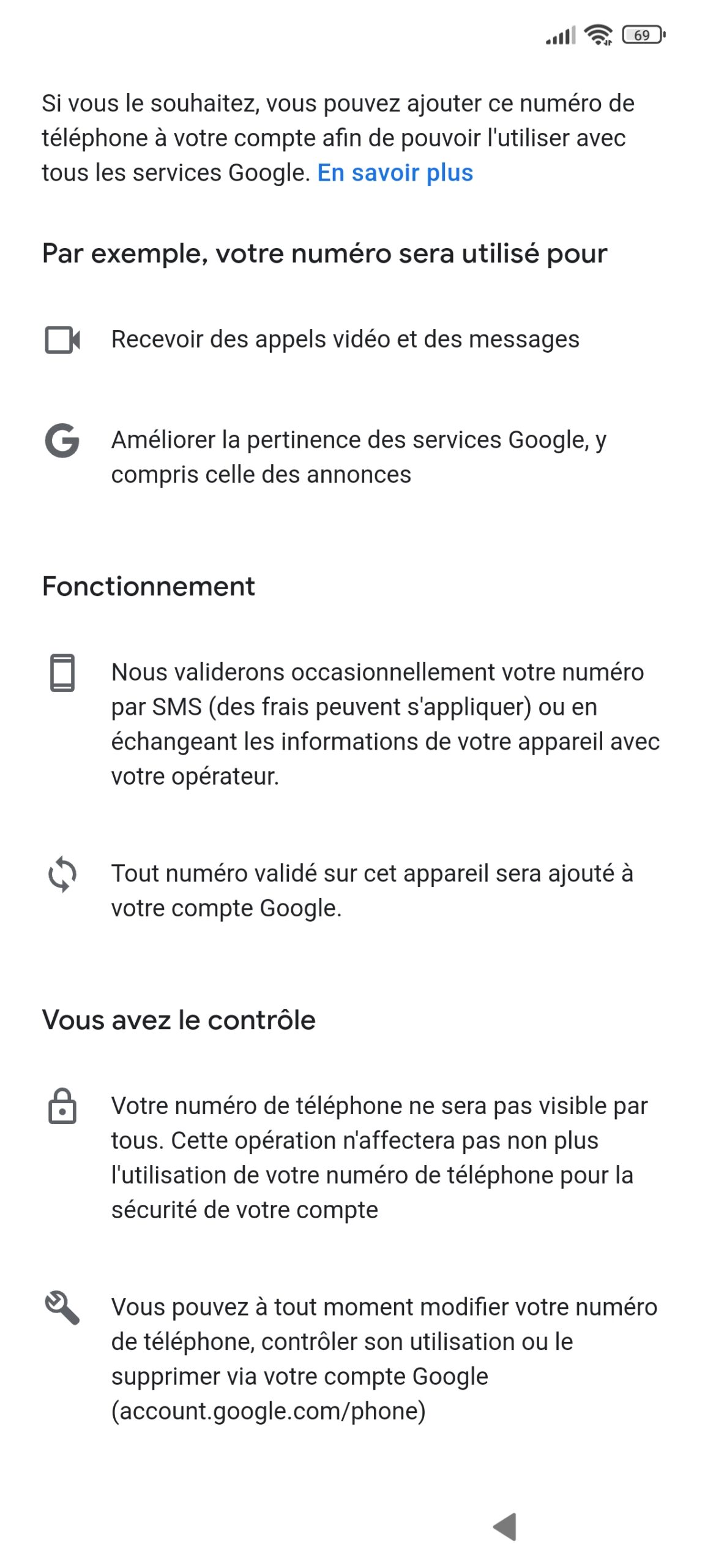 En fouillant dans les caractéristiques du téléphone, j'ai noté les points suivants: