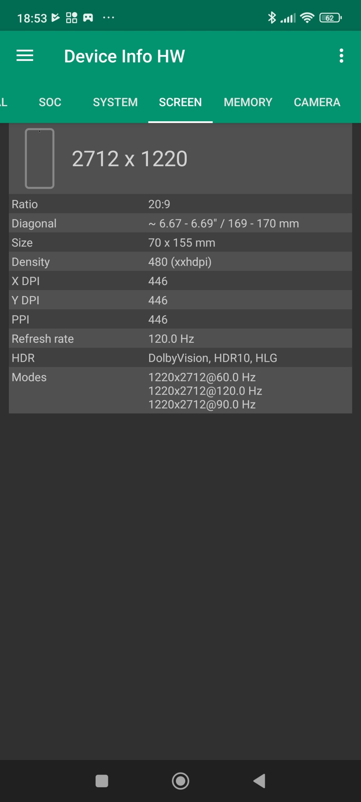 - l'écran a une résolution inhabituelle de 1220x2712 et il supporte les fréquences de 60, 90 et 120hz
