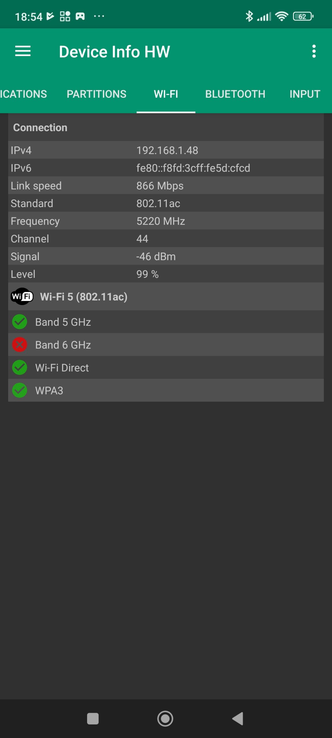 J'ai mesuré un signal minimum de -15 dBm à proximité du routeur et -61 dBm à distance. Le POCO X6 a une bonne sensibilité au wifi et ce signal reste assez stable car sur les 206 mesures que j'ai effectuées, le signal ne s'est jamais écarte plus de 1 dBm!