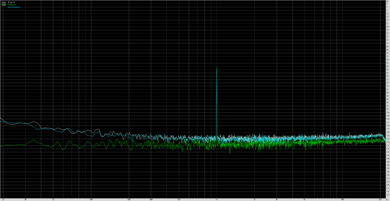 Ce test vise à tester la capacité de l’appareil à reproduire correctement toutes les fréquences. La ligne blanche au milieu du graphique est la situation idéale et les autres couleurs proviennent des tests sur différents téléphones. Une déviation de la ligne de référence indique un écart par rapport à la situation idéale. Pour voir un bon son sur toutes les fréquences il faut donc s’approcher le plus possible de la ligne de référence.