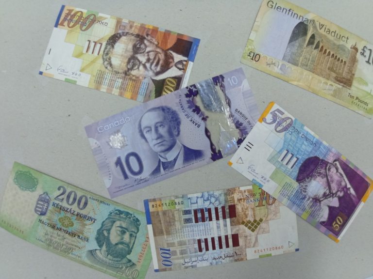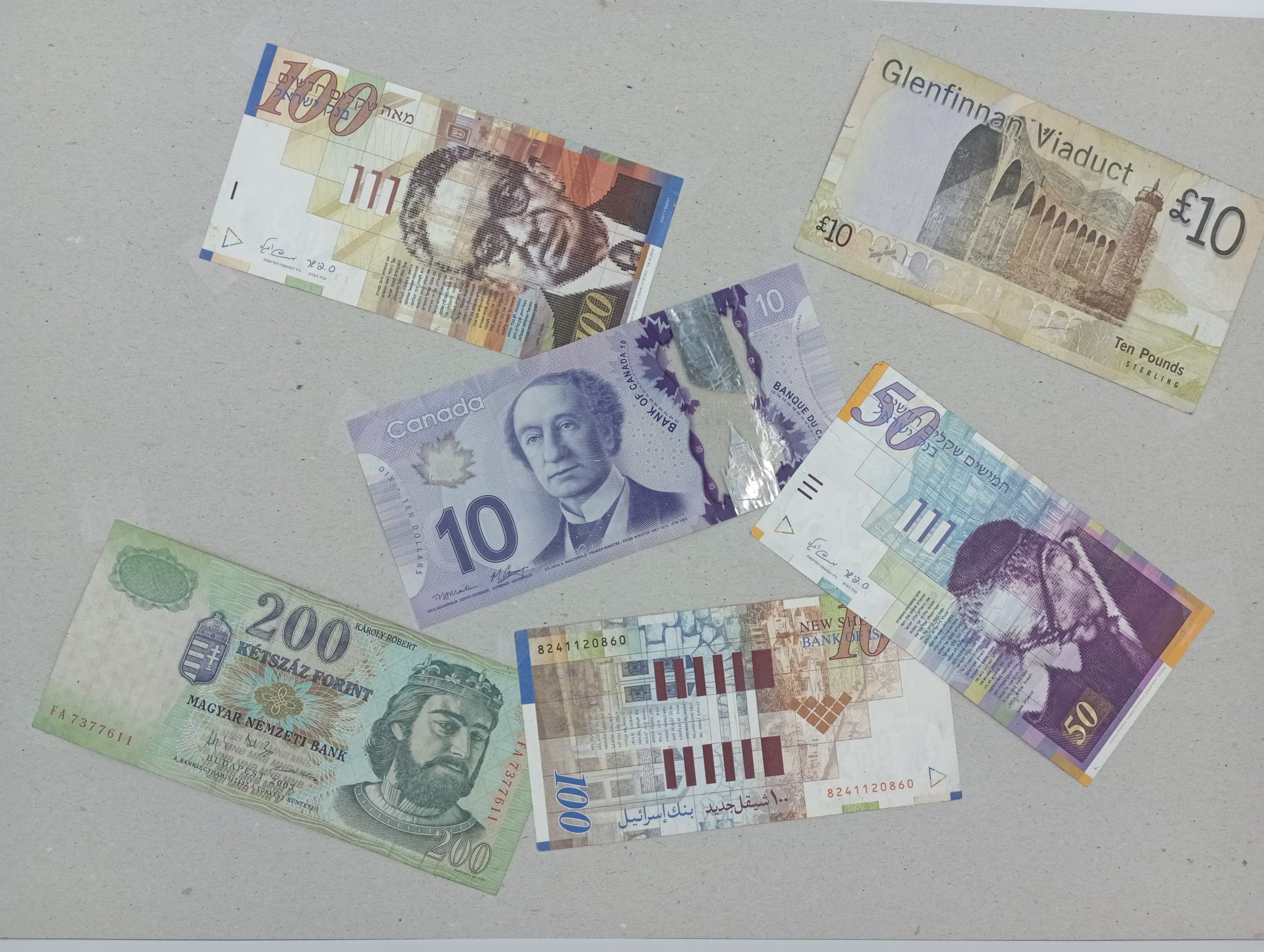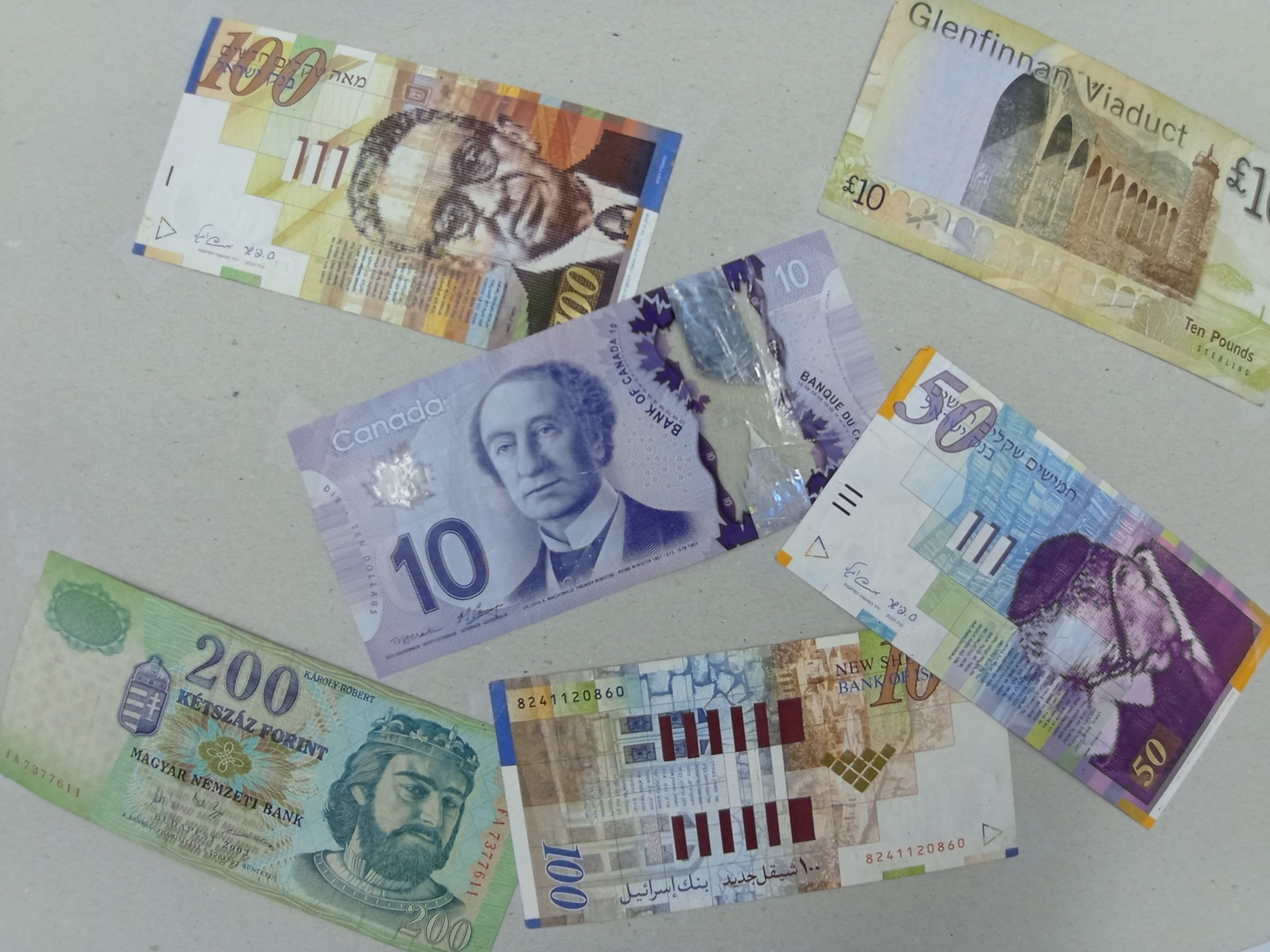 Si vous comparez cette photo à la précédente, vous allez vite percevoir les différences. La netteté est nettement moins bonne et se dégrade également plus fortement en périphérie. Les traits du visage du billet canadien sont déjà flou, les détails du billet hongrois se perdent dans une soupe de pixels. Ce genre de capteur ne produit généralement pas de très bonnes photos, je ne m'attendais pas à autre chose. Les couleurs par contre sont un peu plus saturées que ce que j'ai pu voir sur d'autres capteurs de ce genre.