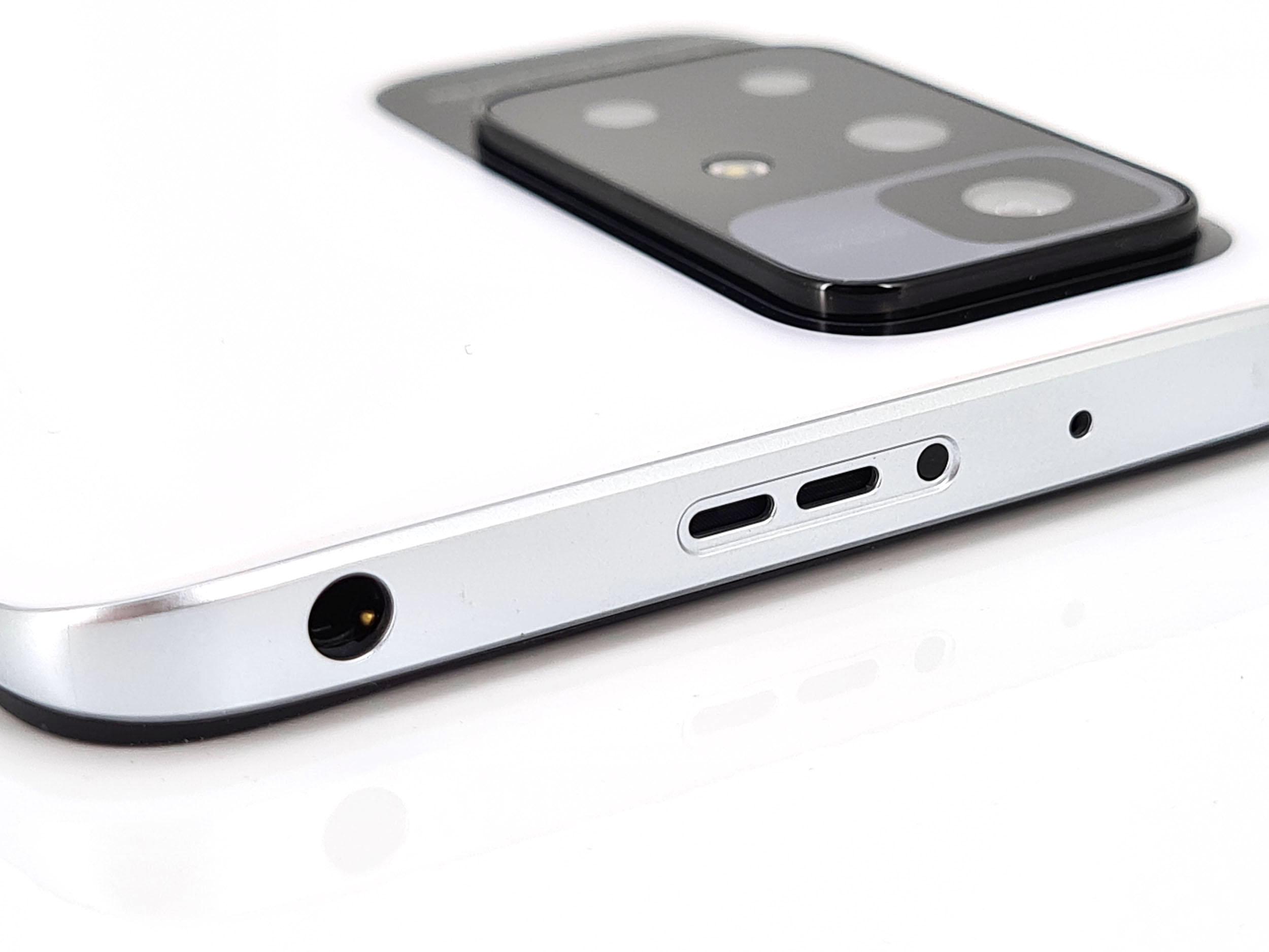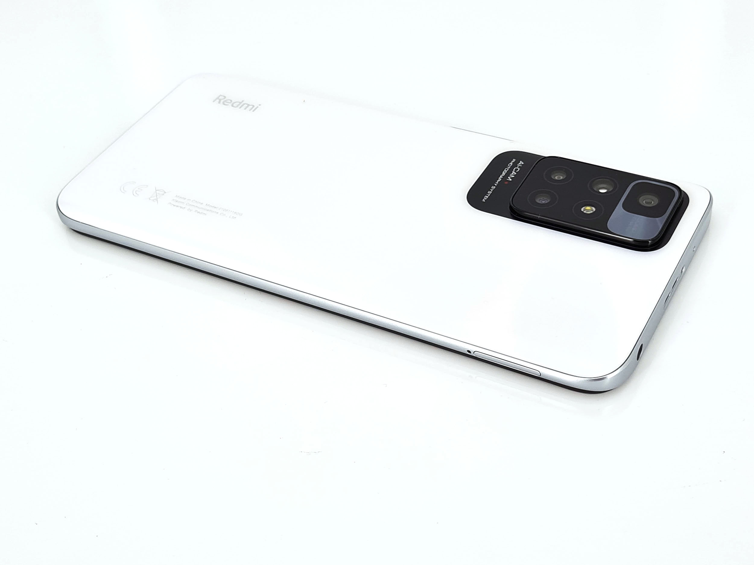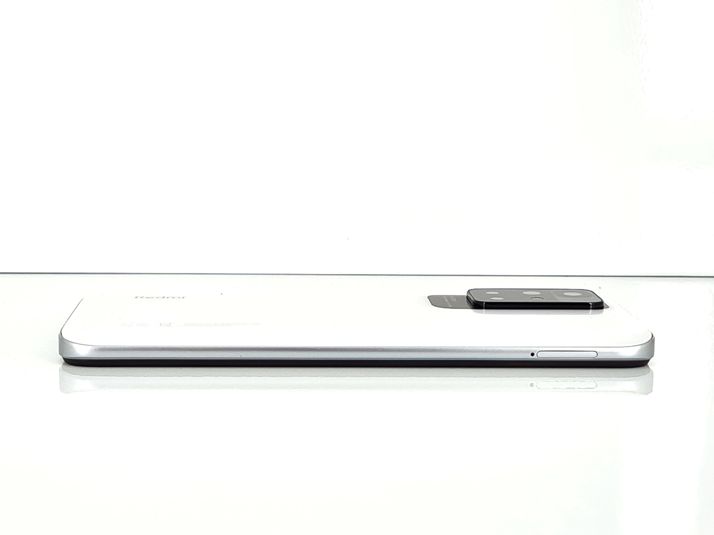 J'avais été un peu déçu par le niveau de finition de la génération précédente car l'utilisation du plastique était trop prononcée et le dos du téléphone était tellement fin que je pouvais sentir les composants du téléphone en appuyant un peu. Le Redmi 10 fait un grand bon en avant au niveau des finitions, j'ai vraiment été surpris quand je l'ai eu en main la première fois. Le téléphone est toujours composé de plastique à l'arrière mais ce plastique a une allure plus solide. J'ai acheté la version blanc et le plastique du dos renvoie un effet nacré plutôt réussi. Il ne se déforme pas comme le modèle précédent et le contour à effet métallique lui donne un caractère plus premium.