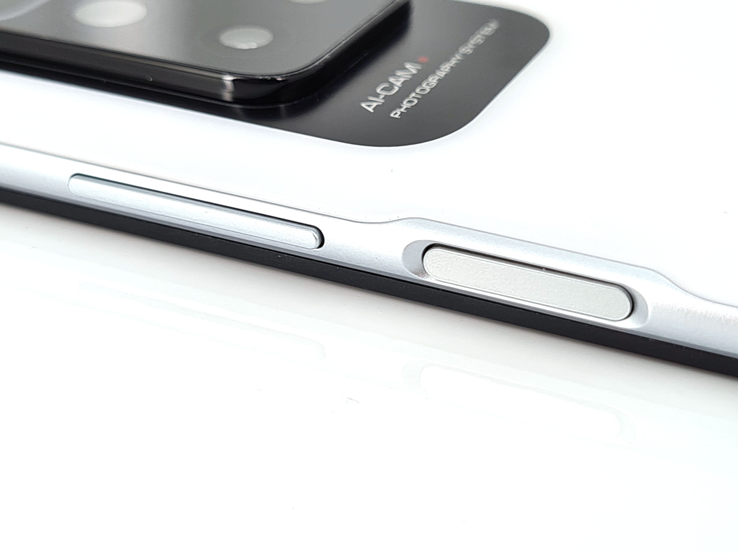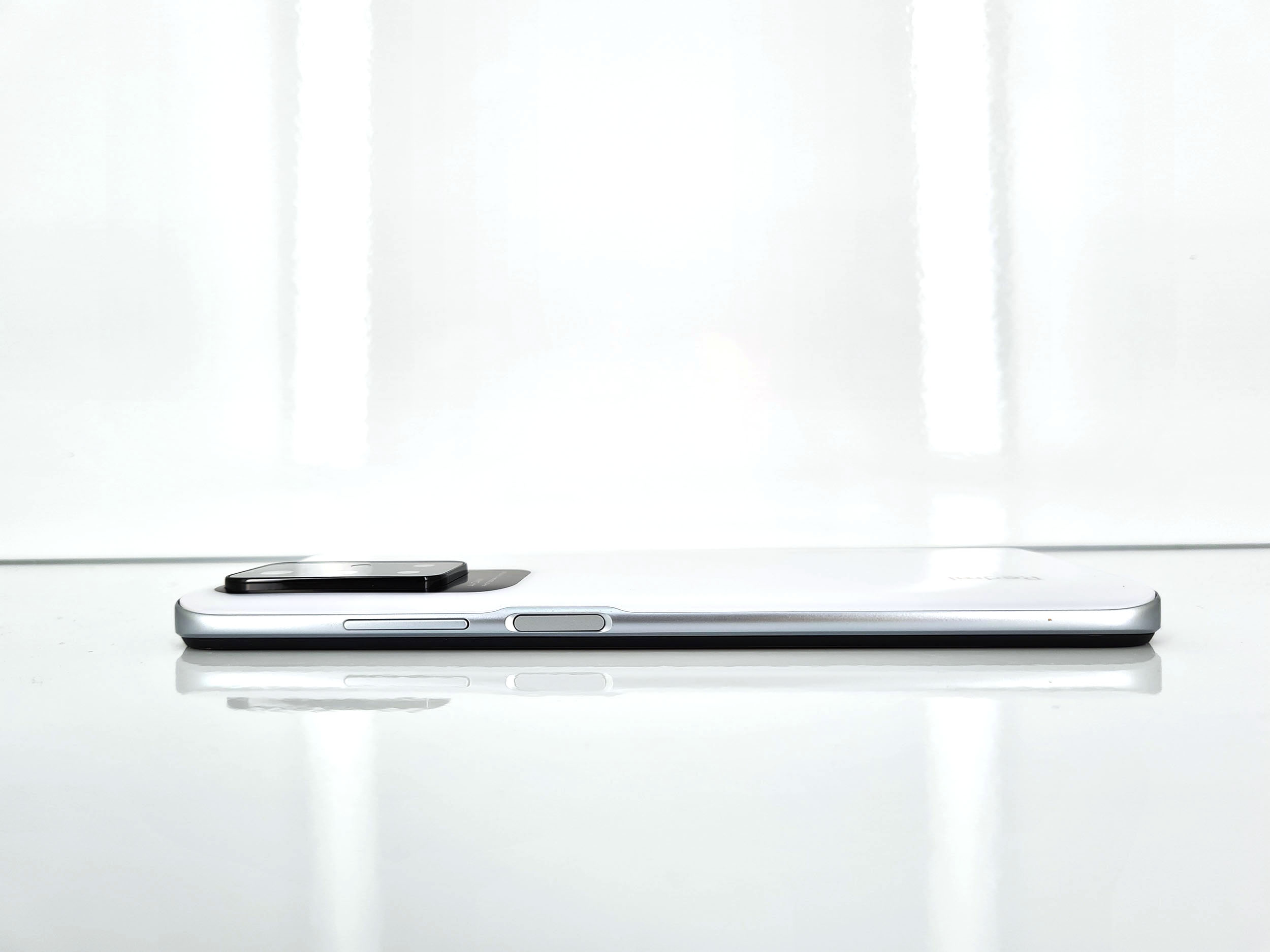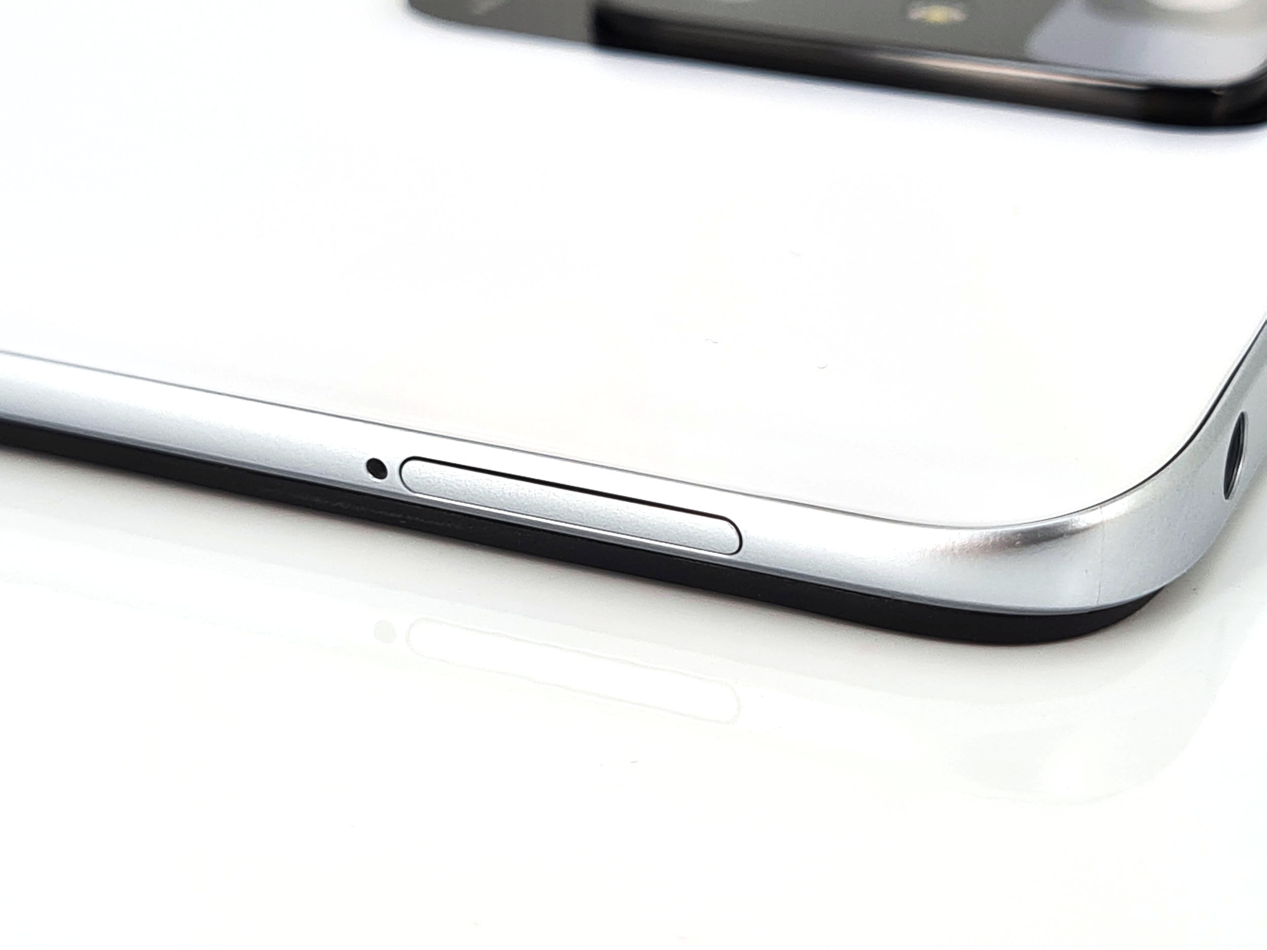 Le contour à effet métallique donne un aspect plus premium au téléphone, c'est assez rare dans cette gamme de prix, ce téléphone me fait penser au Poco F3 blanc que j'avais acheté plus tôt cette année. Au toucher l'effet entrée de gamme est palpable mais visuellement c'est très réussi.