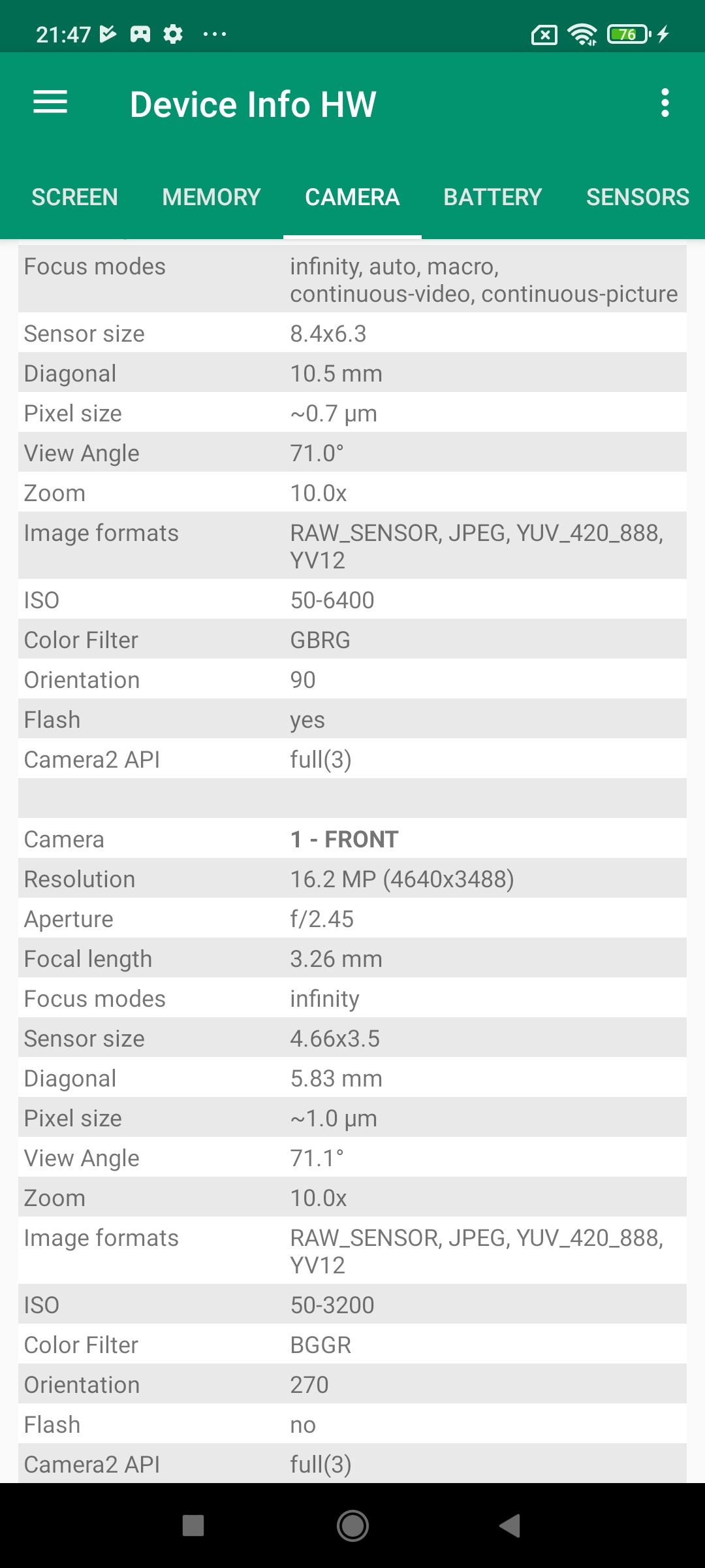 Capteur secondaire: Sony IMX 355 / 8 millions de pixels