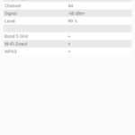 Pour tester la capacité d'un téléphone à bien capter le réseau j'effectue des mesures à proximité de mon routeur et ensuite à distance (et toujours dans les mêmes conditions). J'obtiens ainsi une moyenne en dBm où une valeur de -90 dBm indique une moins bonne performance qu'une valeur à -30 dBm.Signal Wifi: