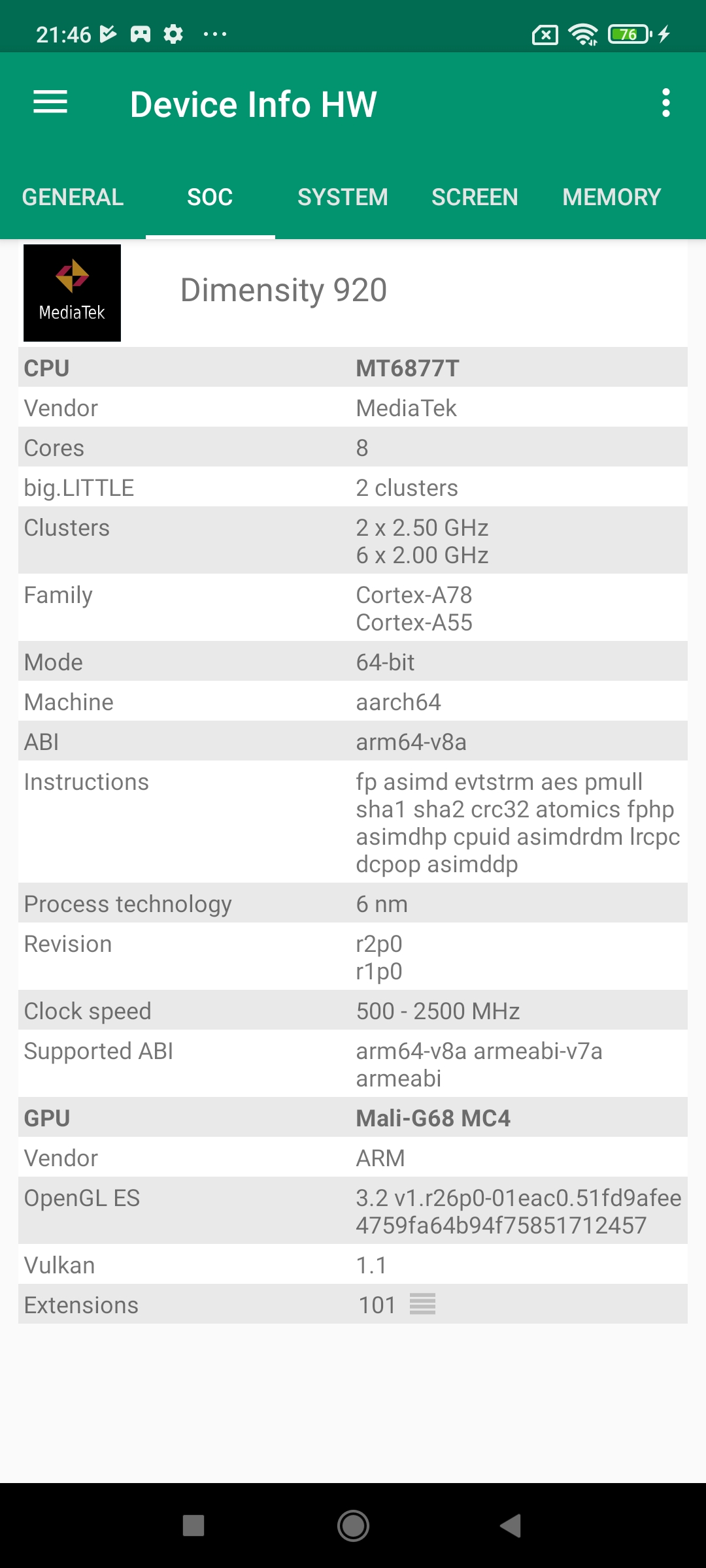 Ce téléphone s'appuie sur un CPU MediaTek Dimensity 920, je n'avais pas encore testé ce CPU sur un autre téléphone. C'est un CPU de milieu de gamme qui délivre des performances comparables à celle du Poco X4 Pro mais en consommant moins d'énergie.