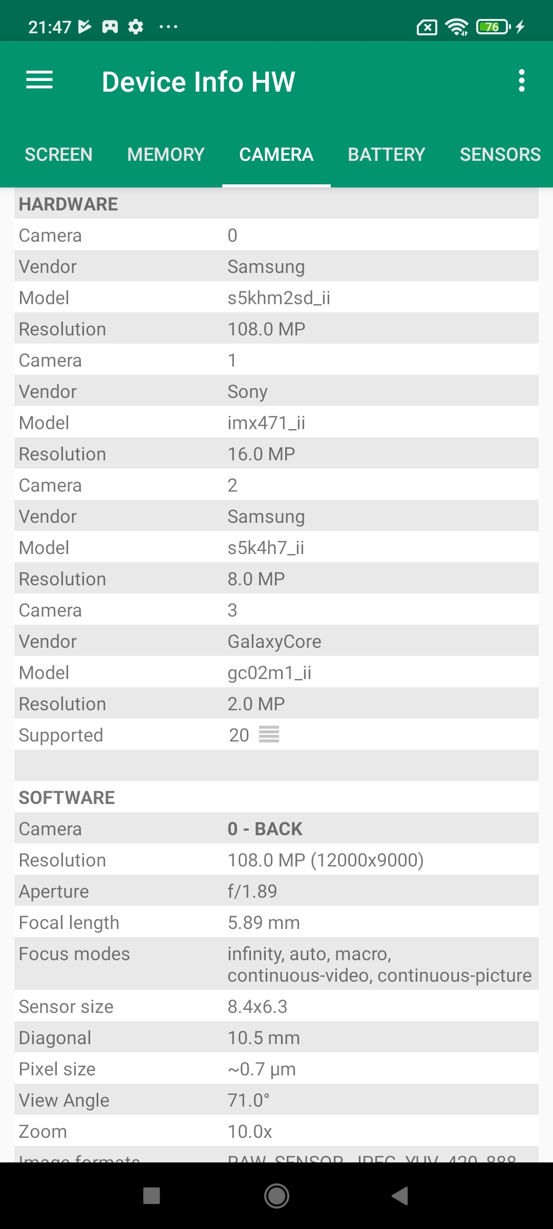 Le capteur principal de ce téléphone est un Samsung S5KHM2 de 108 millions de pixels que l'on retrouve aussi dans le Poco X4 Pro, le Redmi Note 10 Pro et le Redmi Note 11 Pro. A priori il n'y a aucune différence entre ces téléphones mais ce nouveau modèle utilise une variante de capteur, il s'agit de la version sd_ii là où les modèles précédents utilisaient la version "sunny". Ce n'est peut être juste qu'un libellé mais je verrais à l'utilisation si cette nouvelle version apporte quelque chose par rapport aux modèles précédents.Le capteur secondaire est un Sony IMX 355 ultra grand angle qui est également présent dans la plupart des téléphones récents chez Xiaomi/Redmi/Poco.