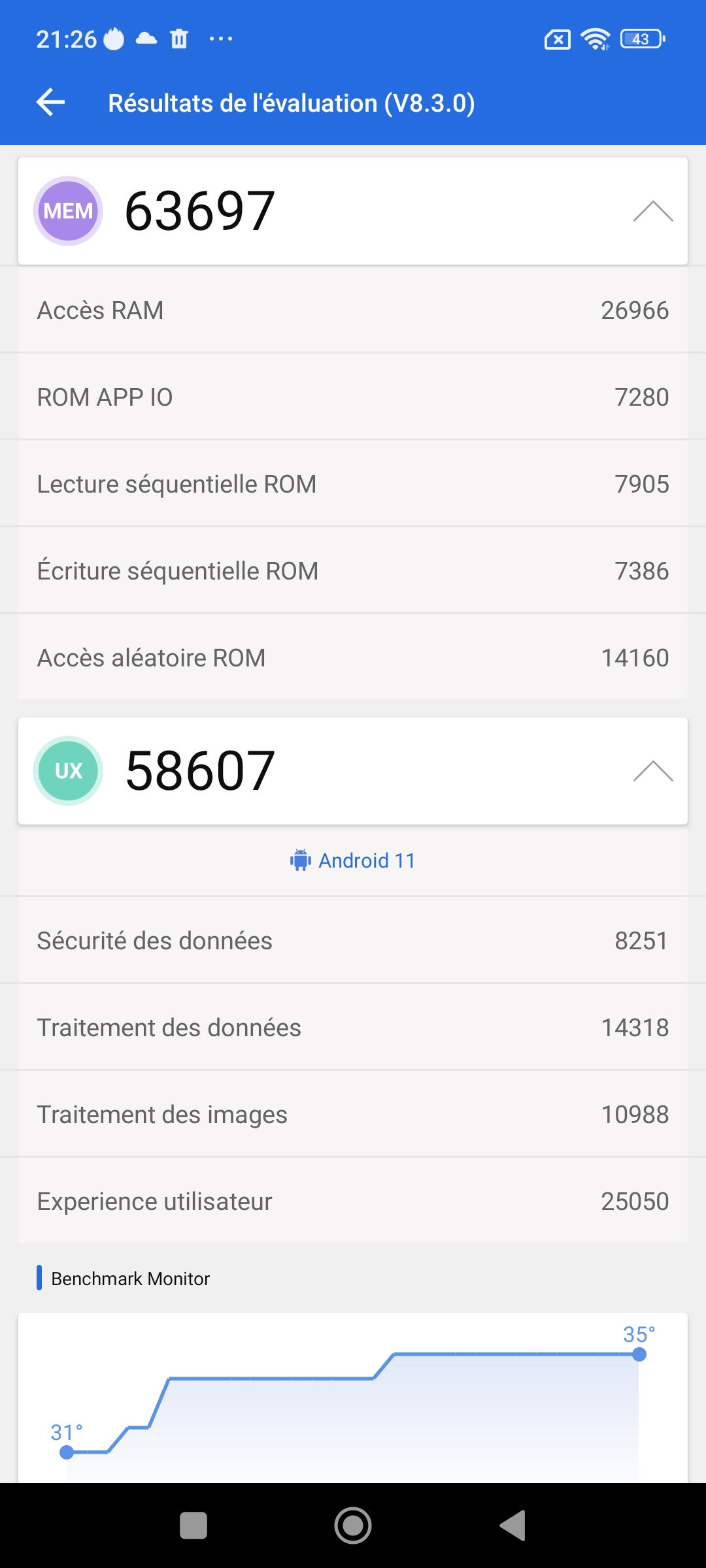 J'ai obtenu score de 371278 points avec Antutu et avec un score de ce niveau, ce Redmi Note 11 Pro+ se hisse en haut des téléphones du milieu de gamme. Les téléphones avec lesquels j'ai obtenu un meilleur score sont tous plus chers. Ce score vous permettra de jouer à n'importe quel jeu avec peut être la nécessité de diminuer un peu le niveau de graphisme sur les jeux les plus lourds mais ce n'est pas certain du tout.Gaming