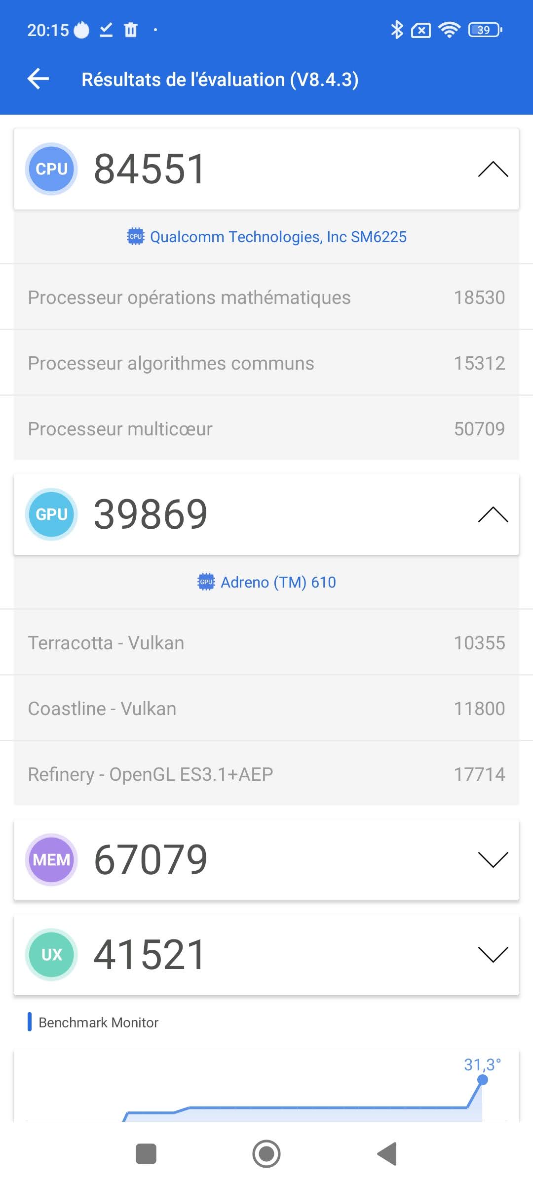 Comme je le décrivais dans le paragraphe précédent, ce téléphone est équipé d'un Snapdragon 680 et un Adreno 610. Ce sont des composants d'entrée de gamme qui ont tout à fait leur place dans ce genre de téléphone, il ne faut donc pas ici chercher la performance. Ce sont surtout les jeux qui seront impactés par ce choix car pour une utilisation au quotidien, ce niveau de performance est tout à fait suffisant.