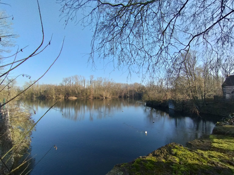 Ce test photo en extérieur a été effectué vers midi en janvier, le ciel était légèrement voilé mais la luminosité était abondante, ce sont donc de bonnes conditions pour prendre des photos. J'ai d'abord pris des photos en mode automatique sans aucune assistance et j'ai ensuite testé les modes AI, HDR et pro pour évaluer les différences. Cette première photo a été prise sans AI ou HDR. La première chose qui m'a frappée c'est la saturation du bleu, le bleu est très saturé et si j'utilise le mode AI, le résultat est encore plus prononcé. Esthétiquement parlant, je trouve ça assez joli mais cette surabondance de bleu ne reflète pas la réalité. La netteté en avant plan est correcte mais il y a une perte importante des détails dans le fond de l'image. Cela ne se voit pas sur un écran de téléphone. La lumière est chaude, cela correspond à la réalité mais ce capteur a une tendance à produire des images plus chaudes même quand la lumière ne s'y prête pas. La plage dynamique est dans la moyenne.