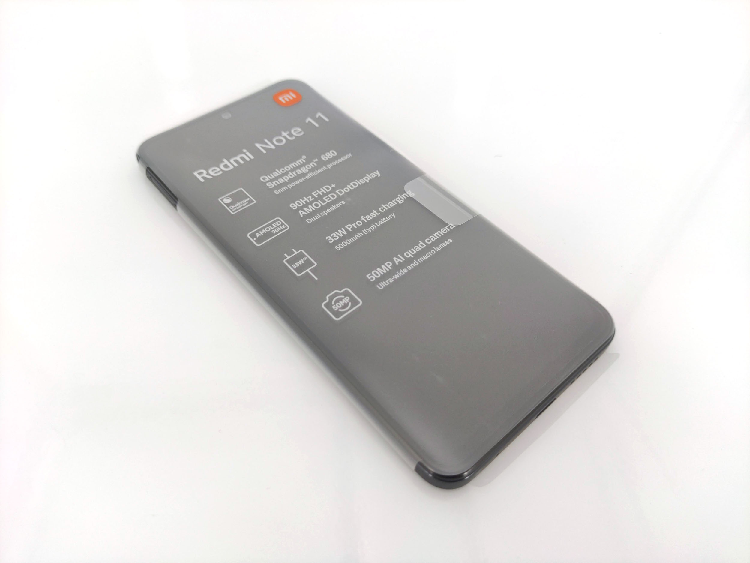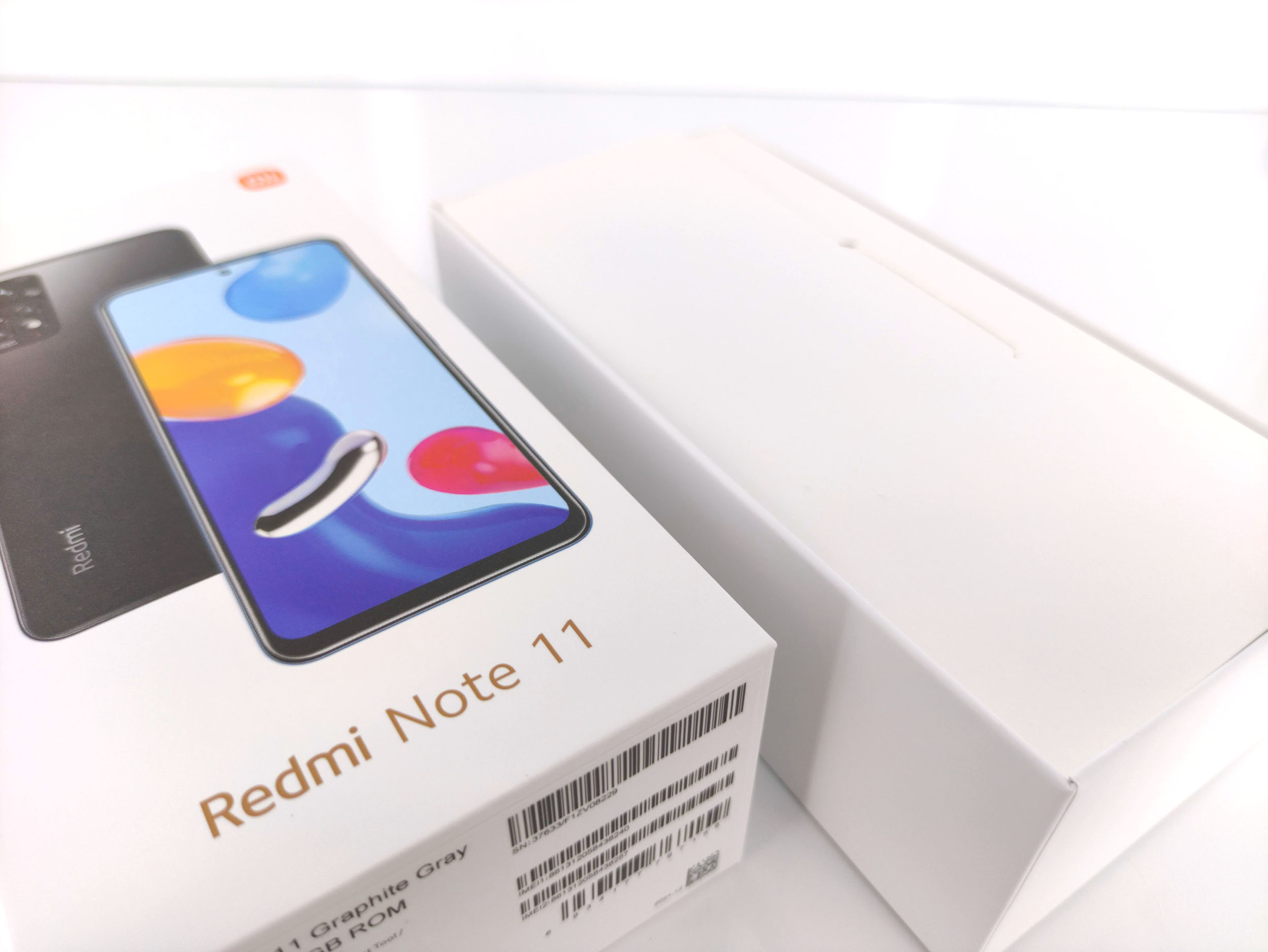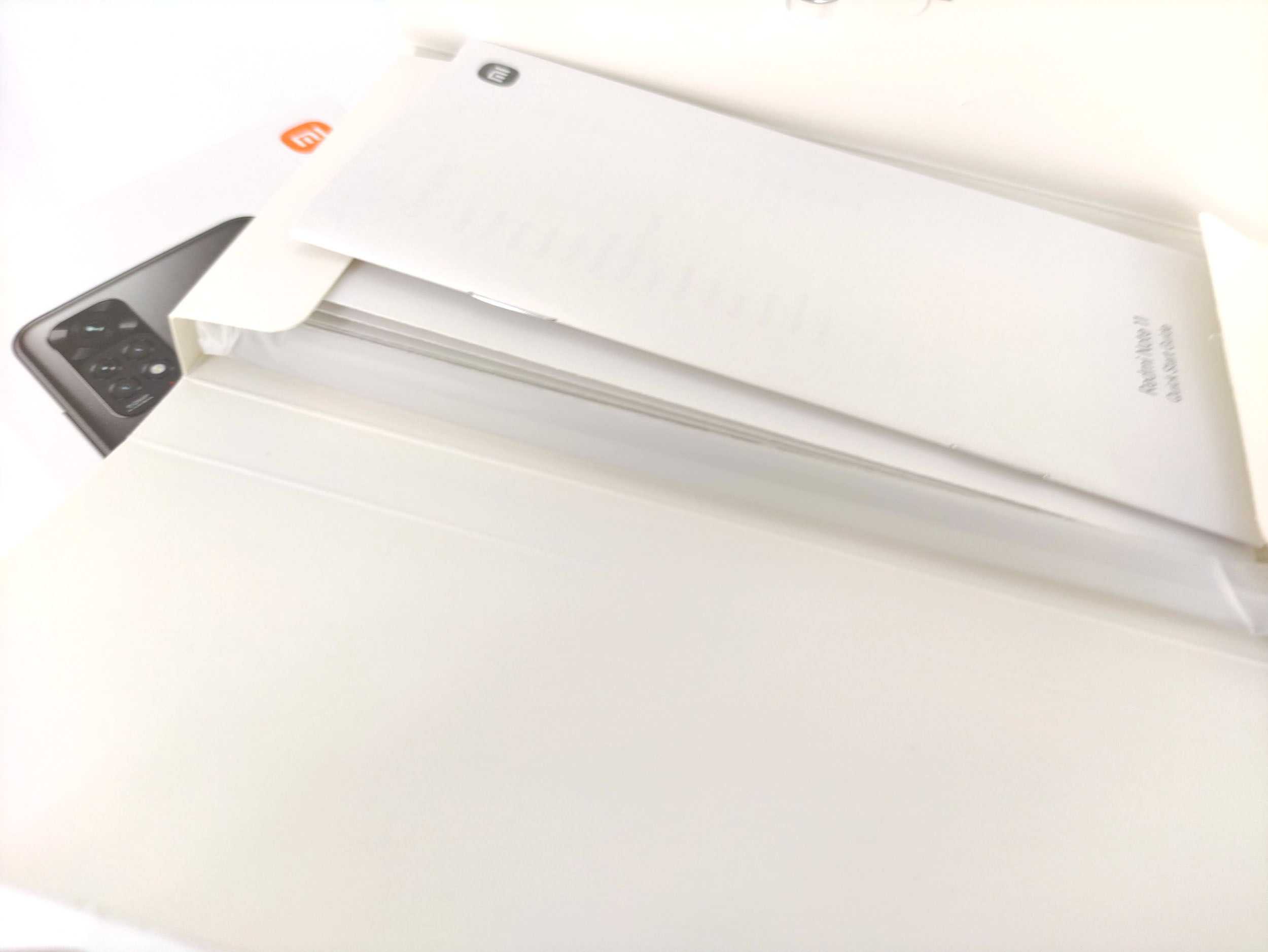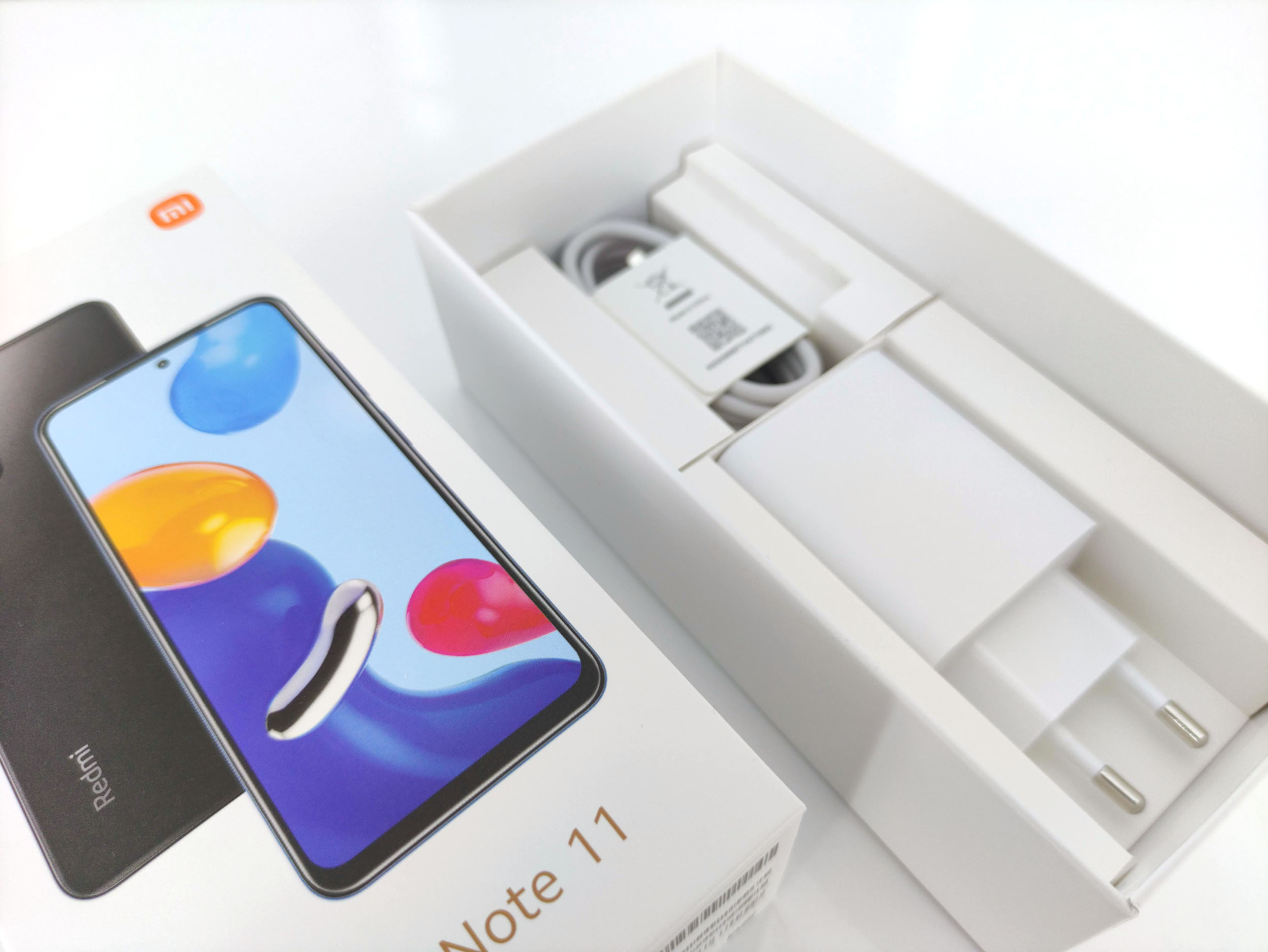 L'emballage du Xiaomi Redmi Note 11 suit la même tendance que tous les téléphones de la marque, les boites sont presques toutes de la même dimension et contiennent toutes la même chose. La boite contient le téléphone, un coque de protection en silicone transparent, un manuel, une aiguille pour le tiroir sim, un chargeur et un cable USB type C.