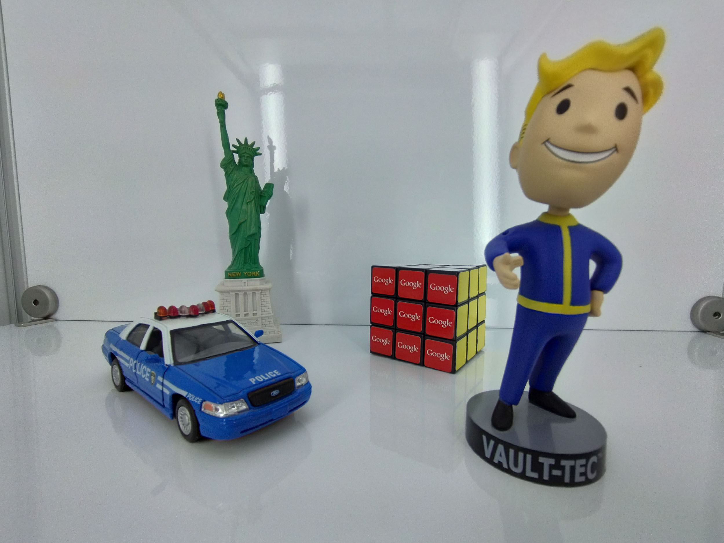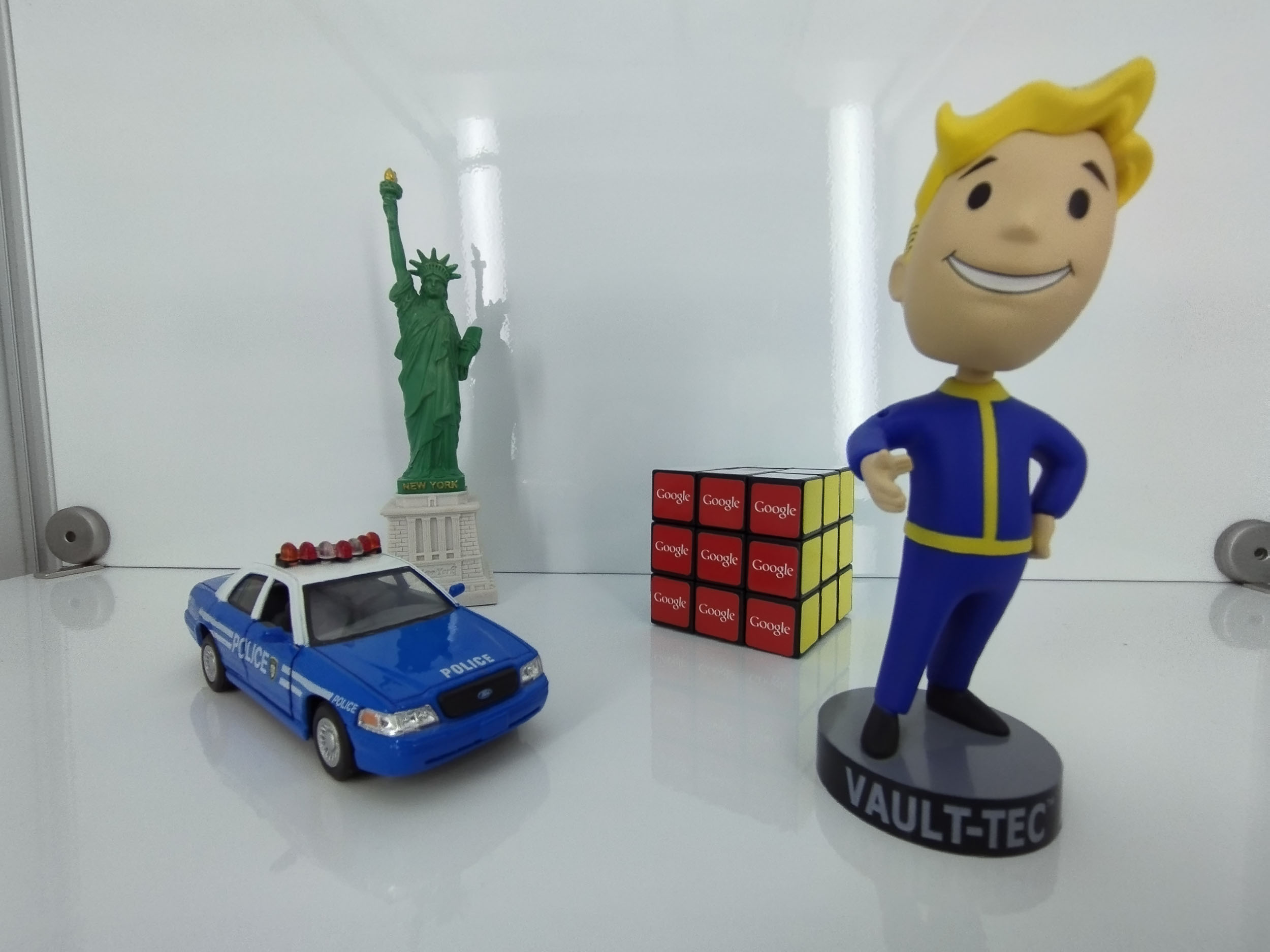 La plupart des appareils photos que je teste en studio produise des photos trop sombres et ce capteur Samsung n'échappe pas à la règle. Le problème peut être résolu en utilisant le mode manuel, il suffit parfois d'un ou deux crans d'exposition pour retrouver une bonne exposition. C'est à peu près le même problème sur tous les téléphones, je ne vais donc pas m'attarder sur ce point. La netteté au centre est par contre assez bonne, les lettres sur le cube sont parfaitement lisible à 100% et je ne vois pas de trace de traitement de la netteté. La colorimétrie est influencée par la sous-exposition, le test technique devrait révéler si celle-ci est correcte. Je vois un peu de bruit et des traces de compression sur les surfaces unies.