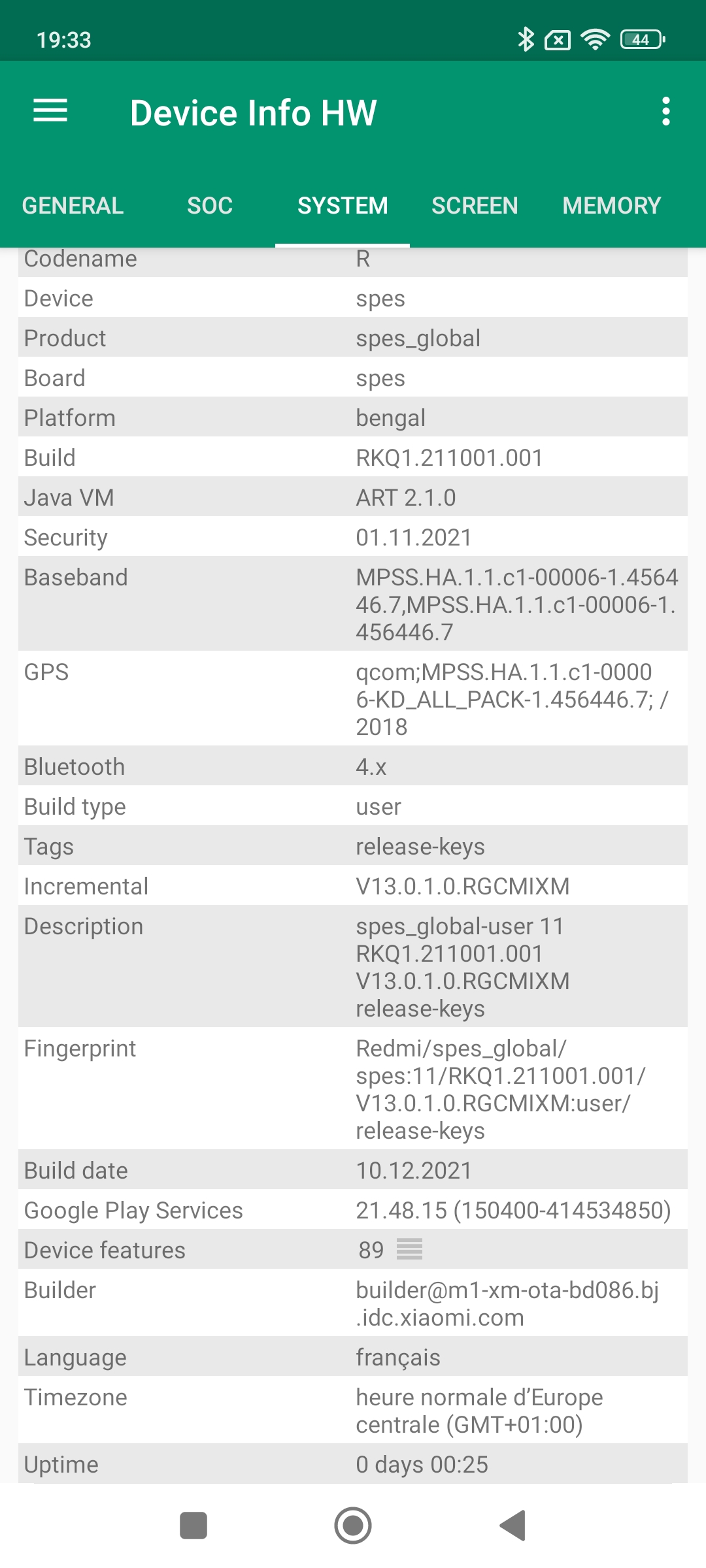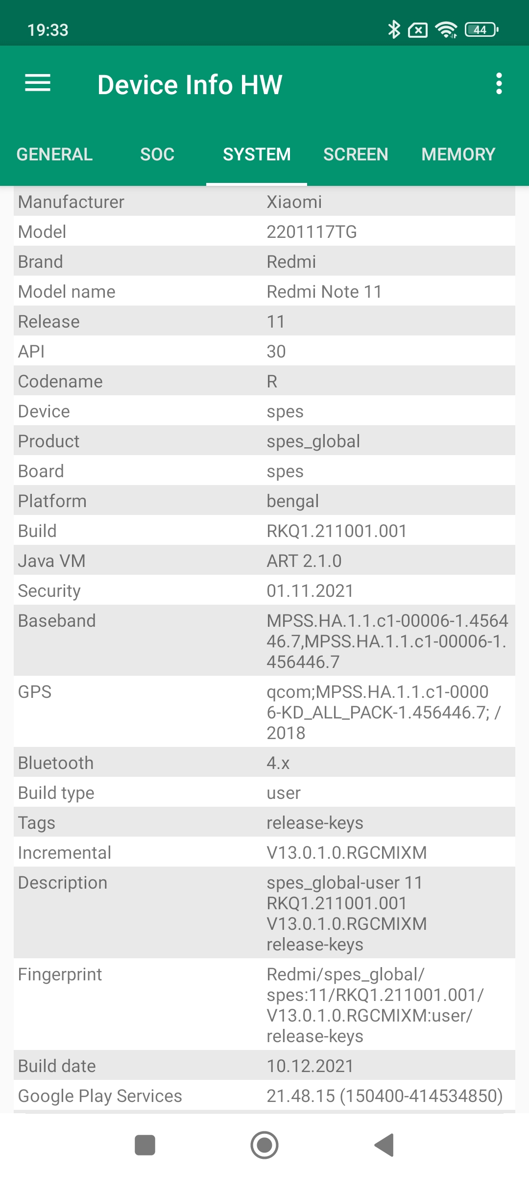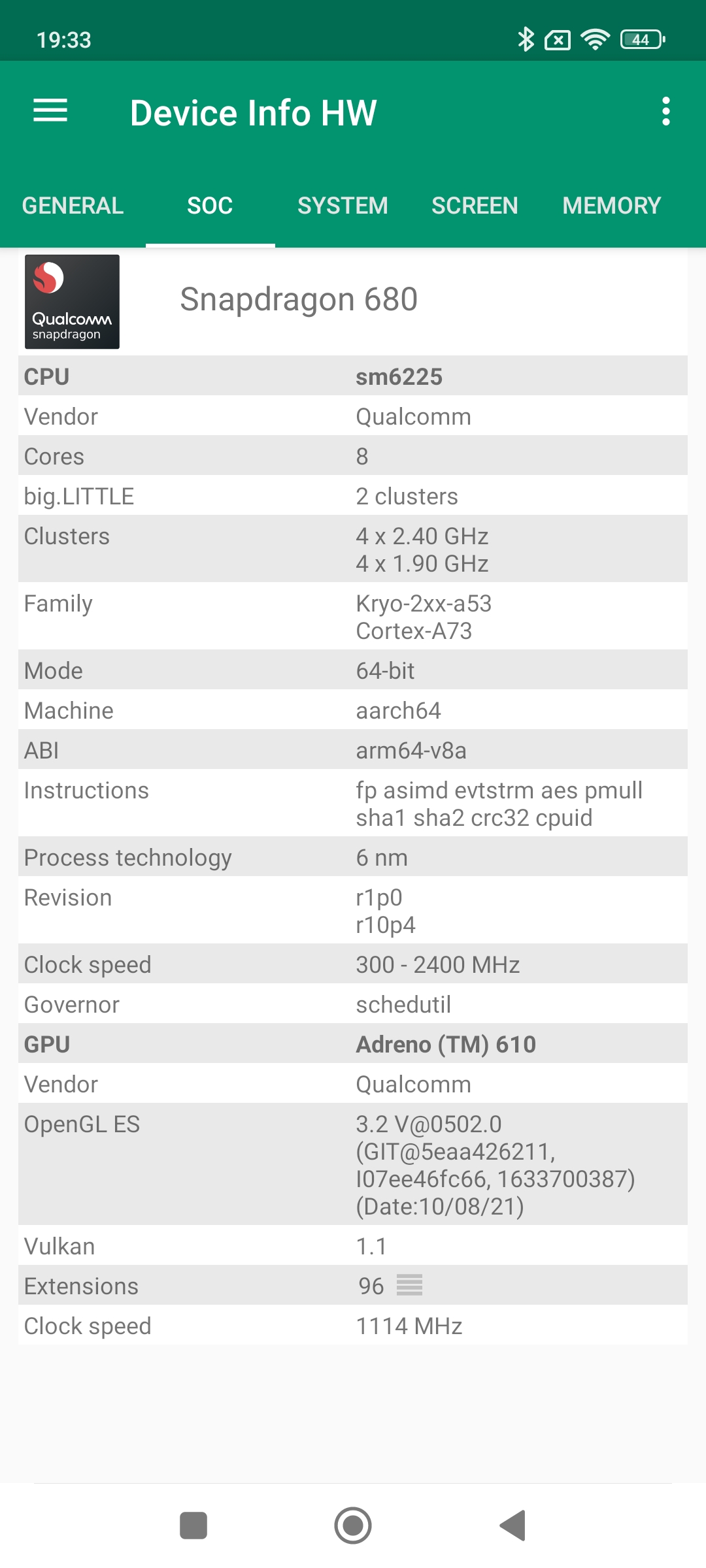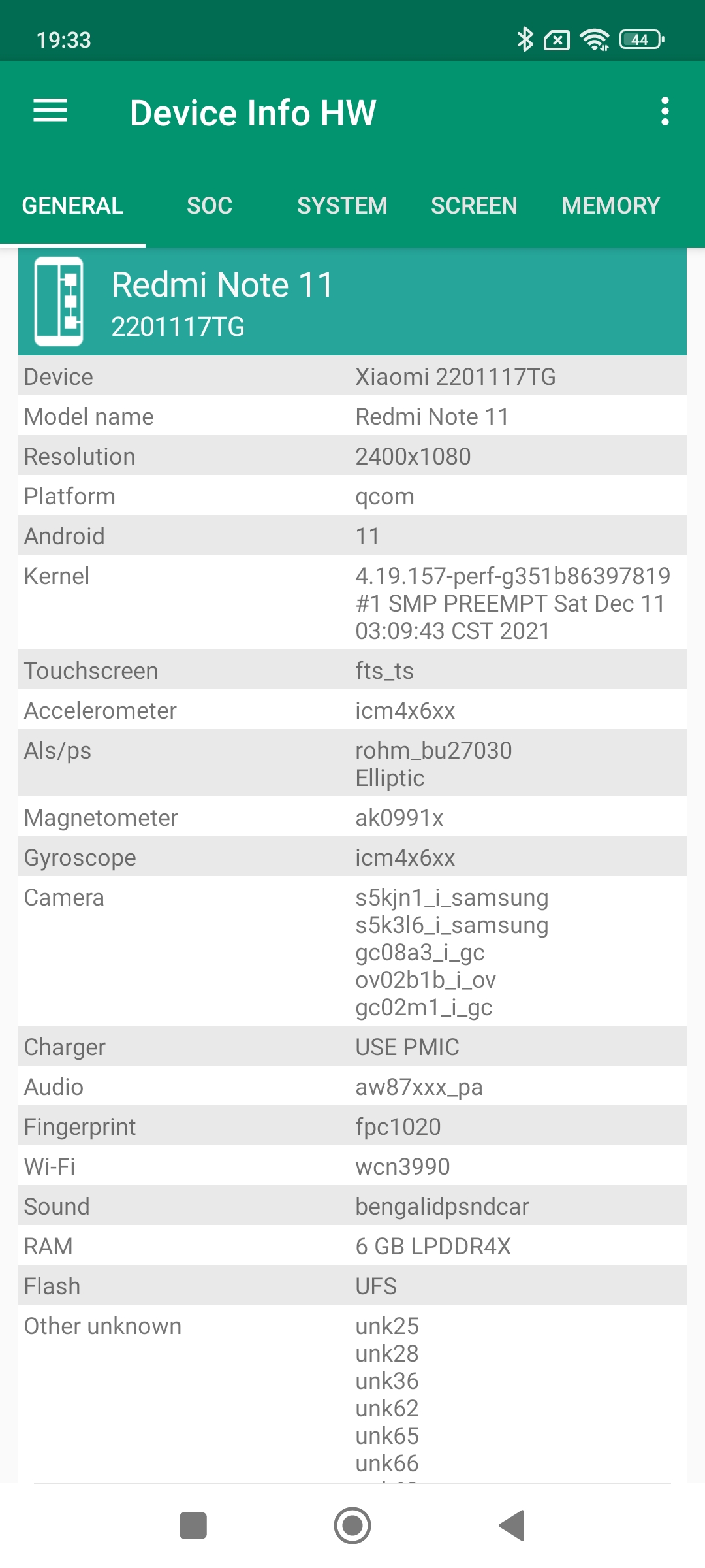 Les informations ci-dessous proviennent de l'application Device Info HW. L'application fournit des informations techniques détaillées sur le téléphone testé.Le Xiaomi Redmi Note 11 existe en plusieurs version et la première à avoir été commercialisée c'est la version chinoise. Les caractéristiques de la version chinoise sont très proches de celles du Poco M4 Pro, je m'attendais donc à retrouver les mêmes caractéristiques dans ce Redmi Note 11 en version globale mais ce n'est pas du tout le cas. Je crains d'ailleurs que ceci n'apporte un peu de confusion chez le potentiel acheteur car même si ces téléphones portent le même nom, ce sont des produits assez différents. La version que j'ai testée est donc un Xiaomi Redmi Note 11 en version globale qui tourne sous une architecture Qualcomm.