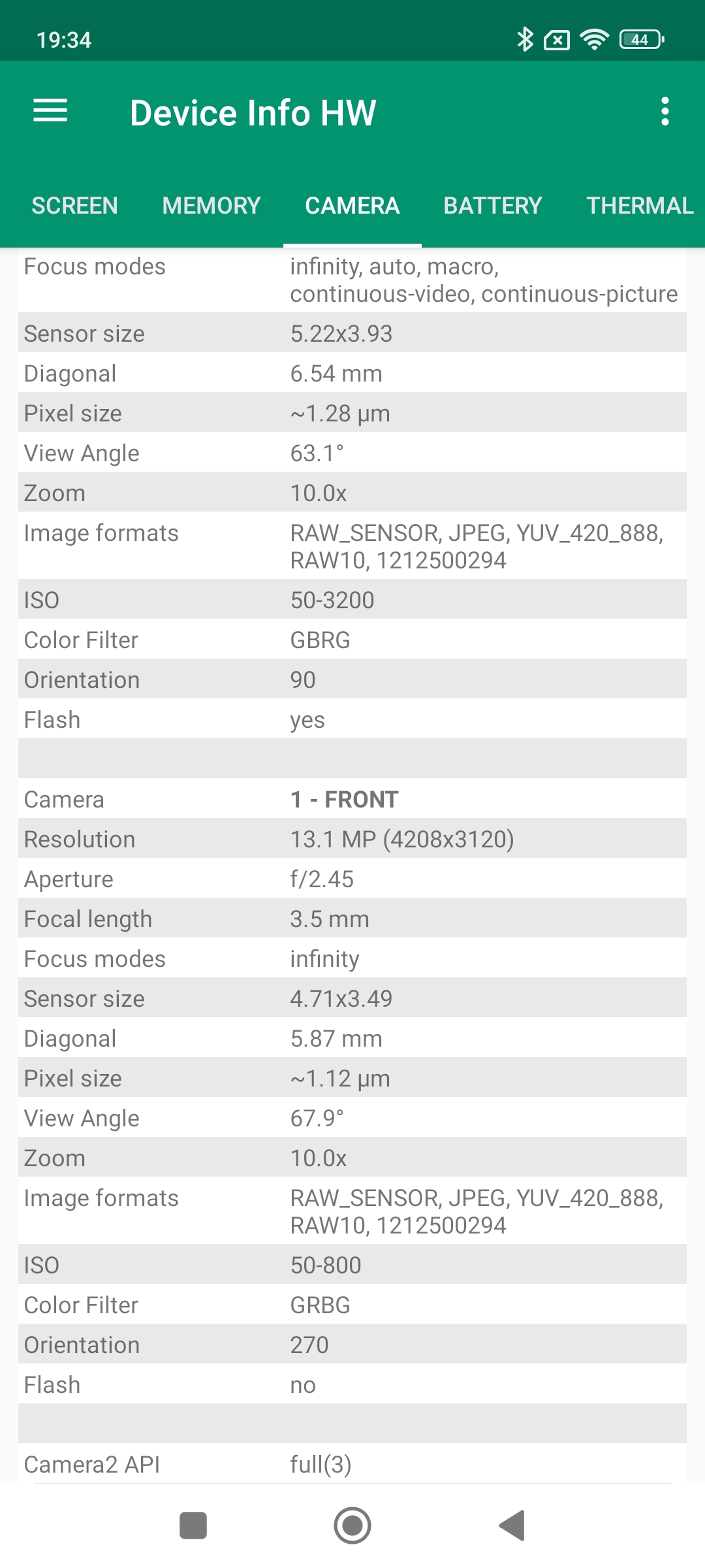 Capteur secondaire: Samsung S5K3l6