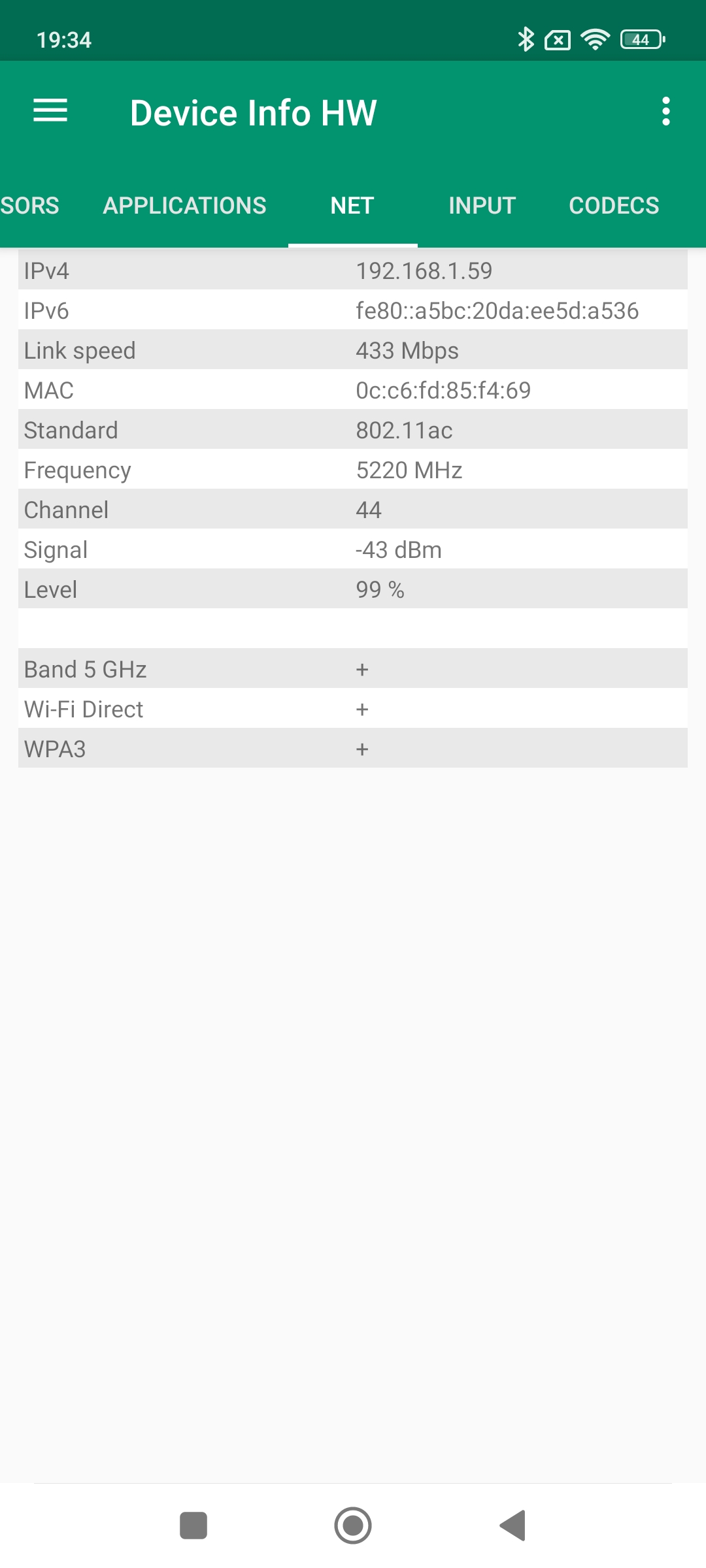 Ce téléphone est équipé d'une puce wifi que j'ai testé dans d'autres téléphones qui avaient livré de bons résultats, c'est également le cas pour ce téléphone. J'ai obtenu un signal moyen de -18 dBm à proximité du routeur et -63dBm à distance. J'ai également mesuré la stabilité du signal en posant le téléphone sur mon routeur et j'obtiens un niveau de signal inférieur à -10 dBm (c'est un excellent score) et le signal reste parfaitement stable.