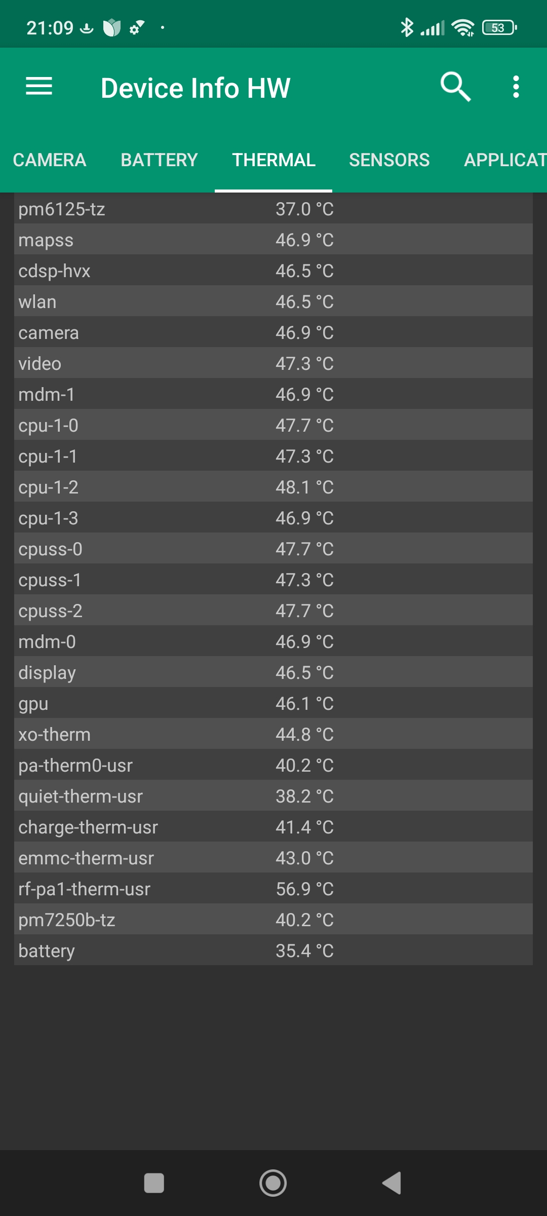 La température de la batterie n'a pas beaucoup augmenté pendant le test, elle est passée de 35°C à 38°C. La consommation totale n'a jamais vraiment dépassé les 5 watts alors que la somme de la consommation du CPU et GPU devrait dépasser ce seuil. Pourquoi? C'est un signe d'étranglement, le téléphone ne sait pas gérer les composants à plein régime, il y a donc une perte de performance qui ne permet pas de profiter de tous les composants au maximum en même temps.