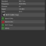 Pour tester la capacité d'un téléphone à bien capter le réseau j'effectue des mesures à proximité de mon routeur et ensuite à distance (et toujours dans les mêmes conditions). J'obtiens ainsi une moyenne en dBm où une valeur de -90 dBm indique une moins bonne performance qu'une valeur à -30 dBm.Signal Wifi: