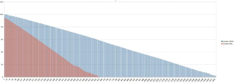 Pour tester l'autonomie des batteries j'ai développé une application qui mesure le niveau de batterie minute par minute jusqu'à ce que la batterie soit vide. Cette application consomme environ une dizaine de pourcent des ressources du téléphone et je fais un test avec une luminosité d'écran à 100% et un autre avec une luminosité à 50%. Ce test vise à reproduire une utilisation contemplative d'un téléphone (ex: surfer sur internet, lire des articles, passer du temps sur les réseaux sociaux). Ces résultats ne sont pas valables pour une utilisation intensive type gaming/streaming. [battery] Vitesse de charge