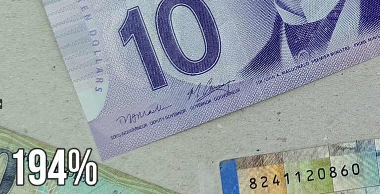 Je dis toujours que le nombre de pixels n'est pas vraiment important pour la qualité de la photo mais il peut par contre apporter un avantage lorsque l'on zoome. C'est ce que je voulais montrer avec ces photos. Le niveau de détail pour un agrandissement de ce type est encore vraiment bon. Au milieu avec le billet canadien, les textes et la texture sont parfaitement lisibles. En périphérie il y a une légère perte de détail mais le niveau de détail reste tout à fait acceptable surtout pour un zoom à 194%.