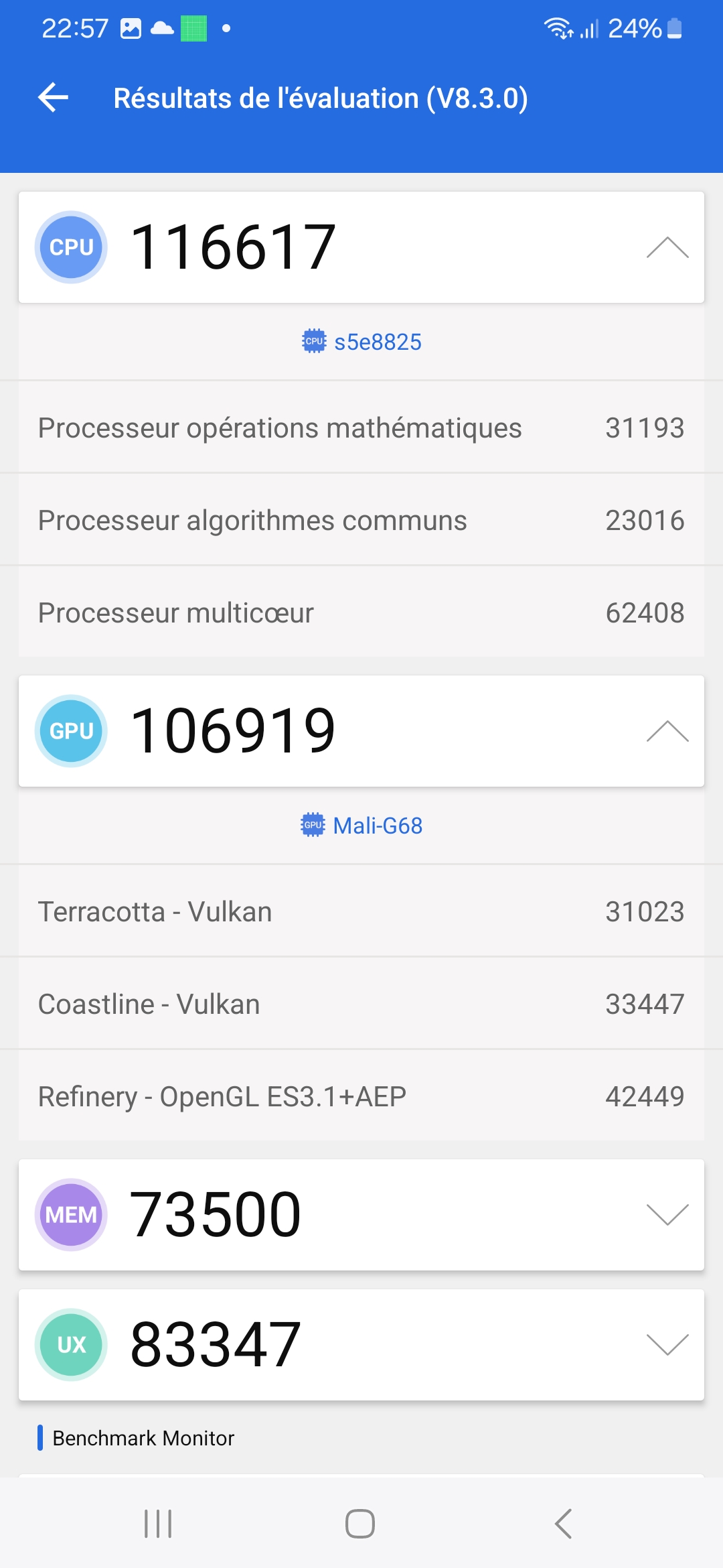 Pour la partie graphique, ce téléphone est équipé d'un GPU de type Mali-G68 que l'on retrouve aussi dans sur le A33 ou A54, je l'avais déjà testé aussi sur le Redmi Note 11 Pro Plus sorti en octobre 2021. Ce n'est donc pas un GPU de dernière génération mais ce n'est en soi pas un gros problème pour monsieur et madame tout le monde.