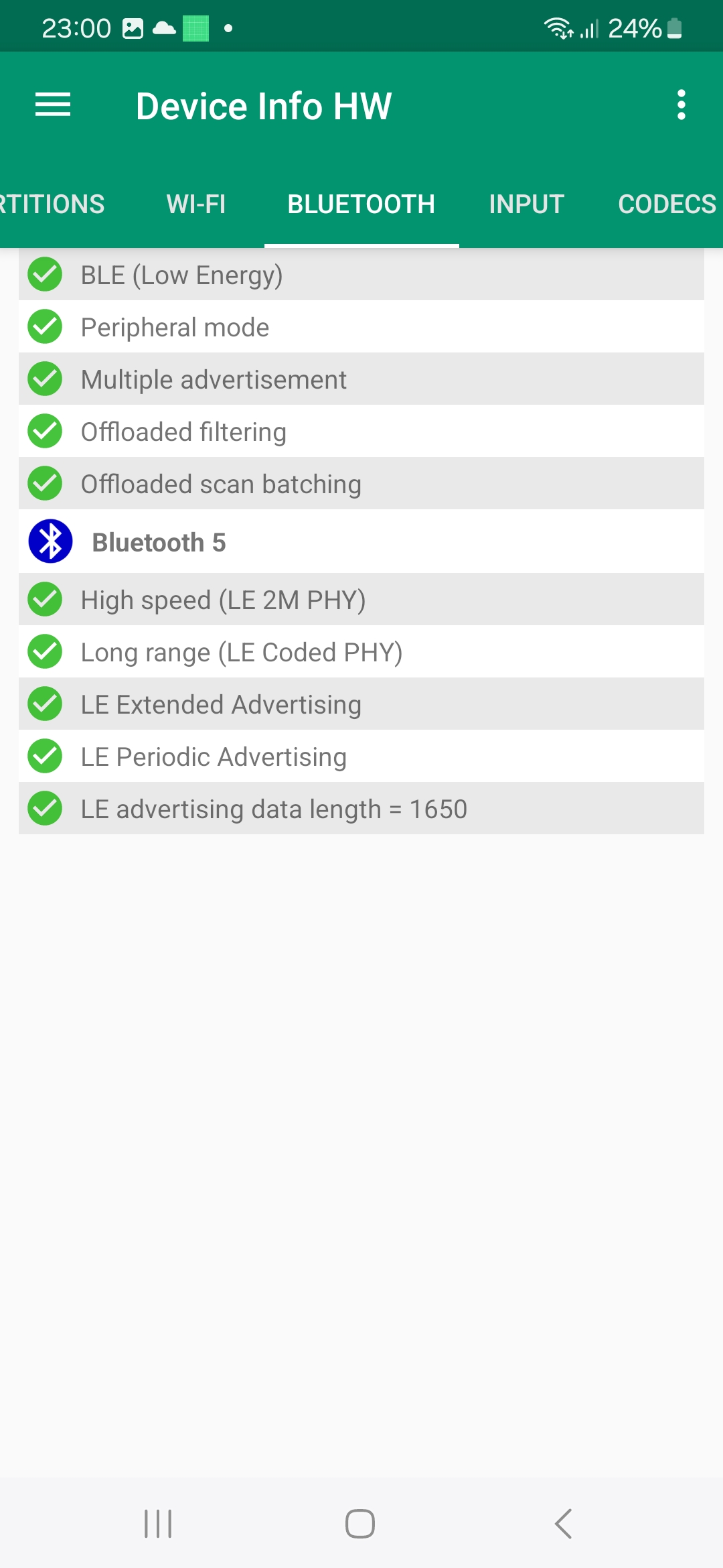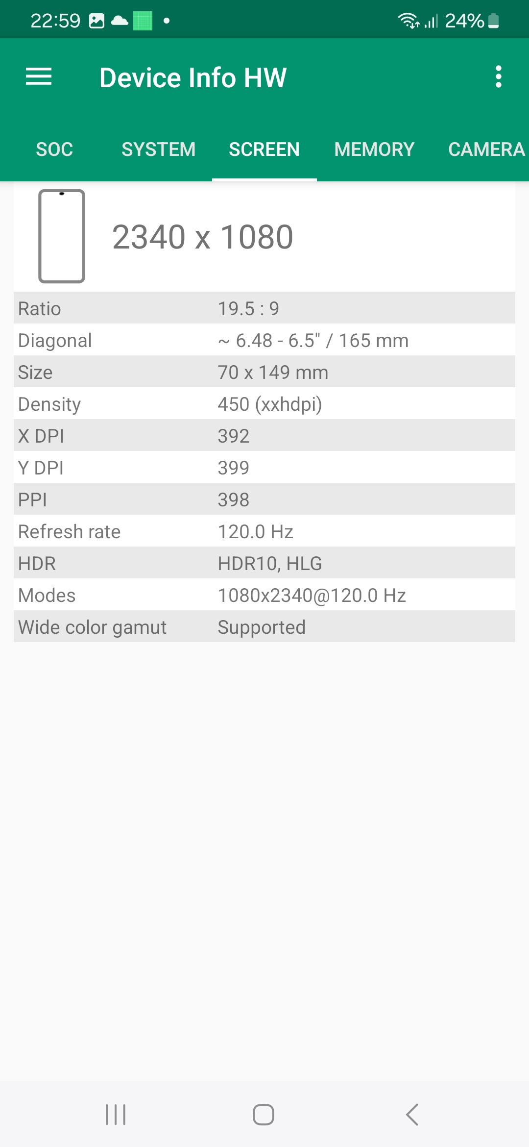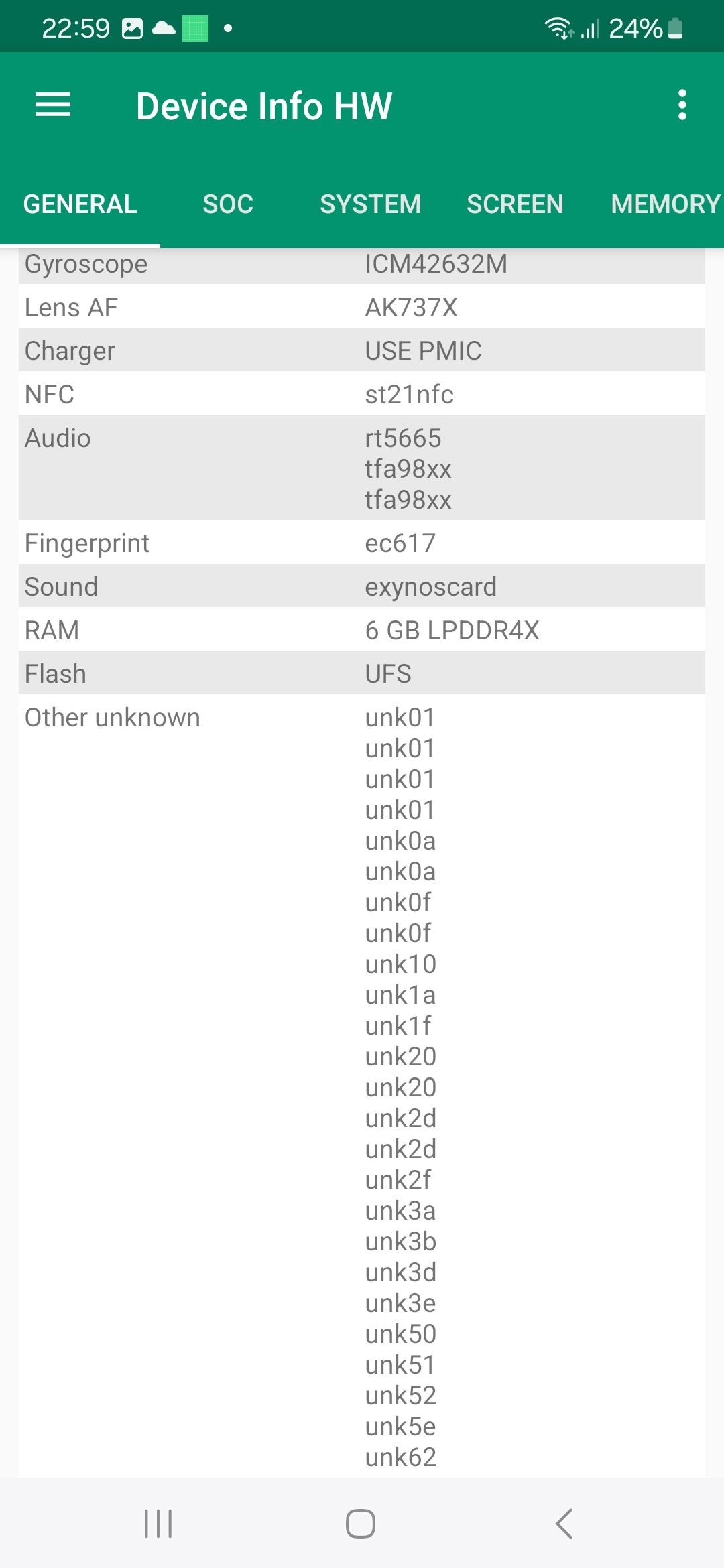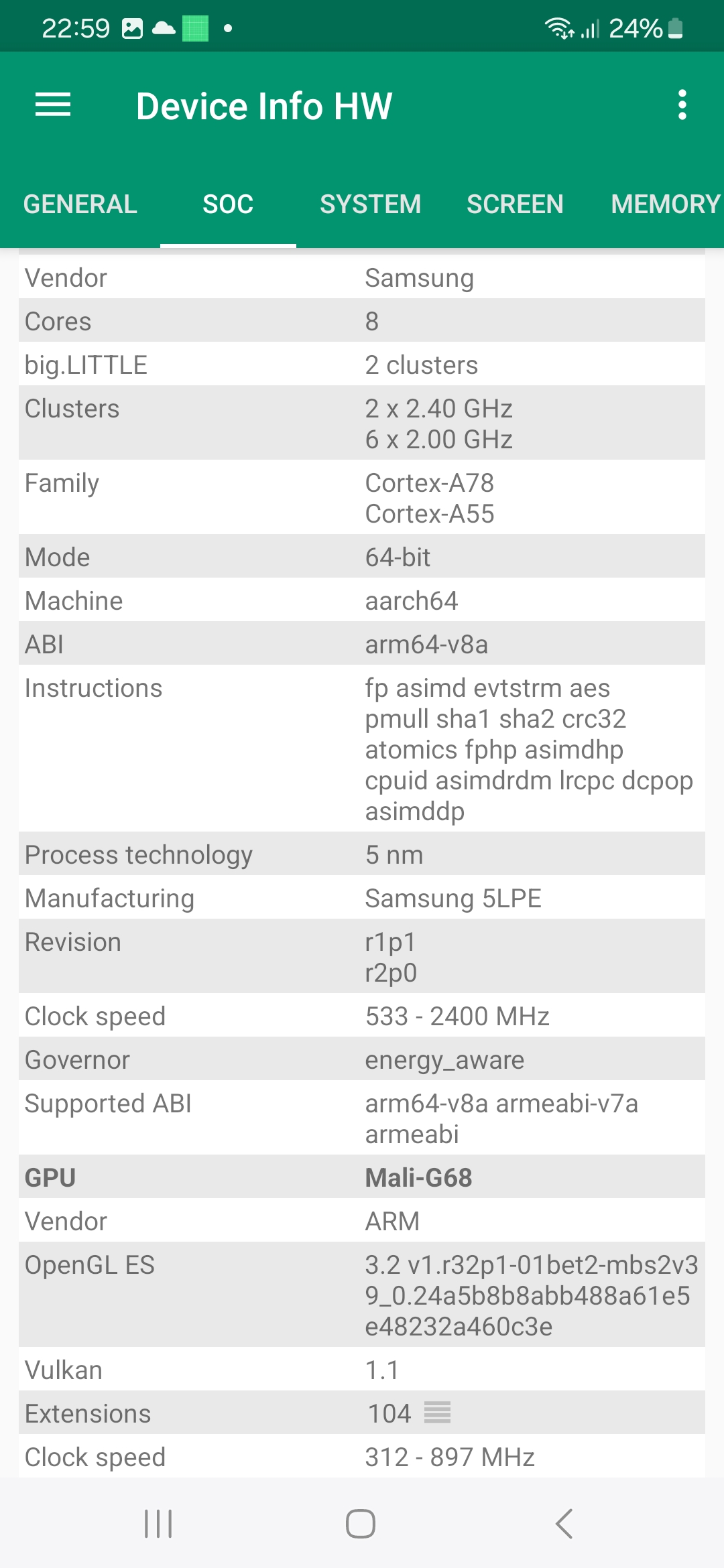 Les informations ci-dessous proviennent de l'application Device Info HW. L'application fournit des informations techniques détaillées sur le téléphone testé.Le Samsung Galaxy A25 tourne sous une architecture Exynos conçu par et pour Samsung, ce type d'équipement n'est donc pas utilisé par d'autres marques. Cela veut dire que le CPU, GPU, FPU, Bluetooth, Wifi, GPS, chipset audio ne pourront être comparés qu'à d'autres téléphones Samsung. Les autres marques ont tendance à utiliser une architecture Qualcomm ou Mediatek ce qui rend la comparaison entre téléphones plus facile. Il faut donc plutôt comparer ce téléphone avec d'autres modèles Samsung comme le Samsung Galaxy A33, Samsung Galaxy A53 ou encore le Samsung Galaxy M34. Ce sont pour la plupart des téléphones lancés il y a deux ans. L'entrée de gamme en 2024 reprend donc du matériel du milieu de gamme de 2022.