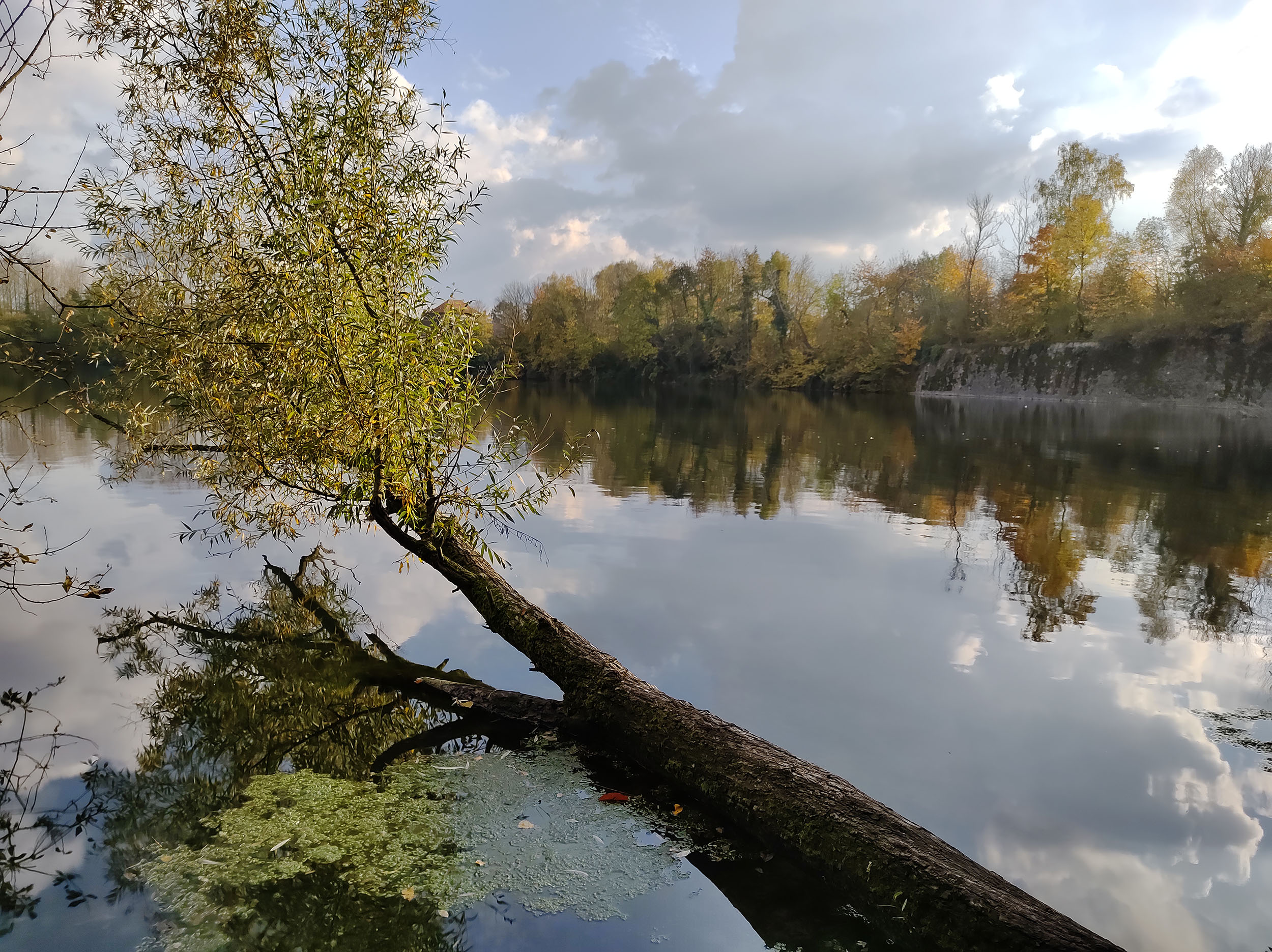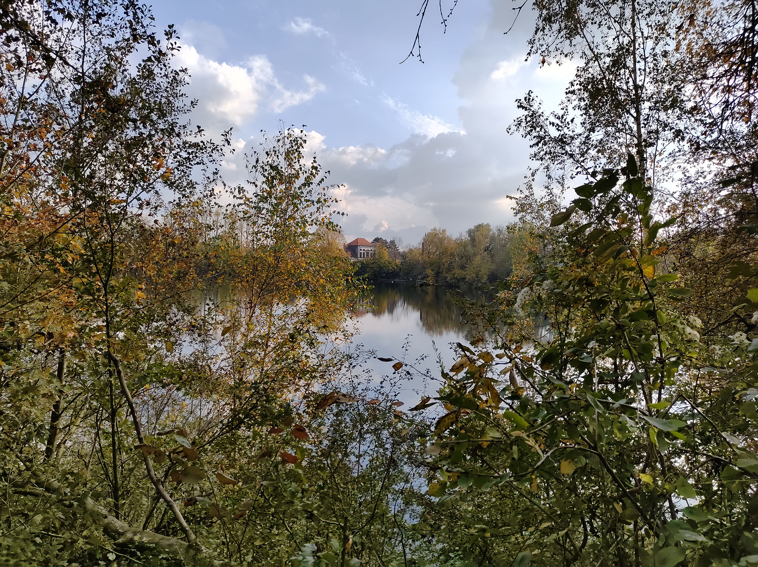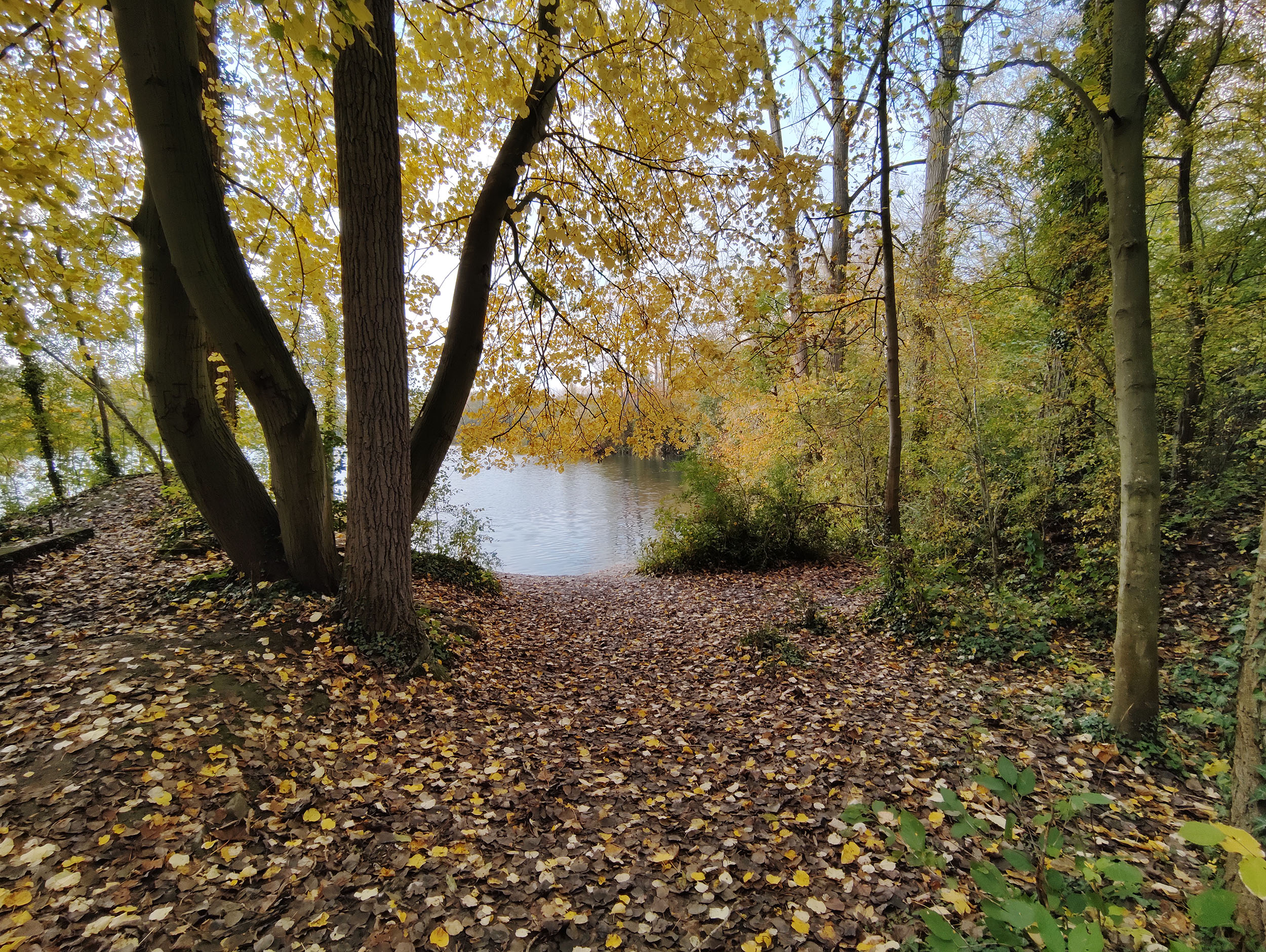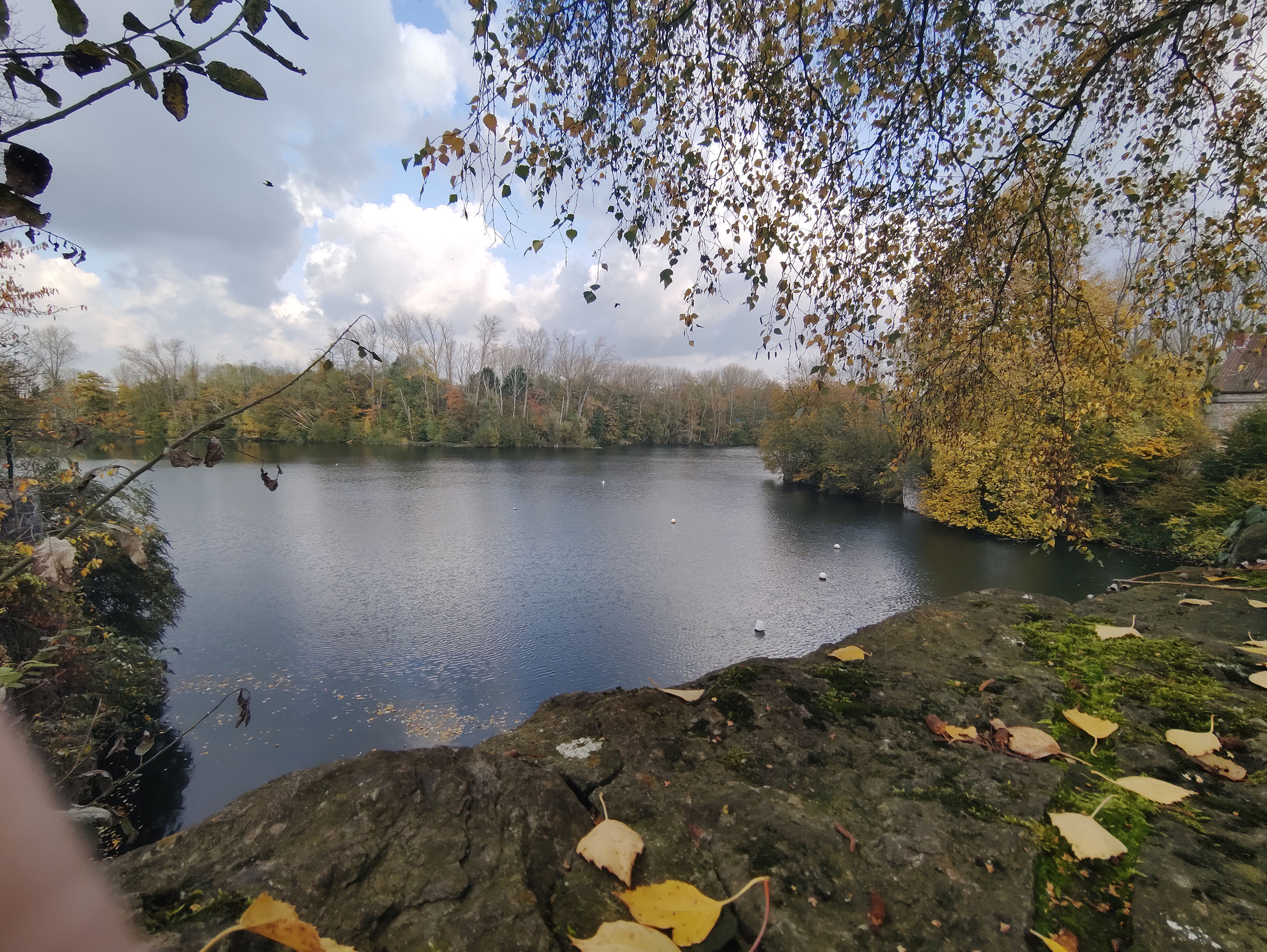 J'ai fait de nombreuses photos avec ce téléphone et c'est généralement bon signe. Sur une promenade de 2h en fin d'après-midi, j'ai pris une centaine de photos. La photo ci-dessus a été prise au soleil couchant en novembre, les feuilles ont une coloration chaude, la lumière est légèrement orangée et le capteur Samsung arrive à bien restituer la scène. J'ai choisis cette photo car elle est composée de zones très sombres et de zones très claires, le capteur Samsung n'est pourtant pas mis en difficulté car les régions sombres sont toujours visibles et on aperçoit la texture des nuages dans le ciel. Ce capteur a donc une bonne plage dynamique. La netteté est assez bonne dans son ensemble, le détail des feuilles est bien visible.
