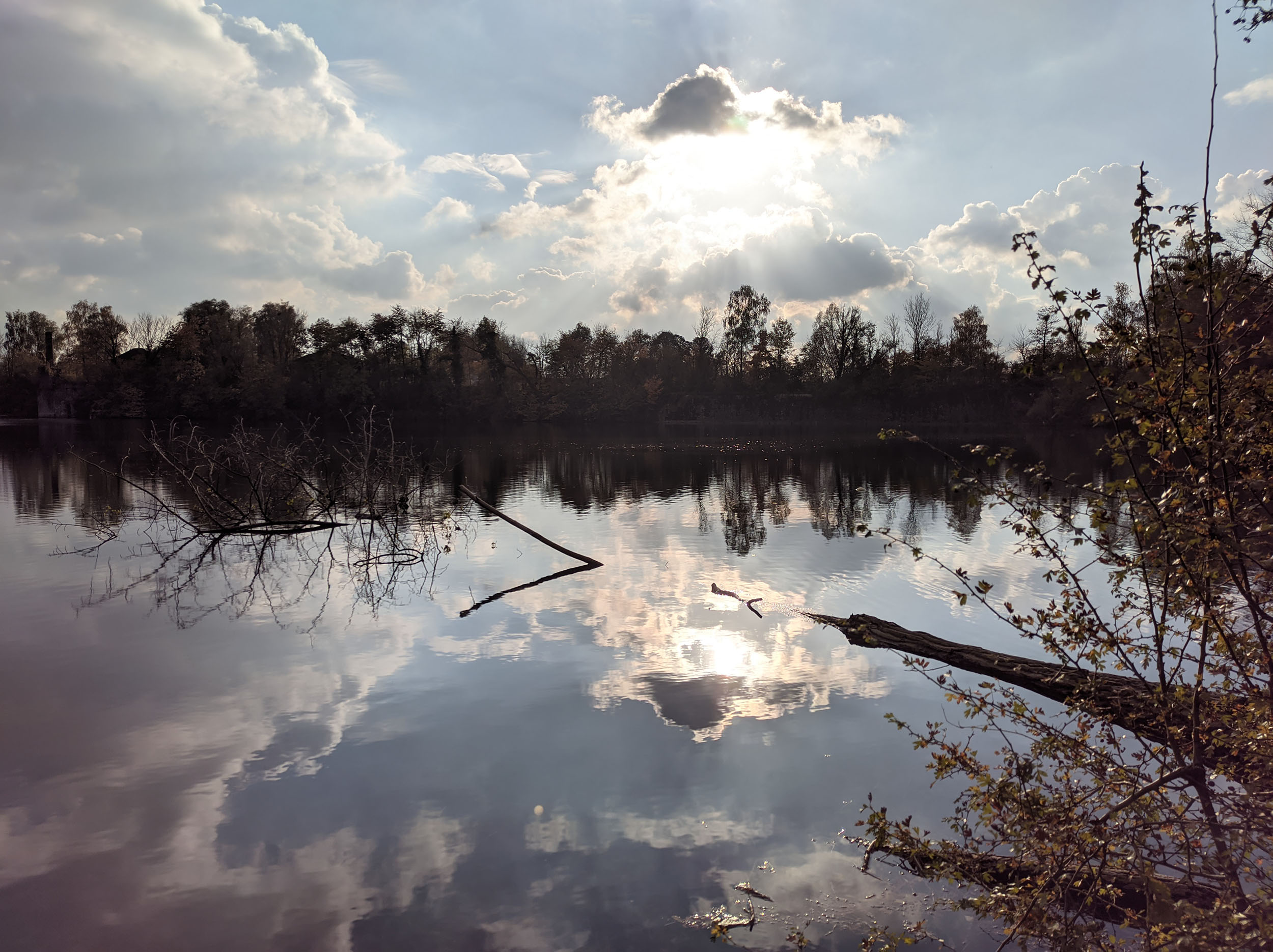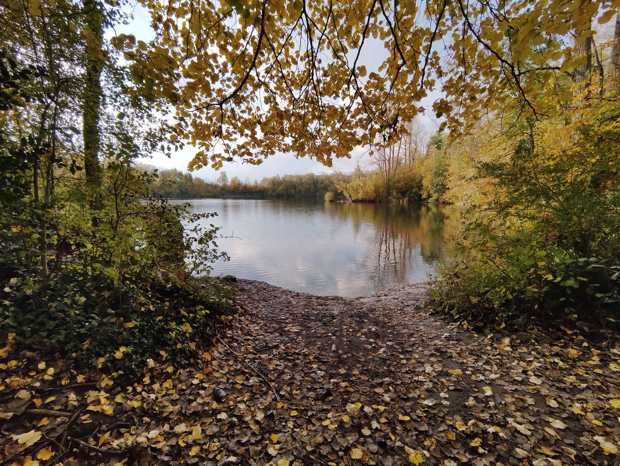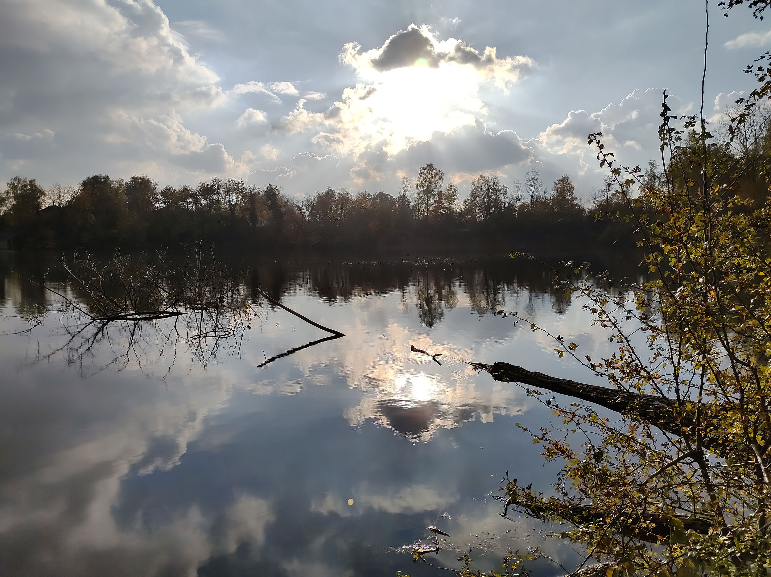 J'ai fait de nombreuses photos avec ce téléphone et c'est généralement bon signe. Sur une promenade de 2h en fin d'après-midi, j'ai pris une centaine de photos. La photo ci-dessus a été prise au soleil couchant en novembre, les feuilles ont une coloration chaude, la lumière est légèrement orangée et le capteur Samsung arrive à bien restituer la scène. J'ai choisis cette photo car elle est composée de zones très sombres et de zones très claires, le capteur Samsung n'est pourtant pas mis en difficulté car les régions sombres sont toujours visibles et on aperçoit la texture des nuages dans le ciel. Ce capteur a donc une bonne plage dynamique. La netteté est assez bonne dans son ensemble, le détail des feuilles est bien visible.