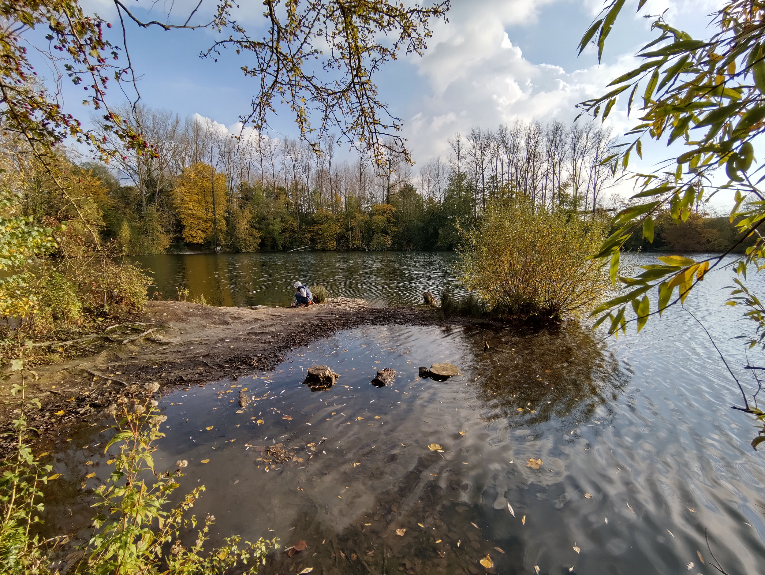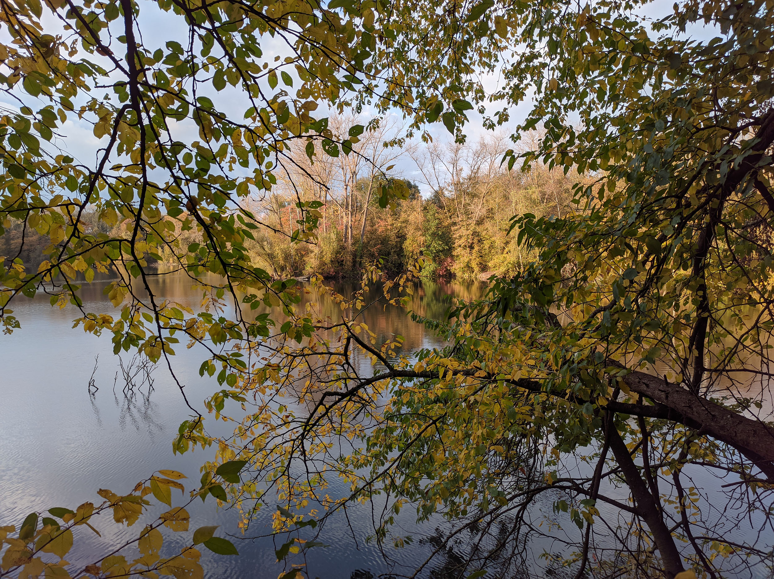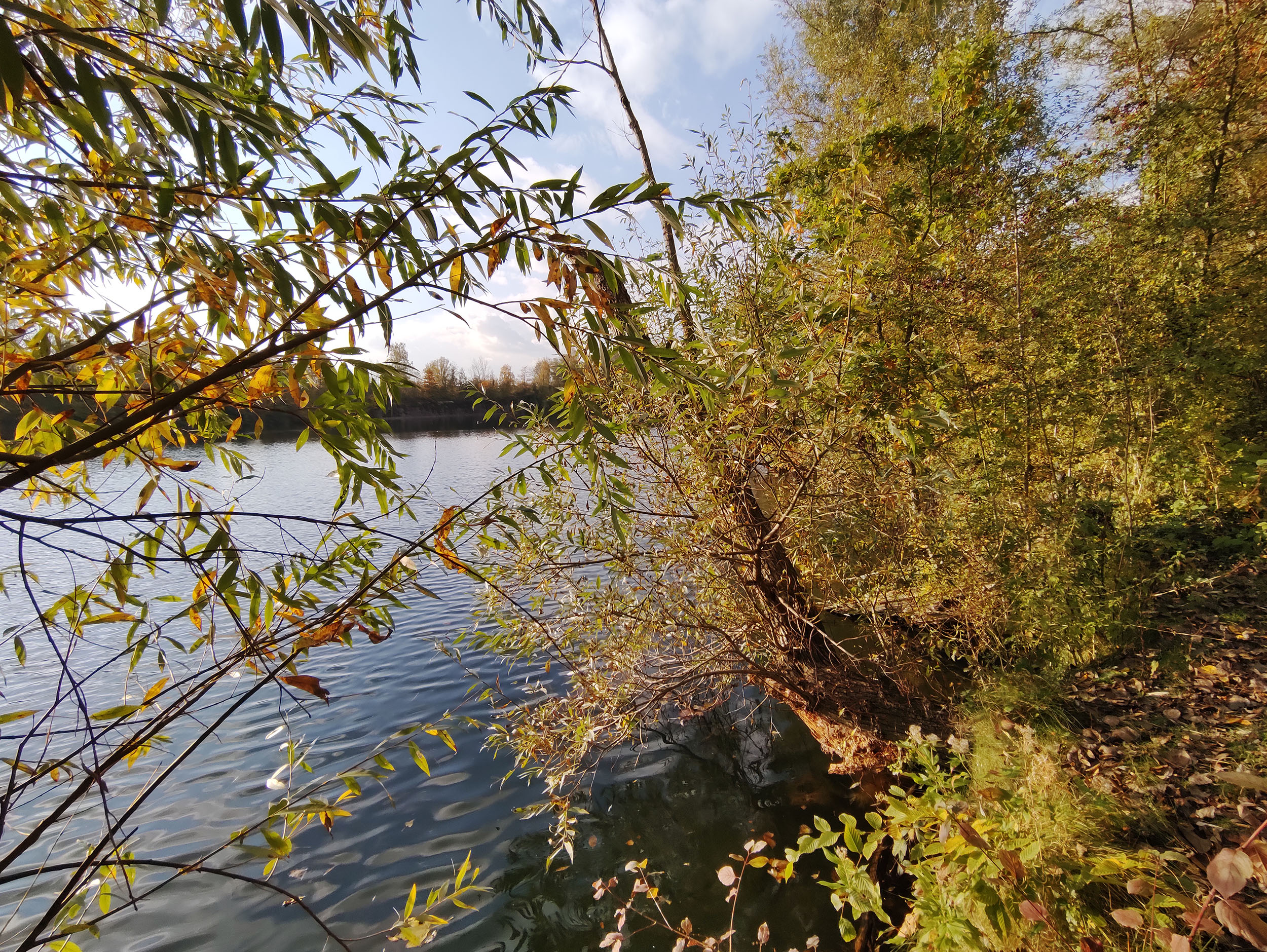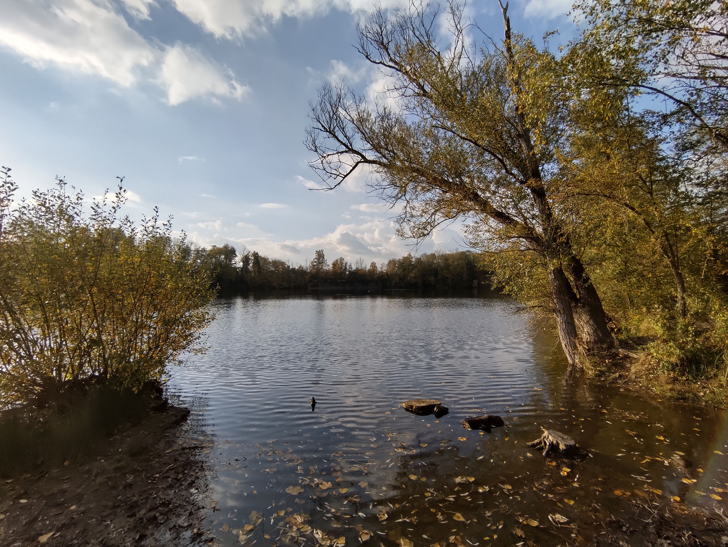 J'ai fait de nombreuses photos avec ce téléphone et c'est généralement bon signe. Sur une promenade de 2h en fin d'après-midi, j'ai pris une centaine de photos. La photo ci-dessus a été prise au soleil couchant en novembre, les feuilles ont une coloration chaude, la lumière est légèrement orangée et le capteur Samsung arrive à bien restituer la scène. J'ai choisis cette photo car elle est composée de zones très sombres et de zones très claires, le capteur Samsung n'est pourtant pas mis en difficulté car les régions sombres sont toujours visibles et on aperçoit la texture des nuages dans le ciel. Ce capteur a donc une bonne plage dynamique. La netteté est assez bonne dans son ensemble, le détail des feuilles est bien visible.