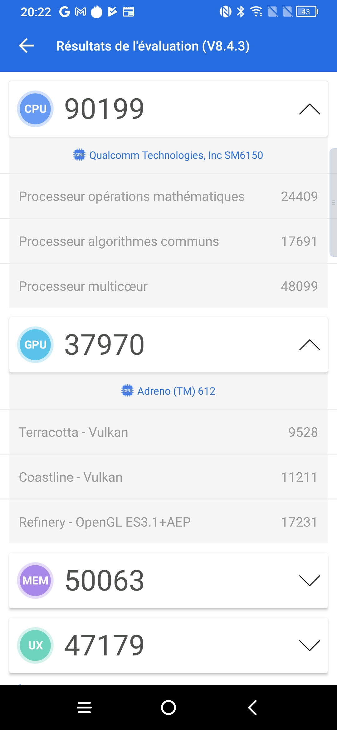 Pour la partie graphique, le TCL 10 Pro s'appuie sur un GPU Qualcomm Adreno 612 qui a aussi fait ses preuves dans d'autres téléphones et ici aussi c'est le même GPU que le Redmi Note 10 ou le Samsung Galaxy A70. Comme pour le CPU, le GPU de ce TCL n'est pas orienté performance mais à moins d'être un gamer, vous ne devriez pas rencontrer de problèmes.