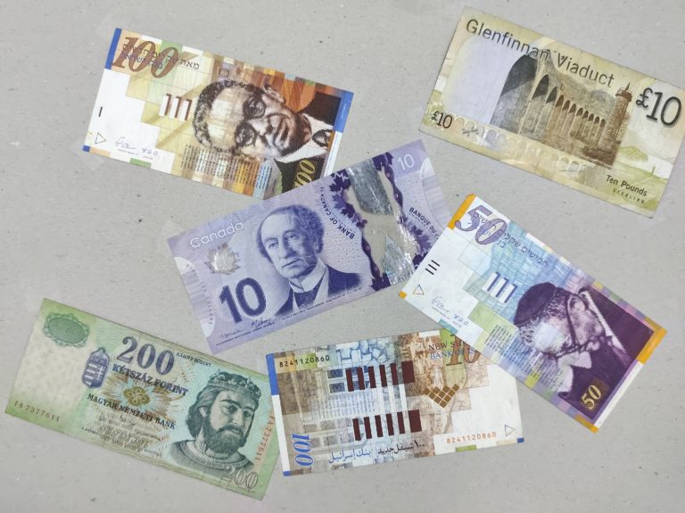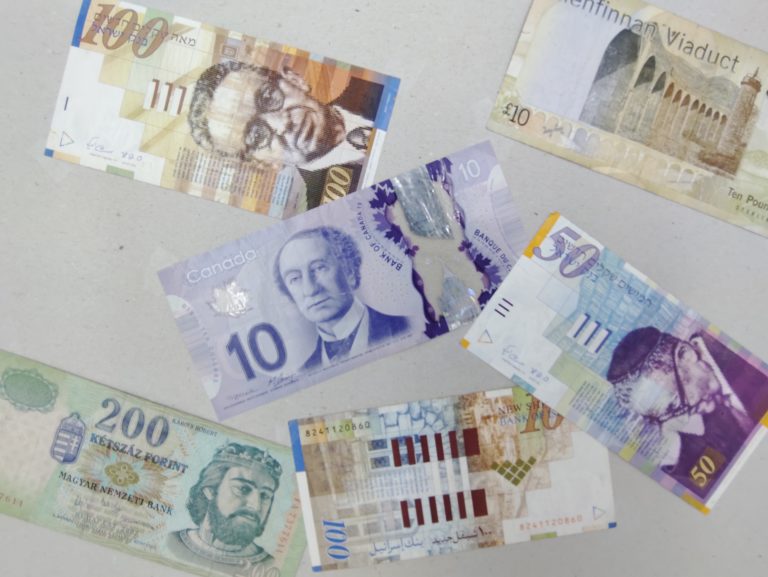 Cette photo montre à quel point la netteté est bonne, le billet au canadien au centre est parfaitement restitué, la texture est bien lisible. En périphérie la netteté diminue mais les textes et textures restent malgré tout très lisibles.
